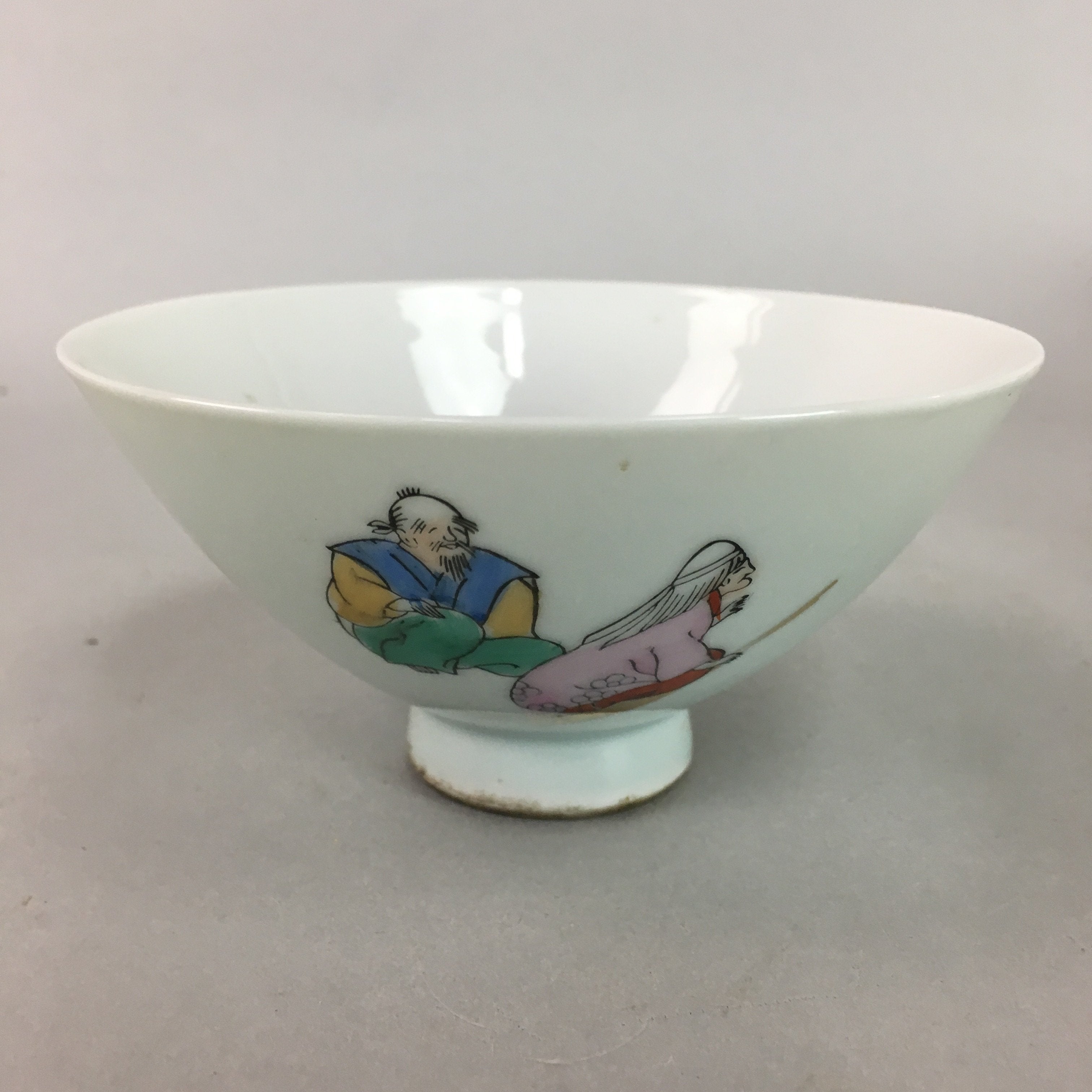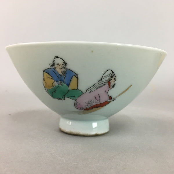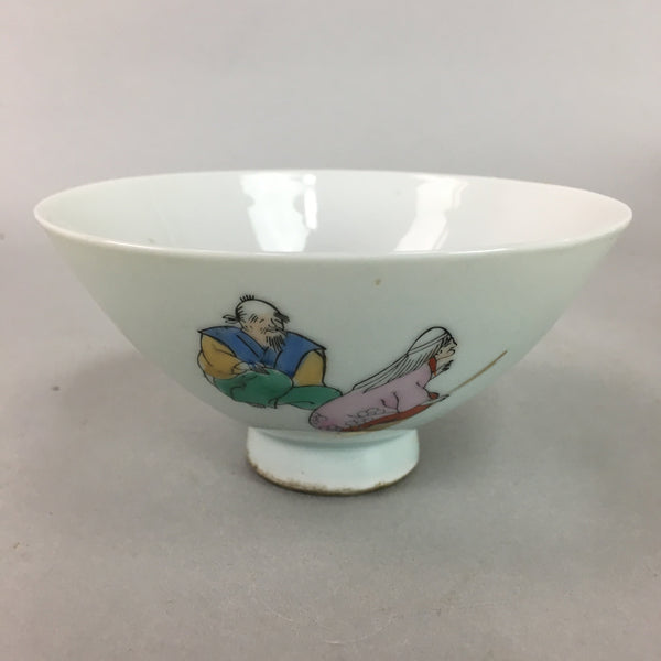 Japanese Porcelain Rice Bowl Vtg Chawan Kanji Takasago Congratulation PT797