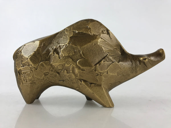 Japanese Iron Engraving Statue Zodiac Boar Vtg Sotaro Saegusa Metal Gold BD890