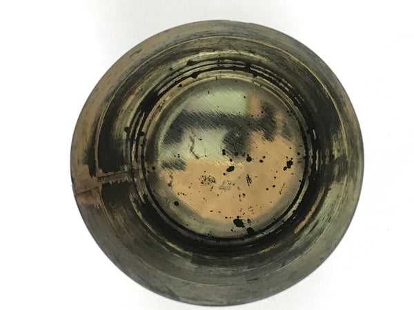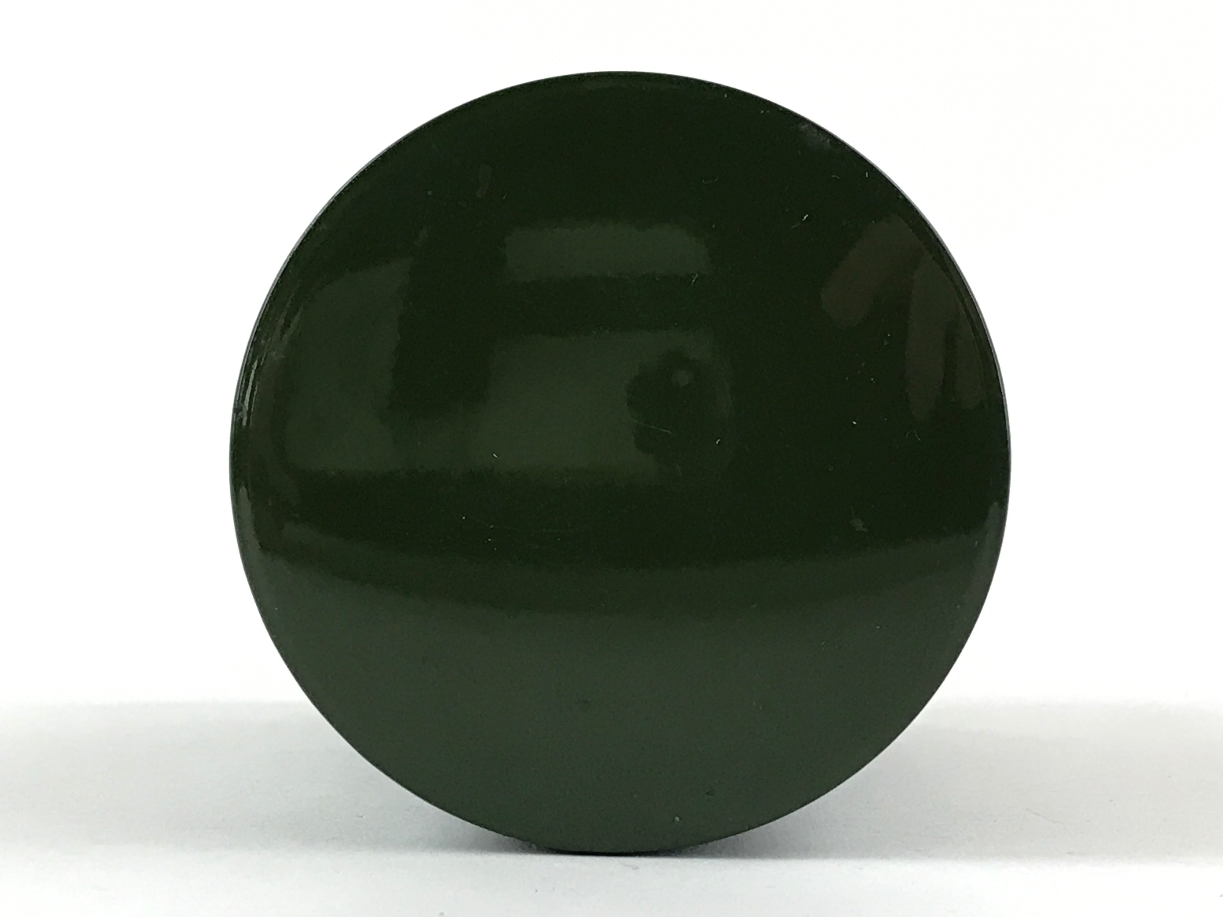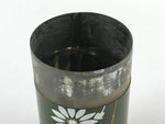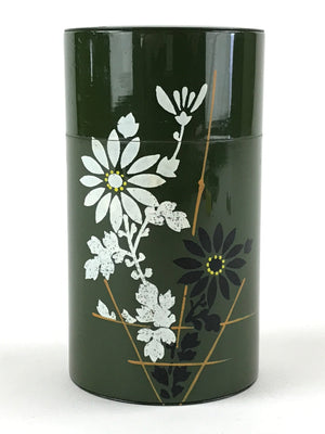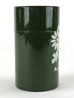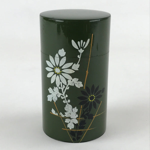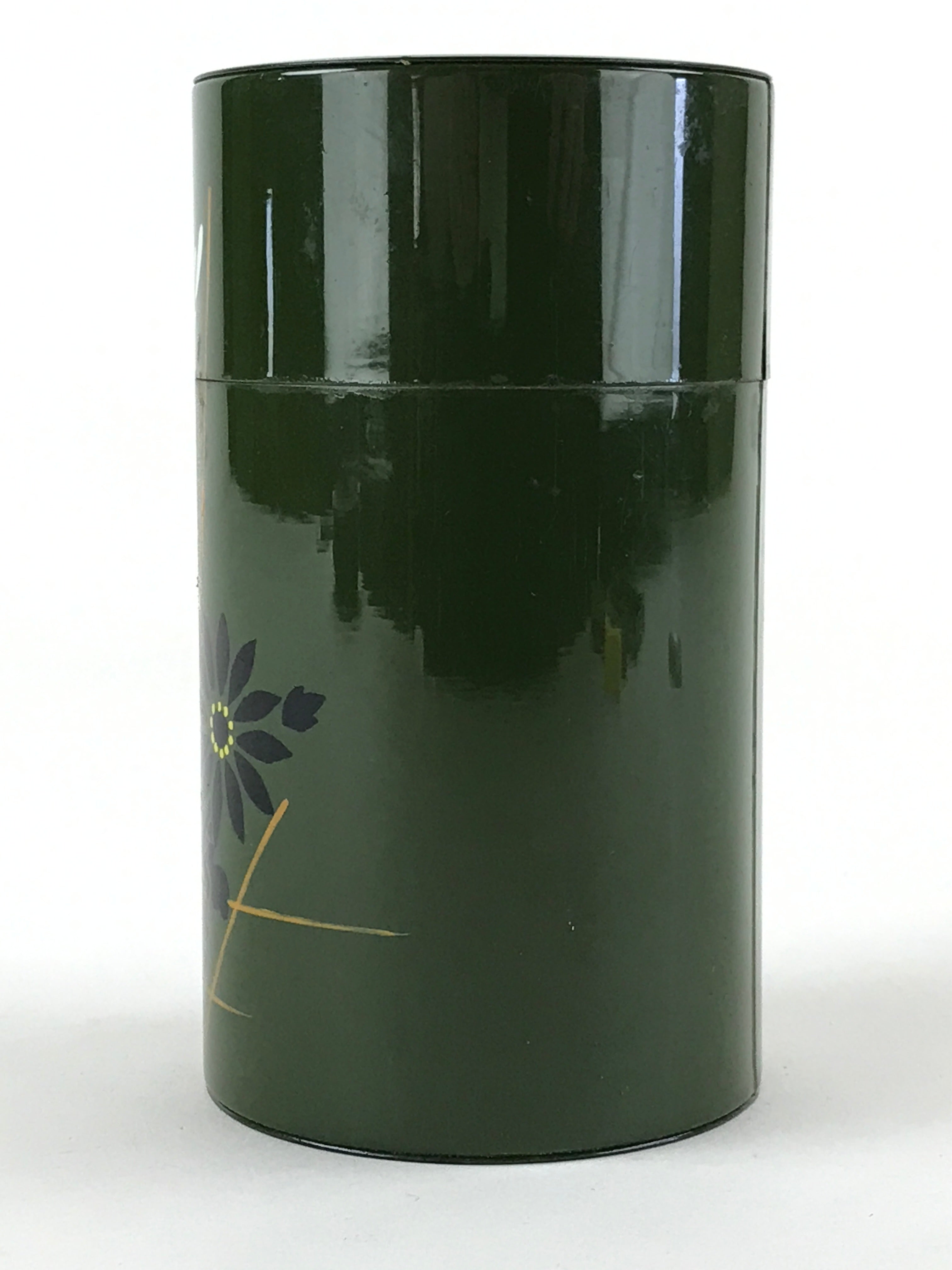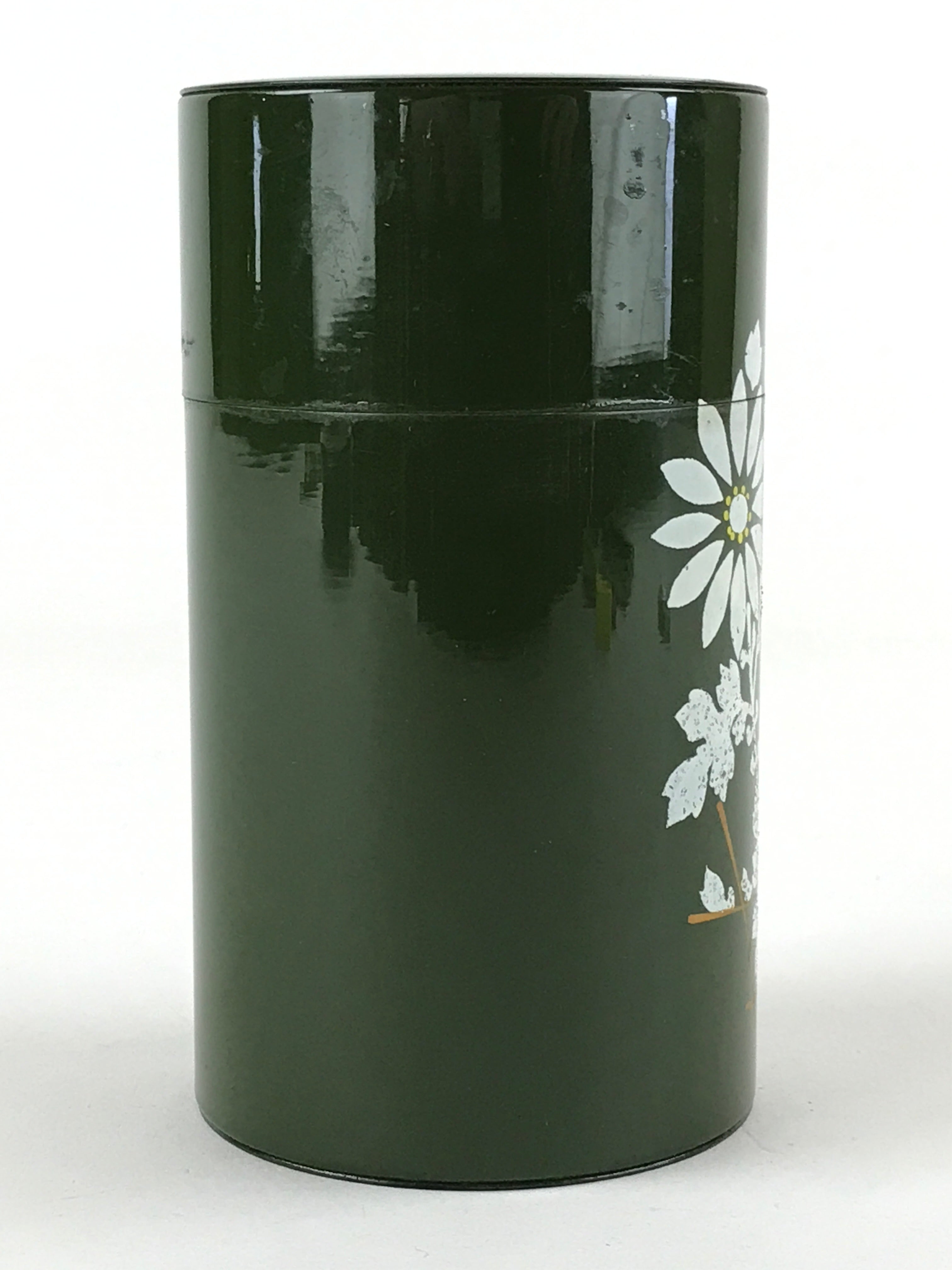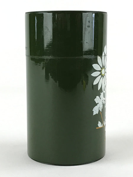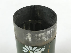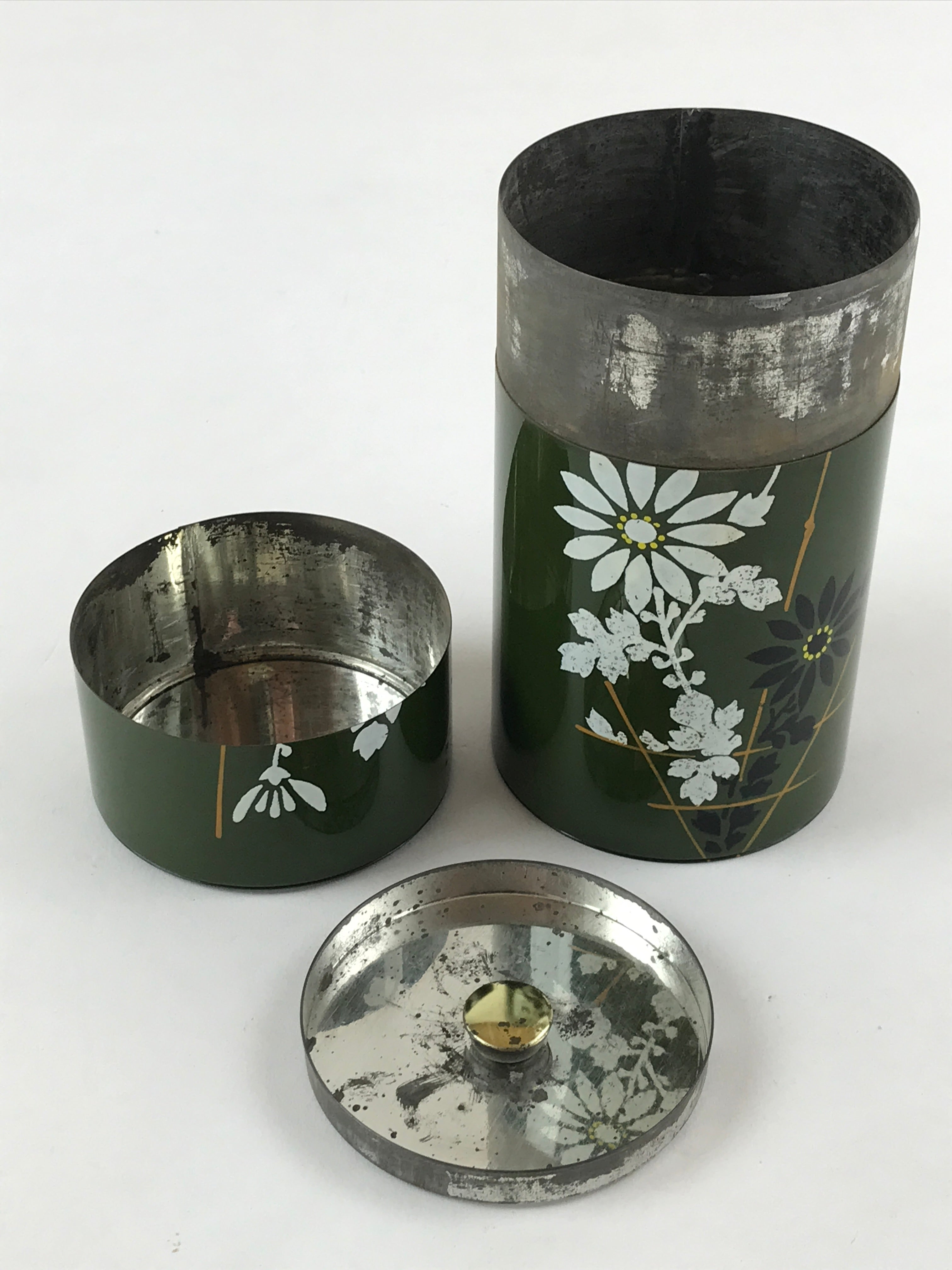 This is a vintage Japanese iron tea caddy. It has an outer lid and an inner lid. A tea caddy is a tool for storing tea leaves. Tea leaves deteriorate when exposed to air and lose their aroma and taste, so a tightly sealed container is best. It's green and has black and white flowers drawn on it.