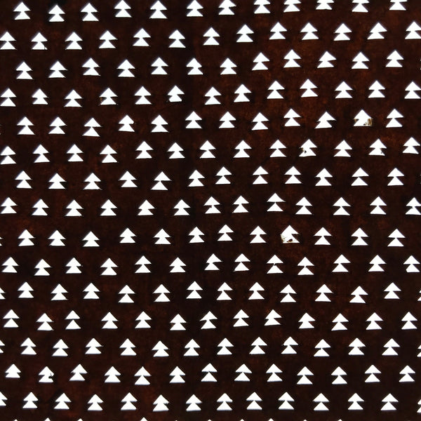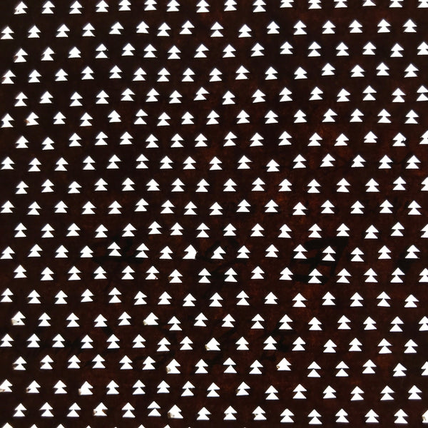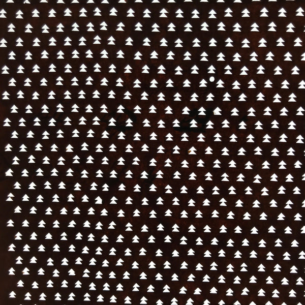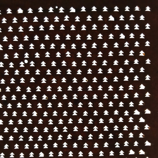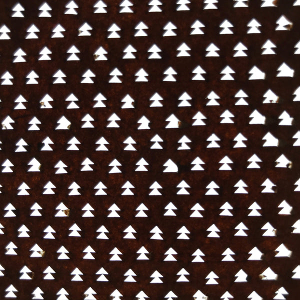 Using traditional mulberry washi paper, this Ise katagami stencil features a continuous pattern of vertical arrows that also resemble small evergreen trees.