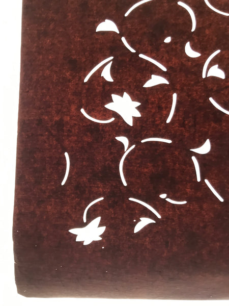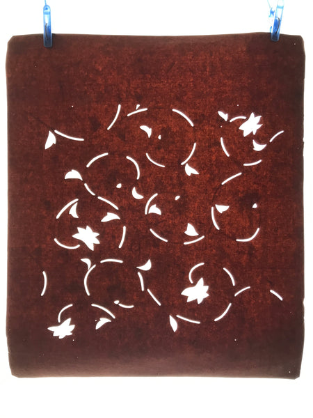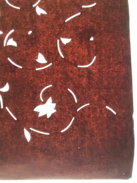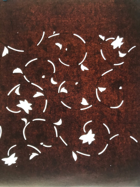 Using traditional mulberry paper, this katagami stencil with no silk mesh backing features a winding karakusa vine design with simple blooming flowers.