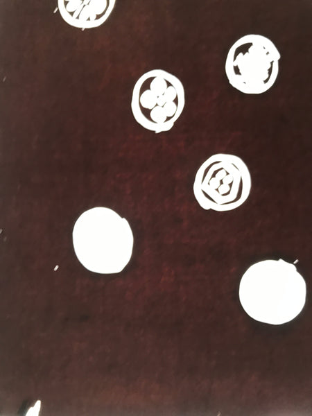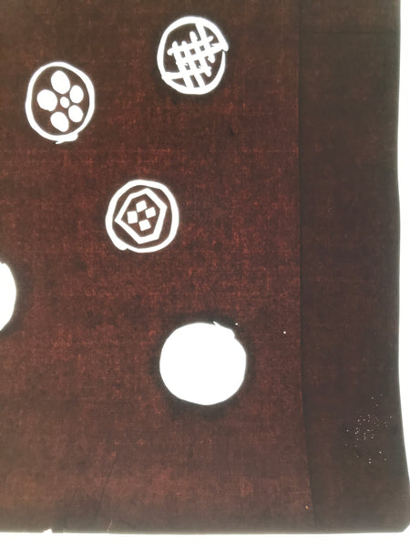 Antique Japanese Katagami Kimono Paper Stencil Katazome Round Food Design 4Y650