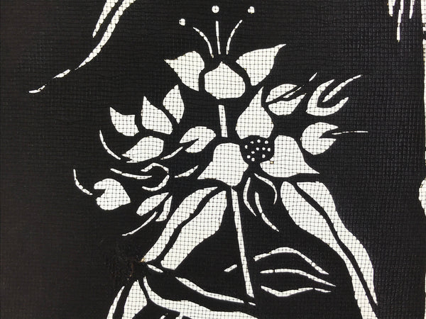 Antique Japanese Katagami Paper Kimono Stencil Katazome Flower Design A647