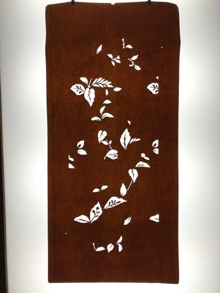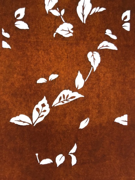 Using traditional mulberry paper, this katagami stencil with silk mesh backing features a simple, scattered design of plants (mostly leaves).