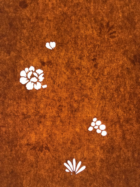 Using traditional mulberry paper, this katagami stencil with silk mesh backing features a simple, scattered design of plants (mostly leaves) and large chrysanthemum  and peony flowers.