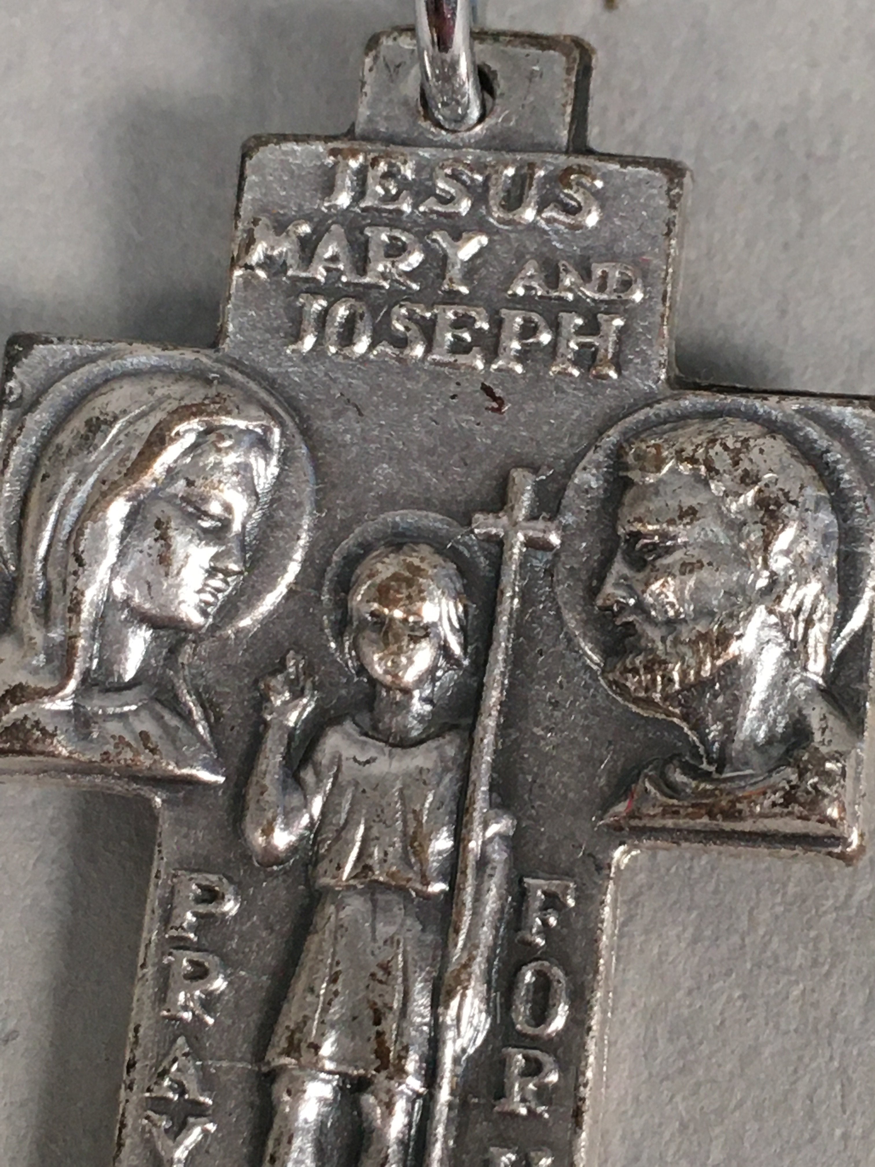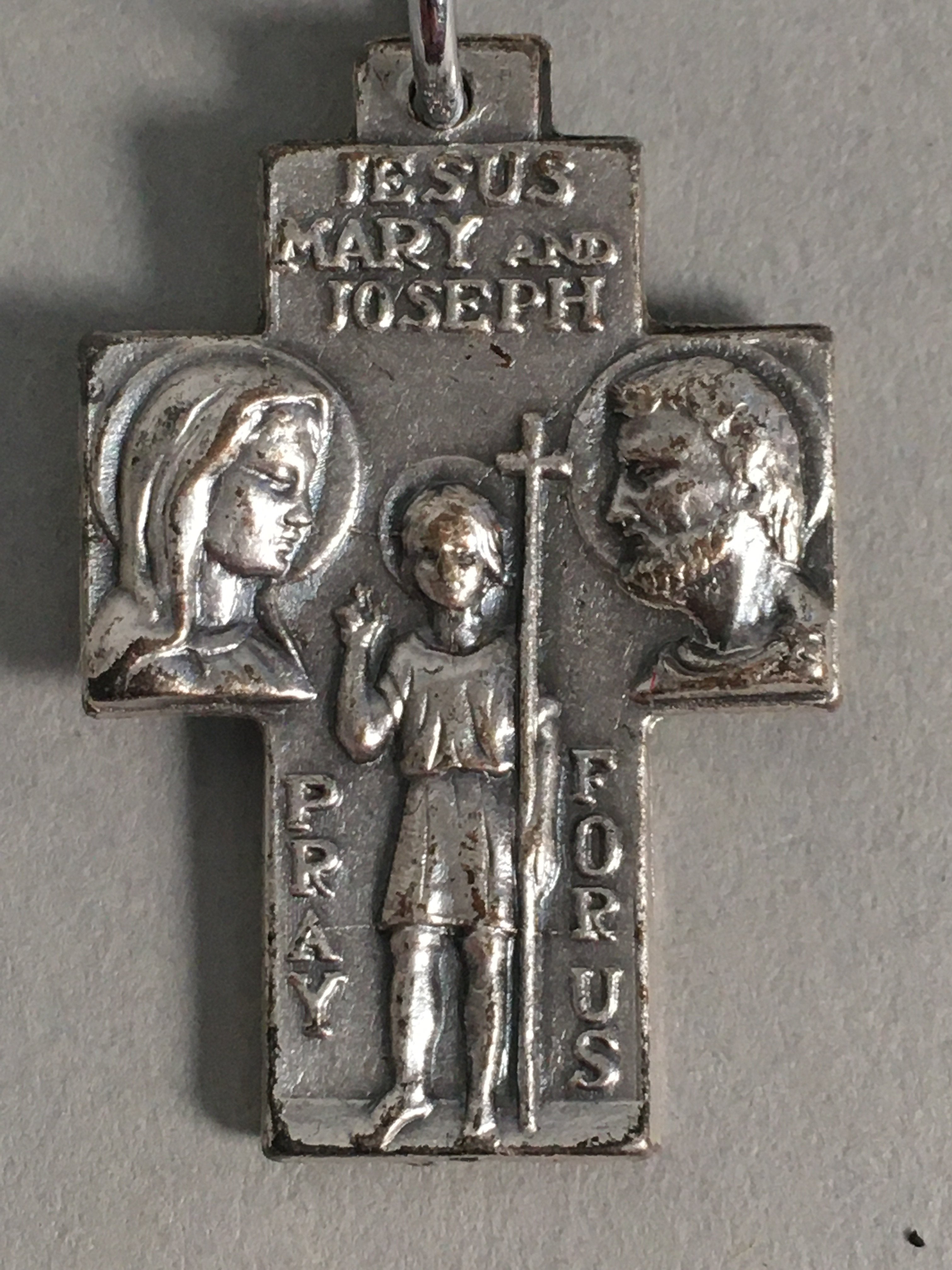 • the other side: standing little Jesus, profile of Mary and Joseph, Jesus Mary and Joseph pray for us