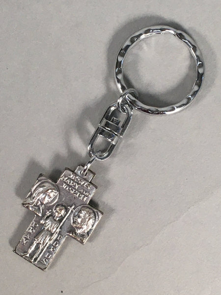Metal Key Chain Vtg Cross Christian Christianity Jesus Mary Joseph JK86