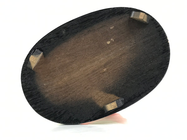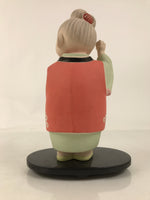 Vtg Japanese Clay Figurine W/ Wooden Stand