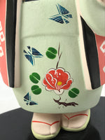 Japanese Kimono Girl Clay Doll Vtg Ningyo Figurine Green Blue Floral ST40