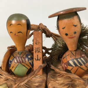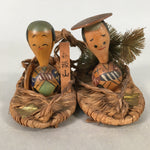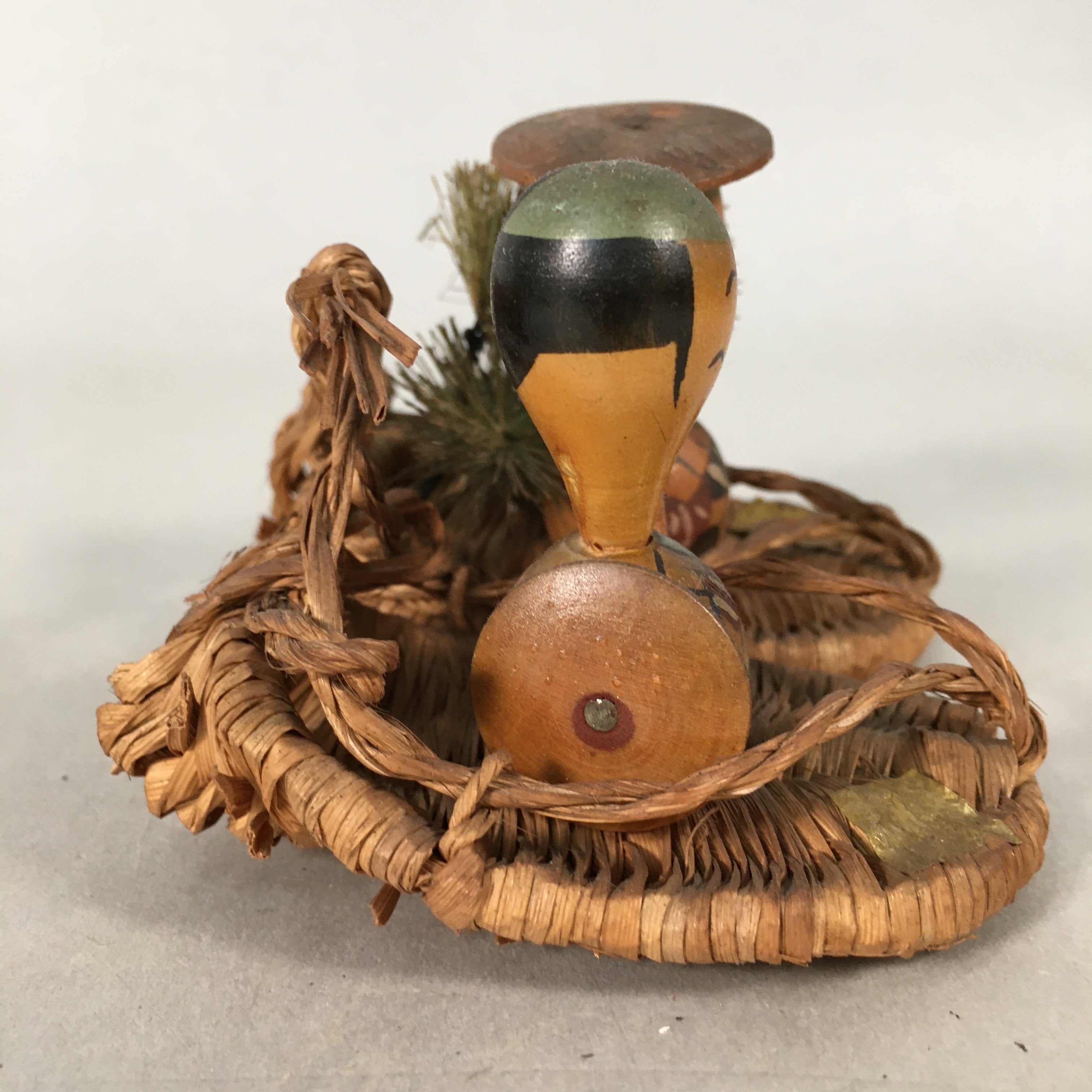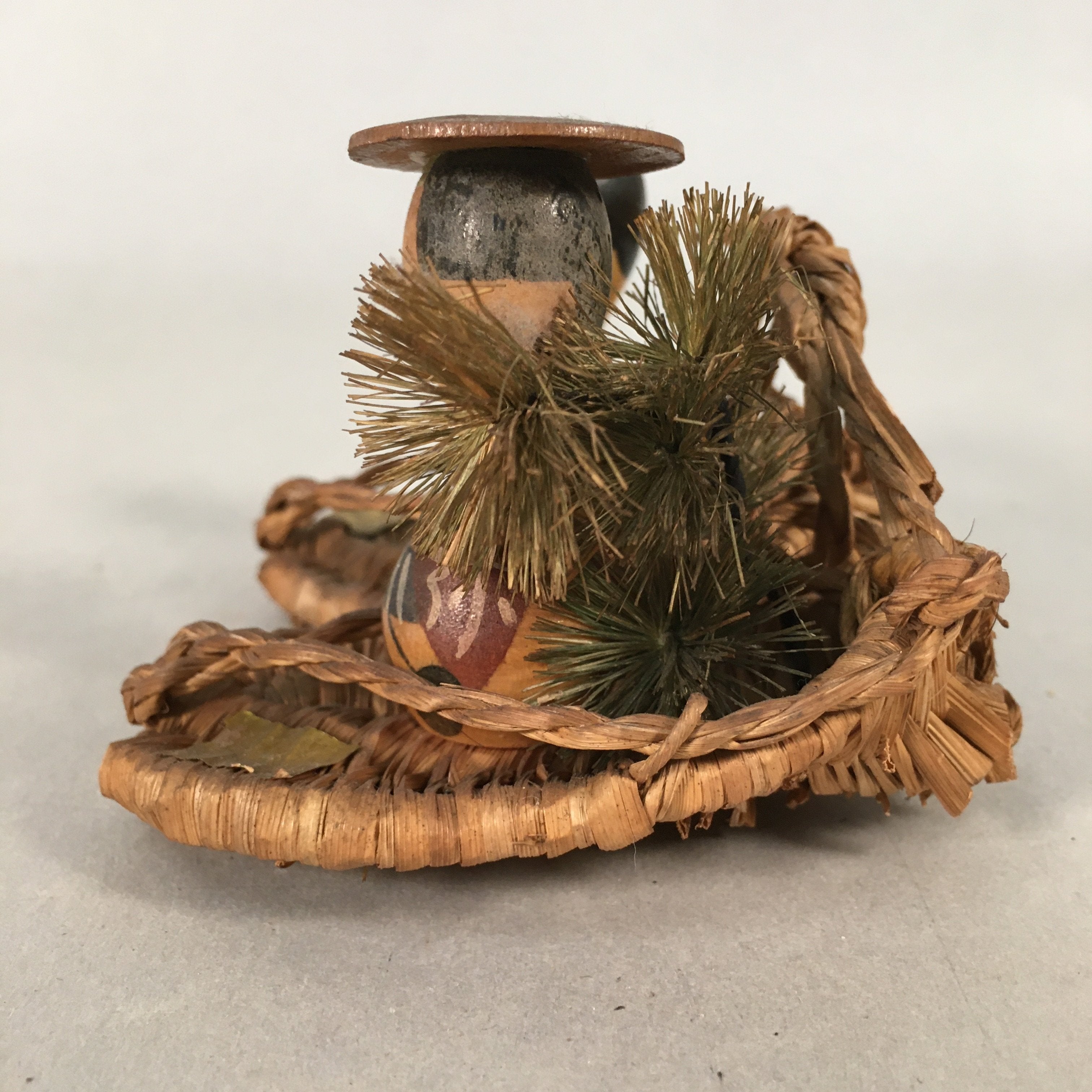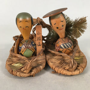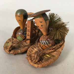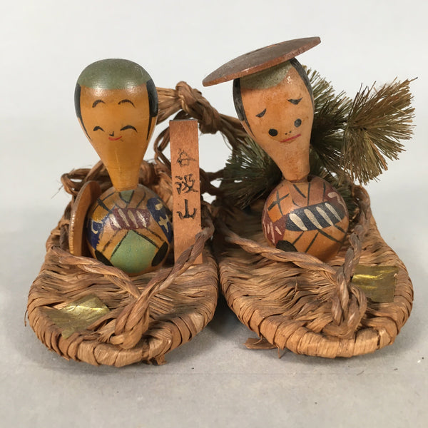 Japanese Kokeshi Doll Ornament Vtg Wood Straw Sandals Waraji Ningyo KF520