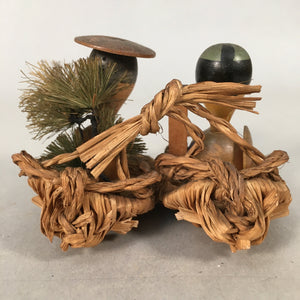 • 2 samurai Kokeshi dolls on the straw sandals and a pine tree on the side.