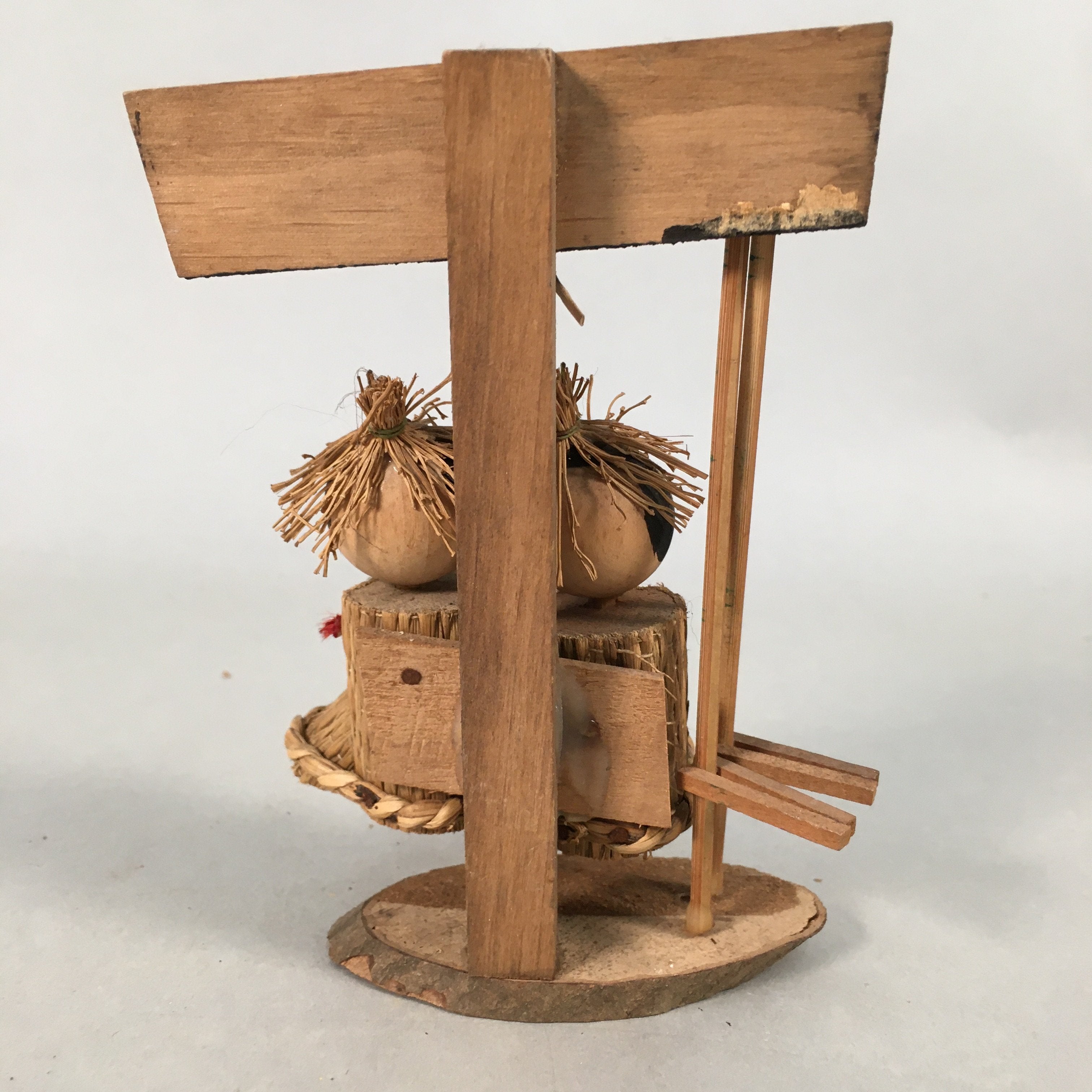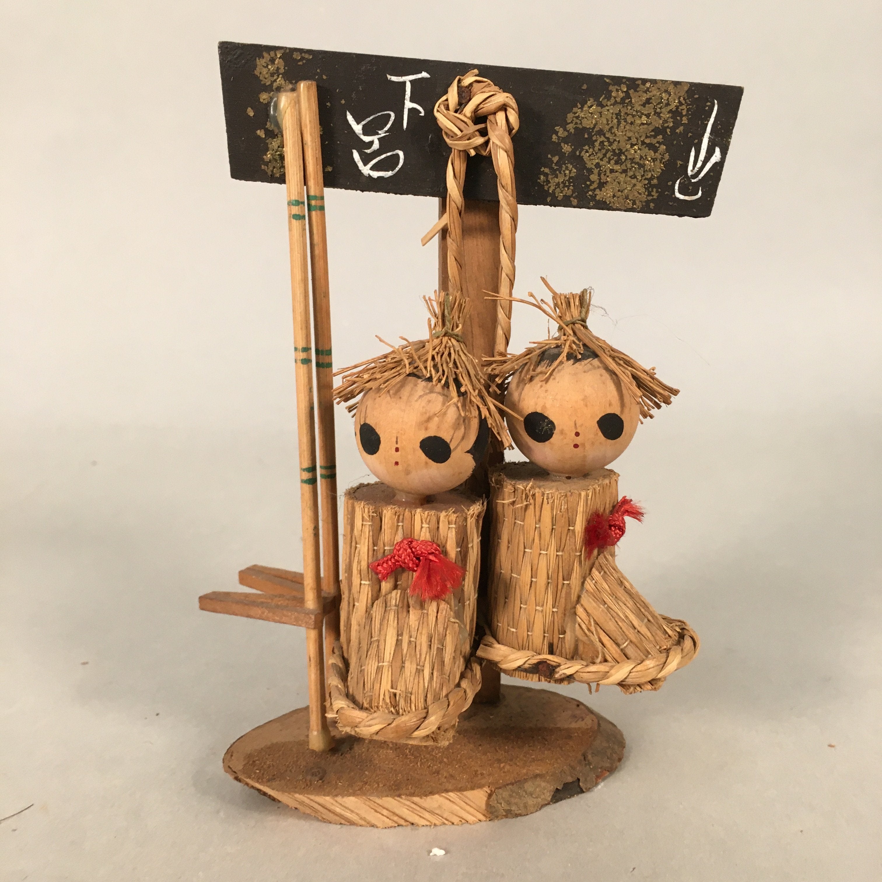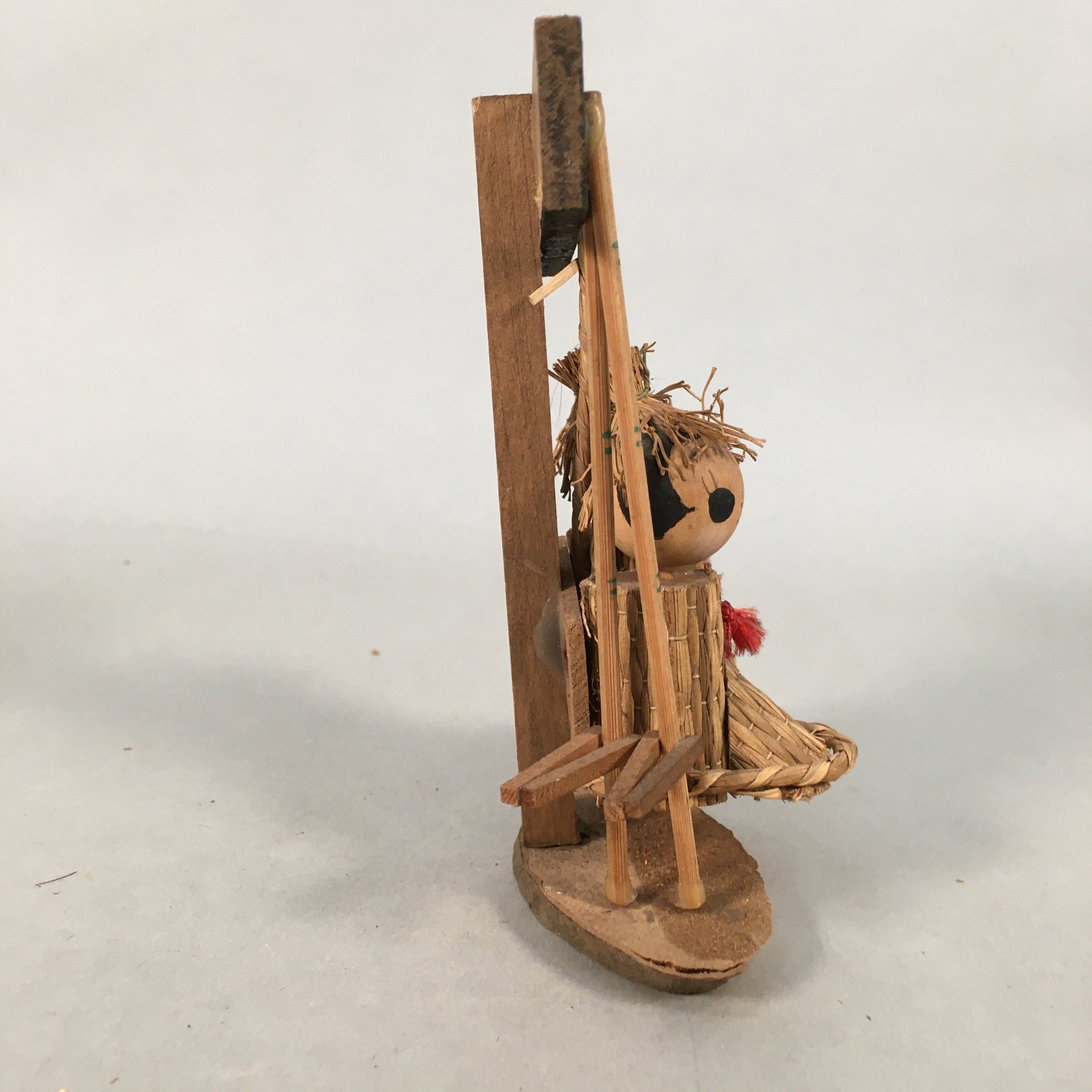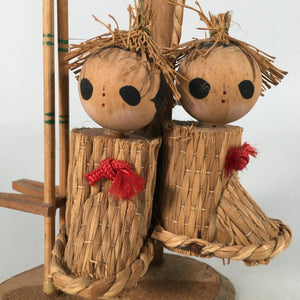 Japanese Kokeshi Doll Vtg Handmade Straw Boots Kids Ningyo KF509