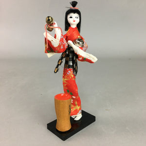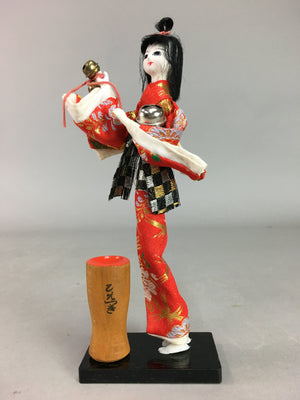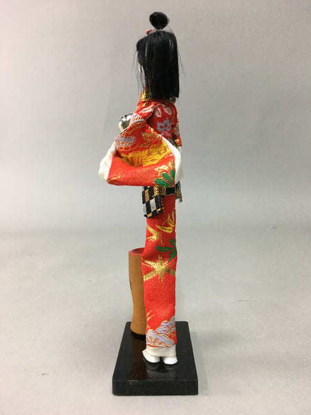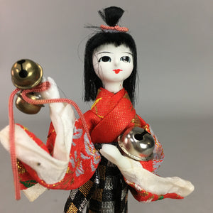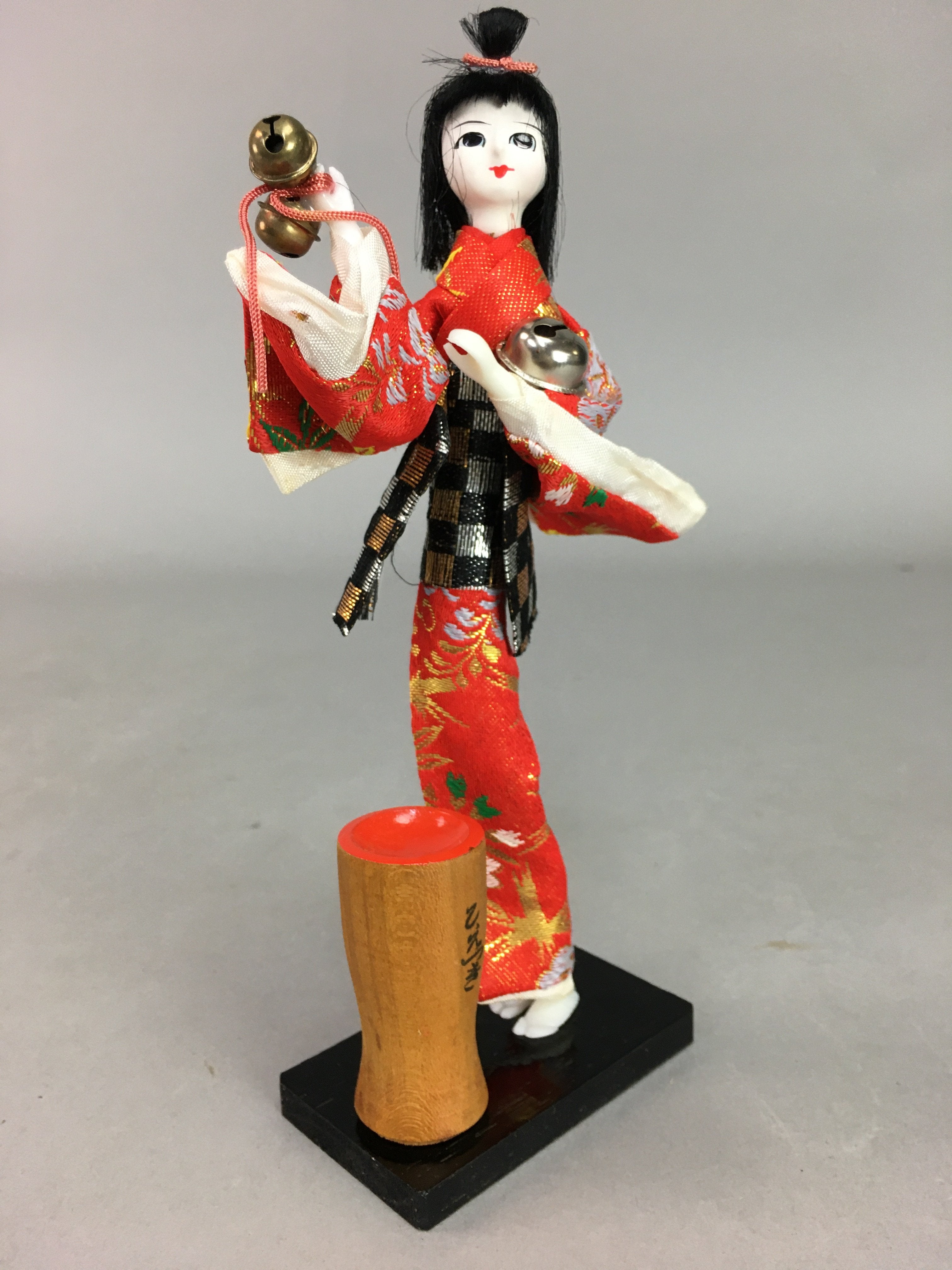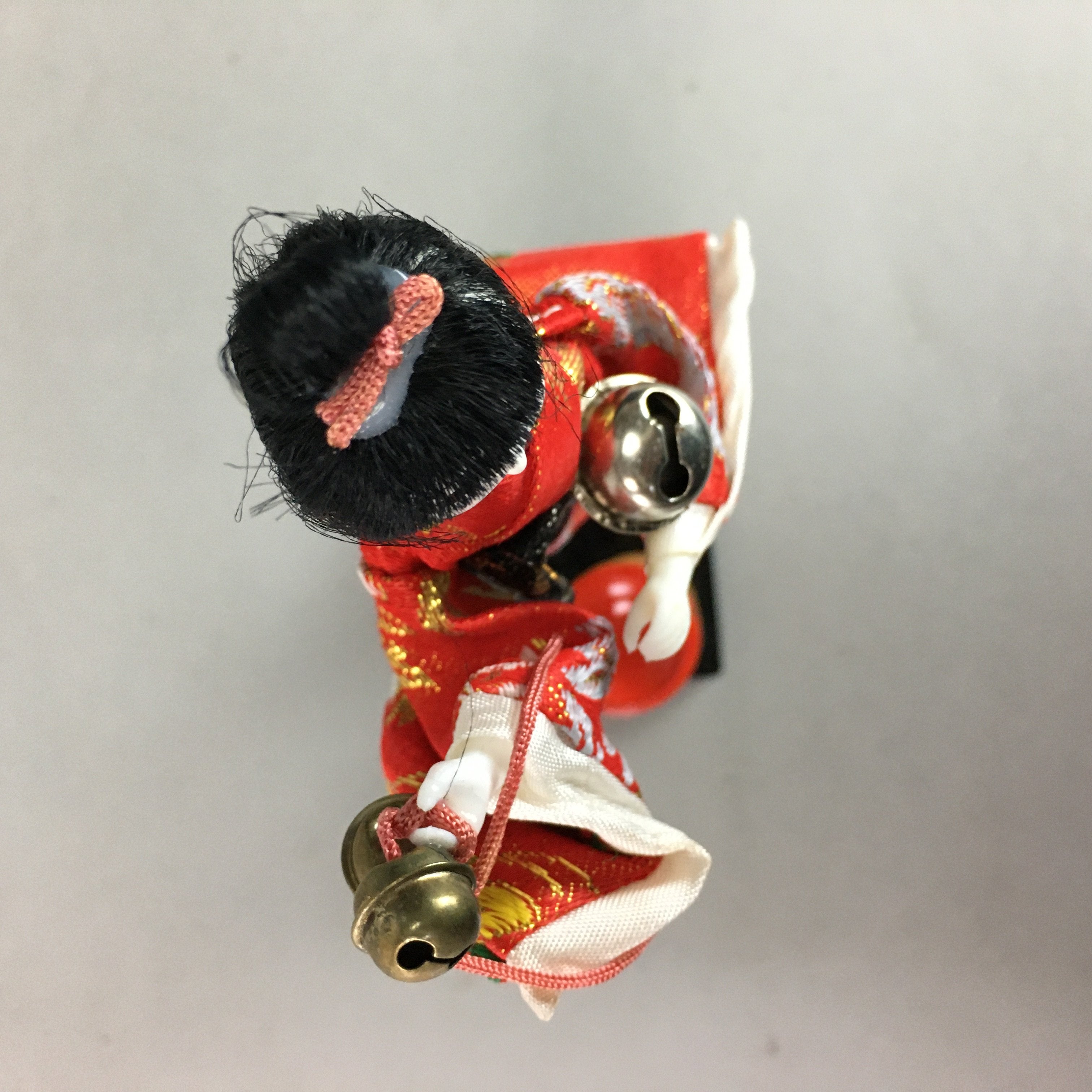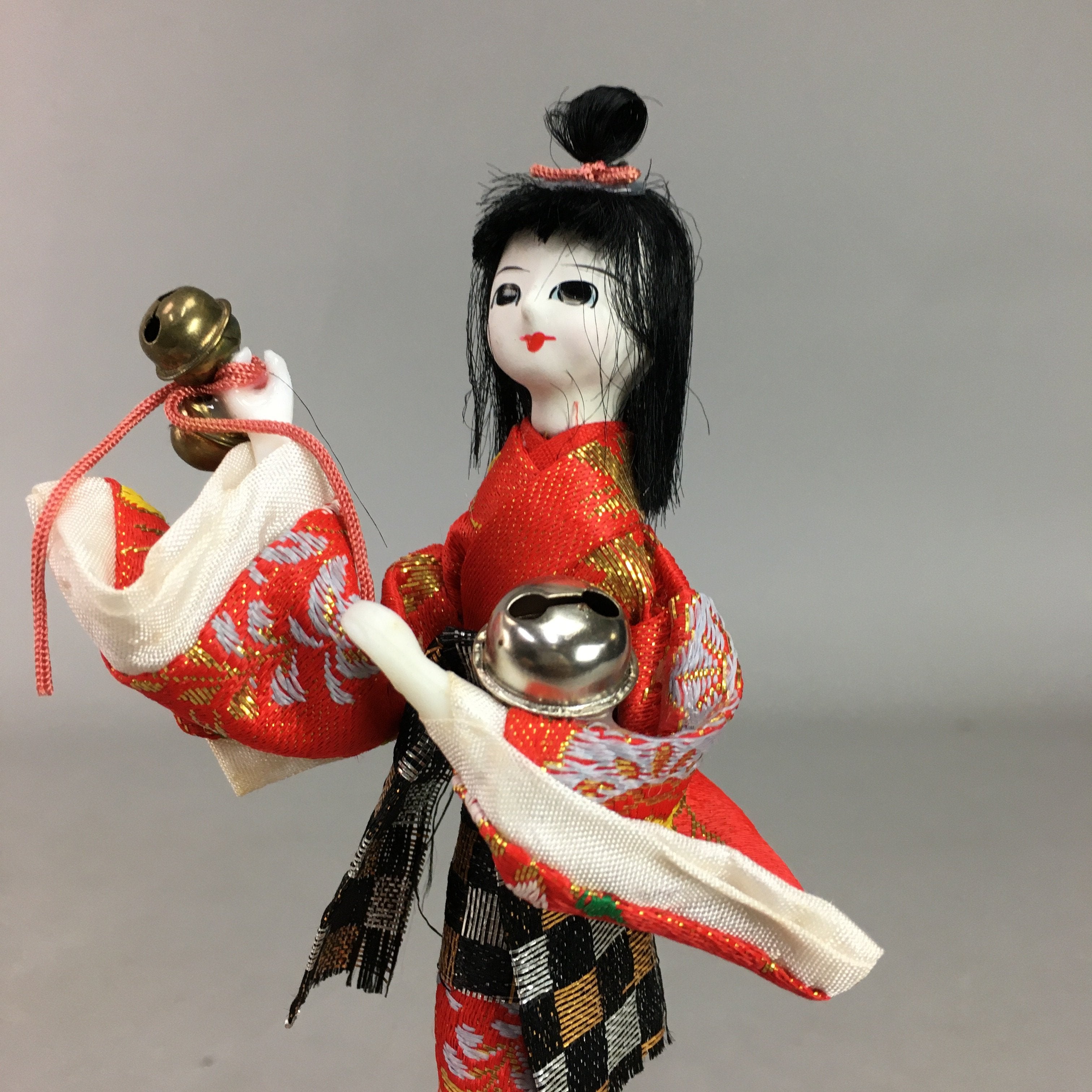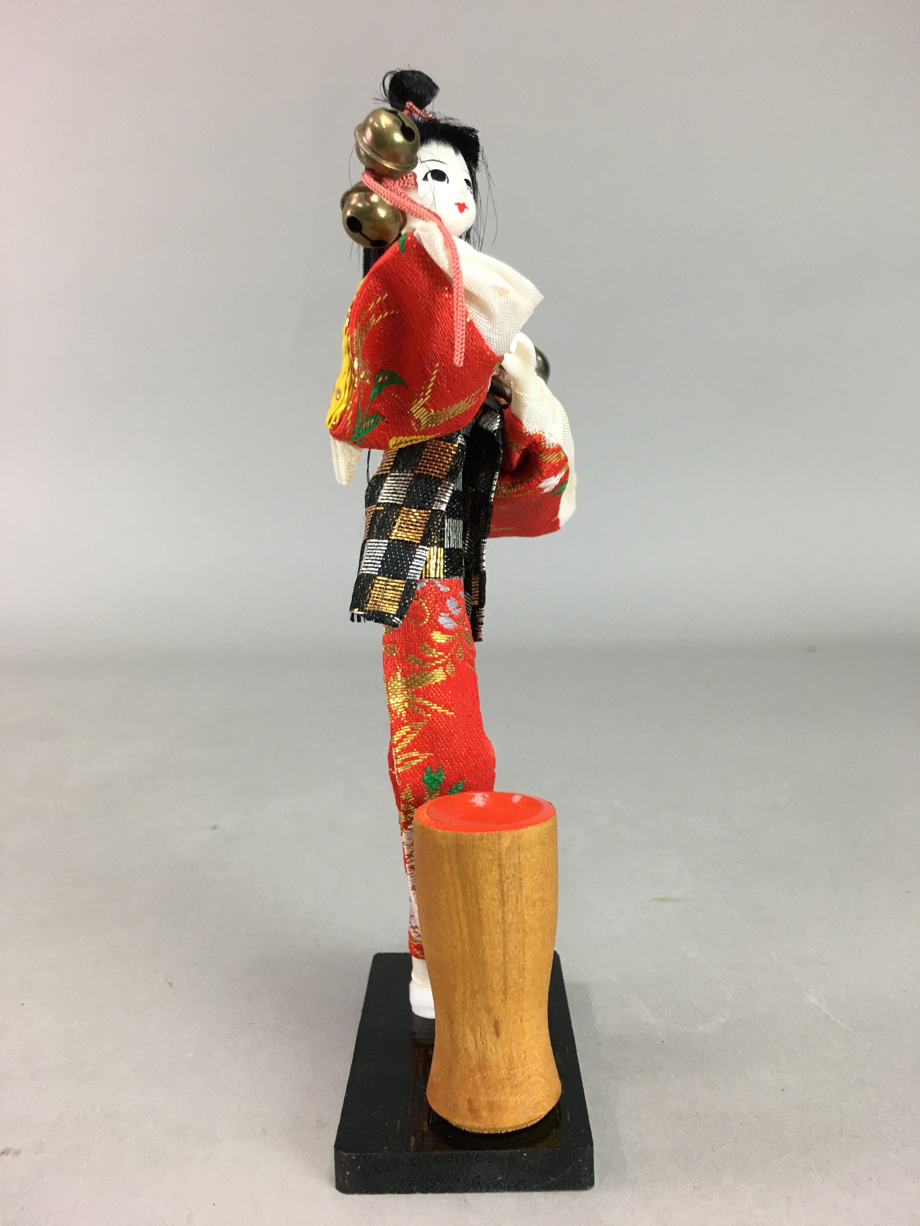 Japanese Kokeshi Doll Vtg Plaster Figurine Red Kimono Girl Bell Millet KF292