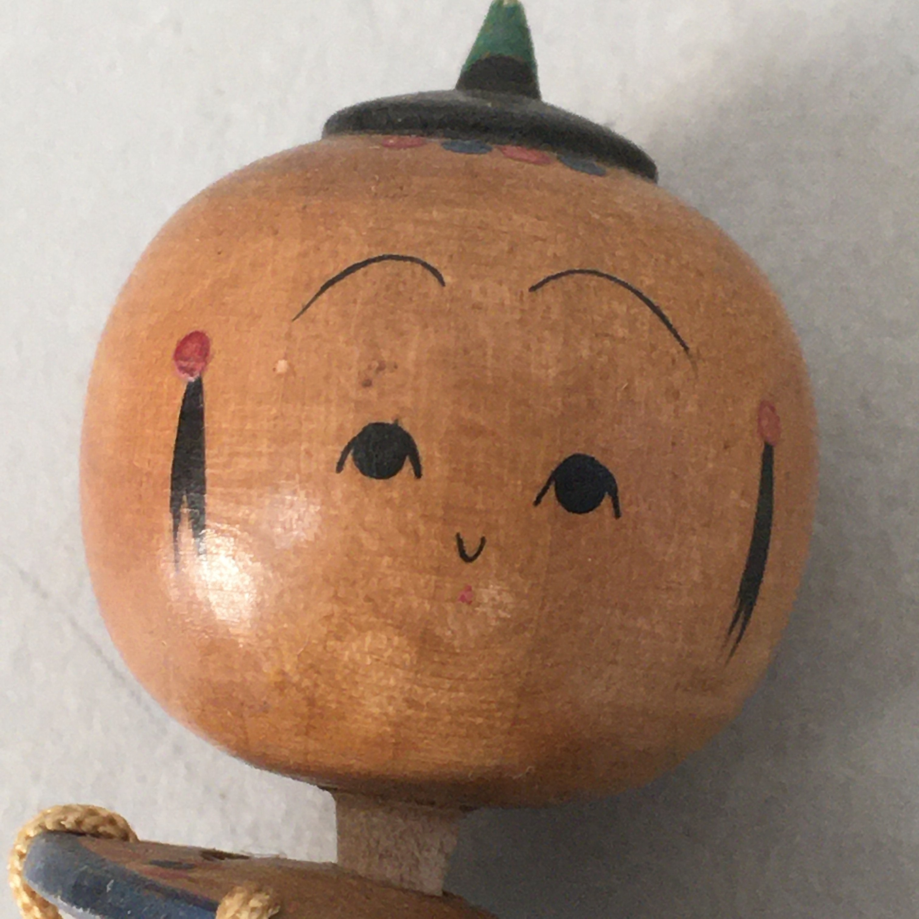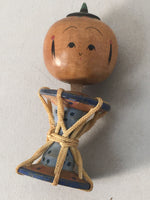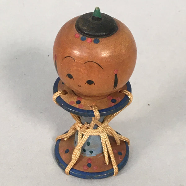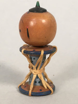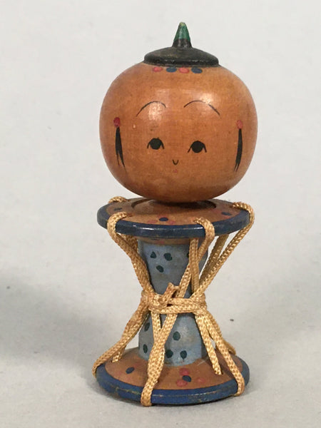 Japanese Kokeshi Doll Vtg Wooden Figurine Wobbly Head Child Drum Taiko KF474