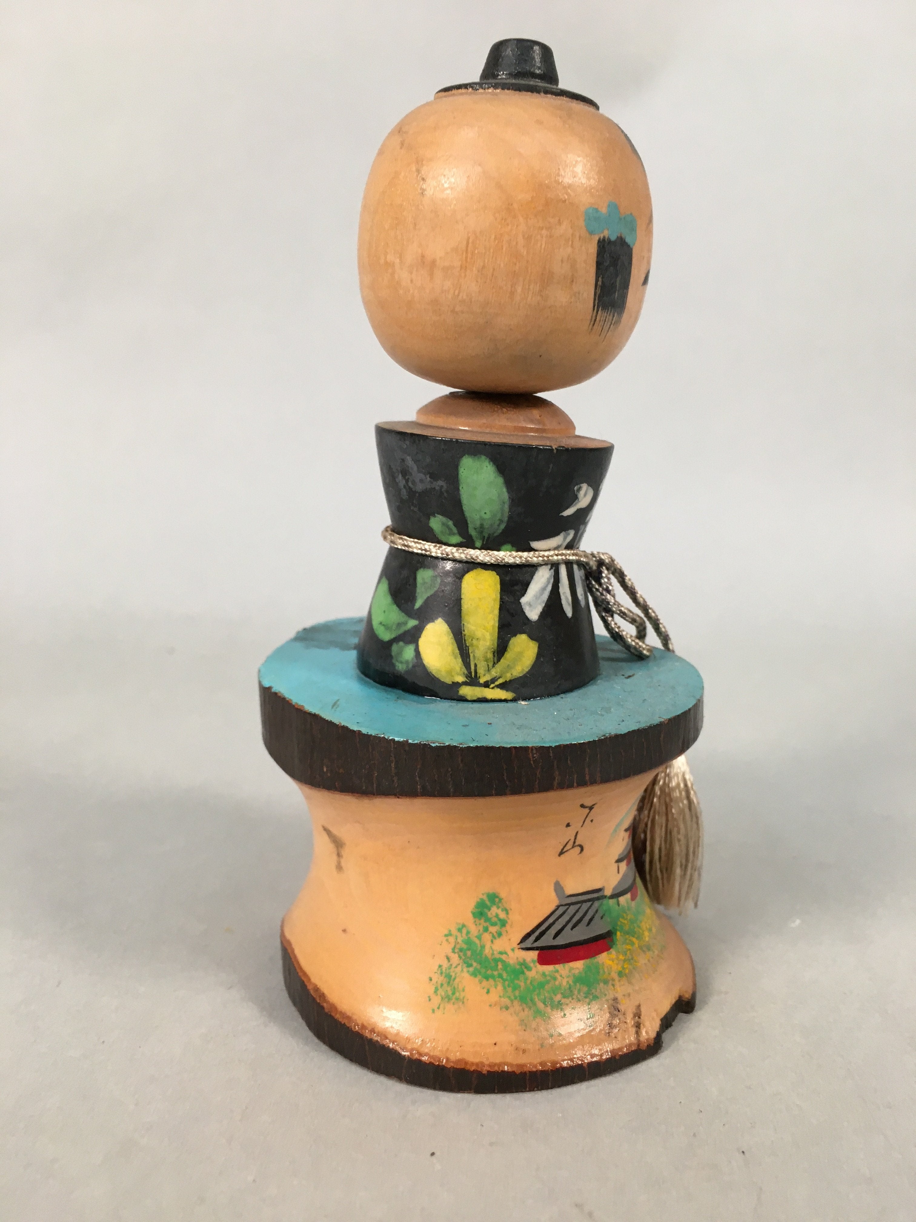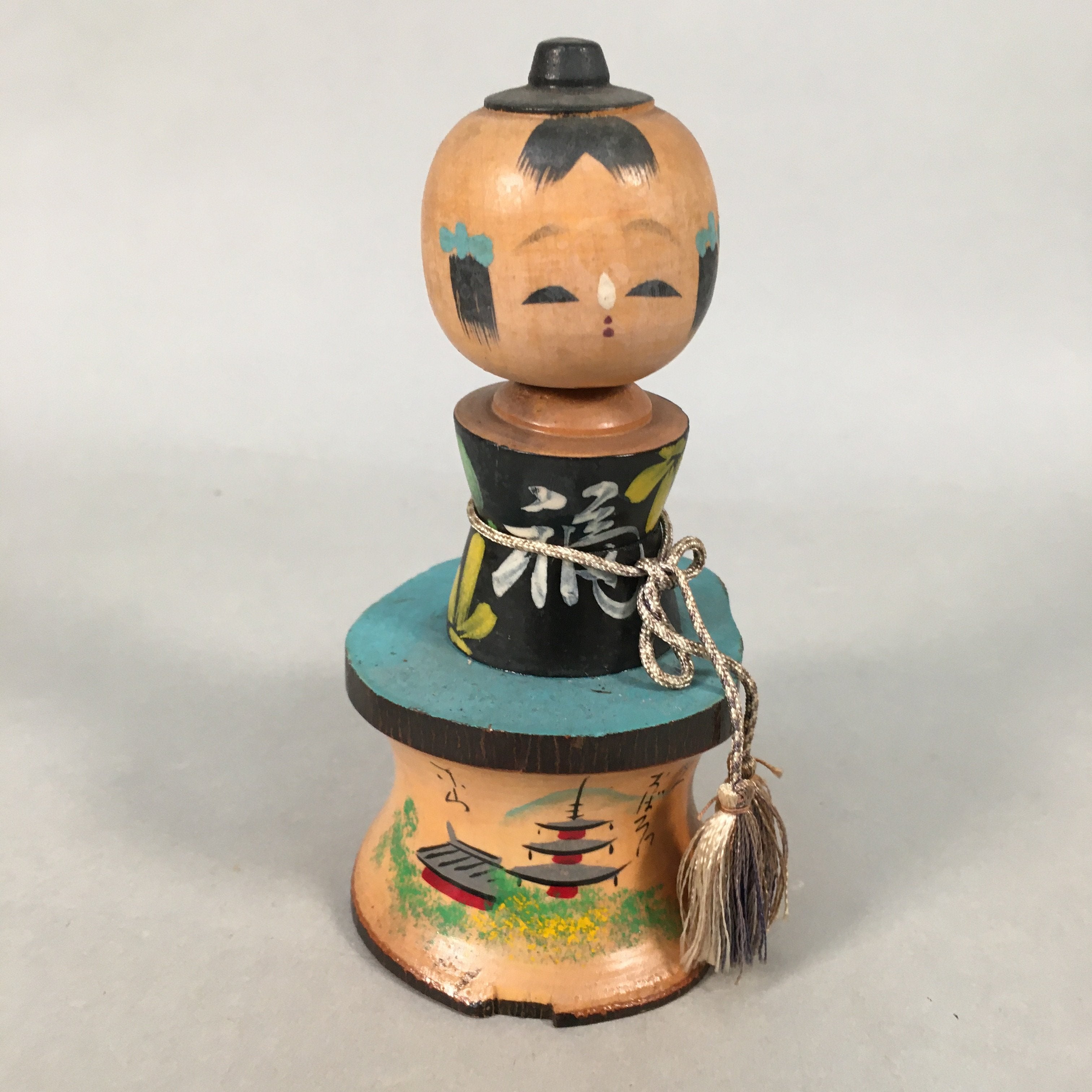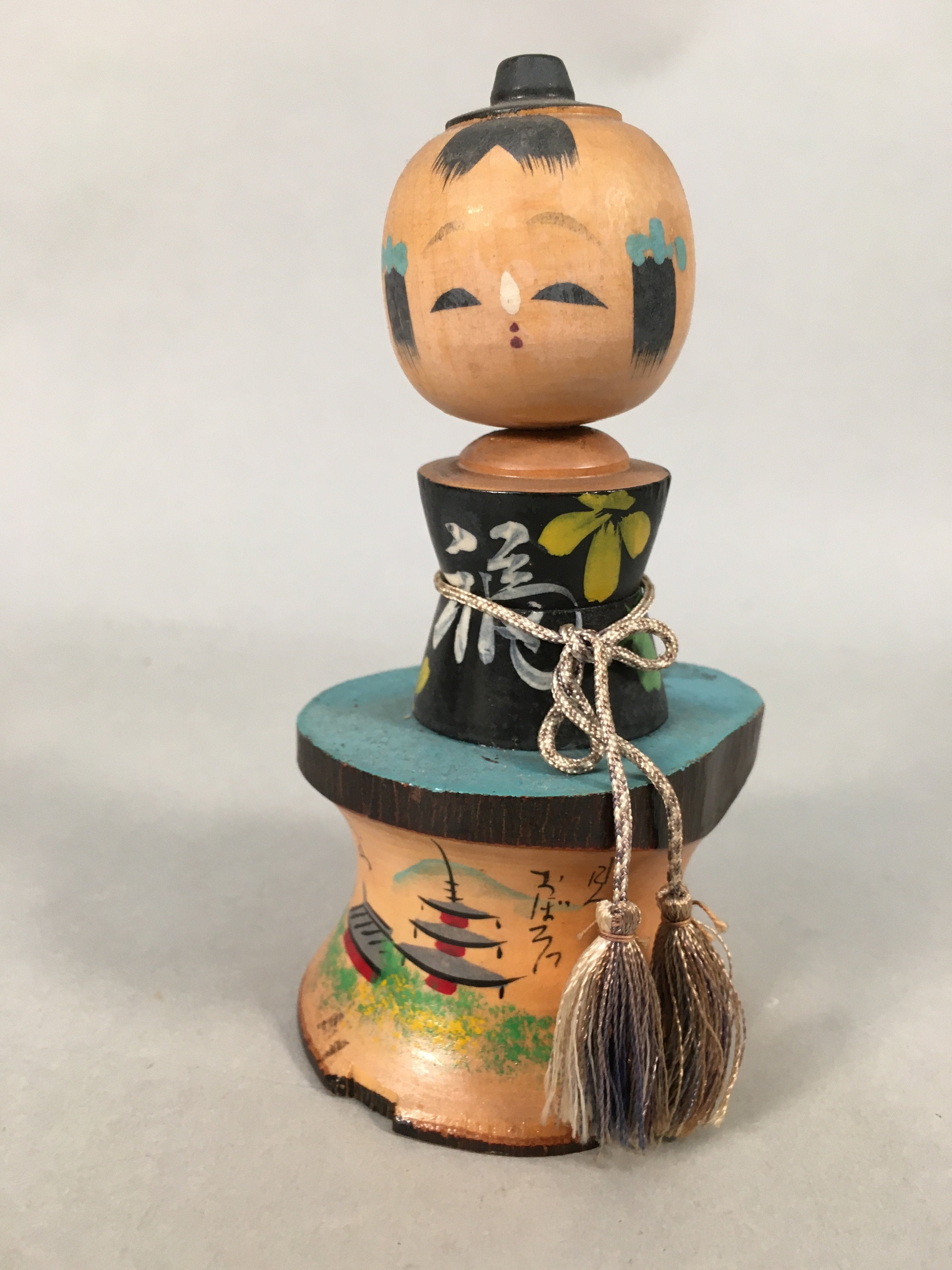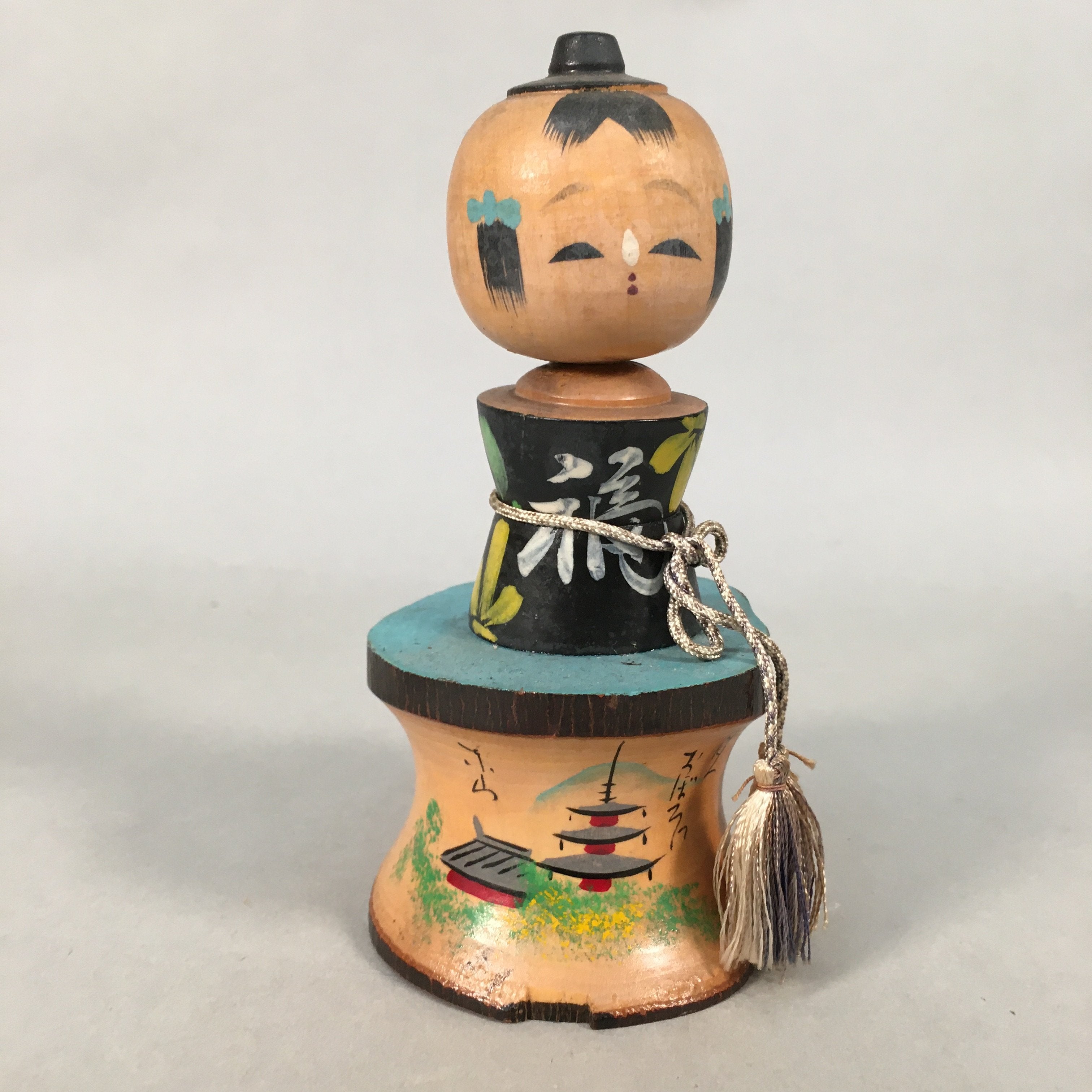 Japanese Kokeshi Doll Vtg Wooden Figurine Wobbly Head Kanji Pagoda KF502