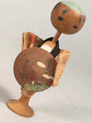 Japanese Kokeshi Doll Vtg Wooden Figurine Wobbly Head Shade Man Kimono KF468