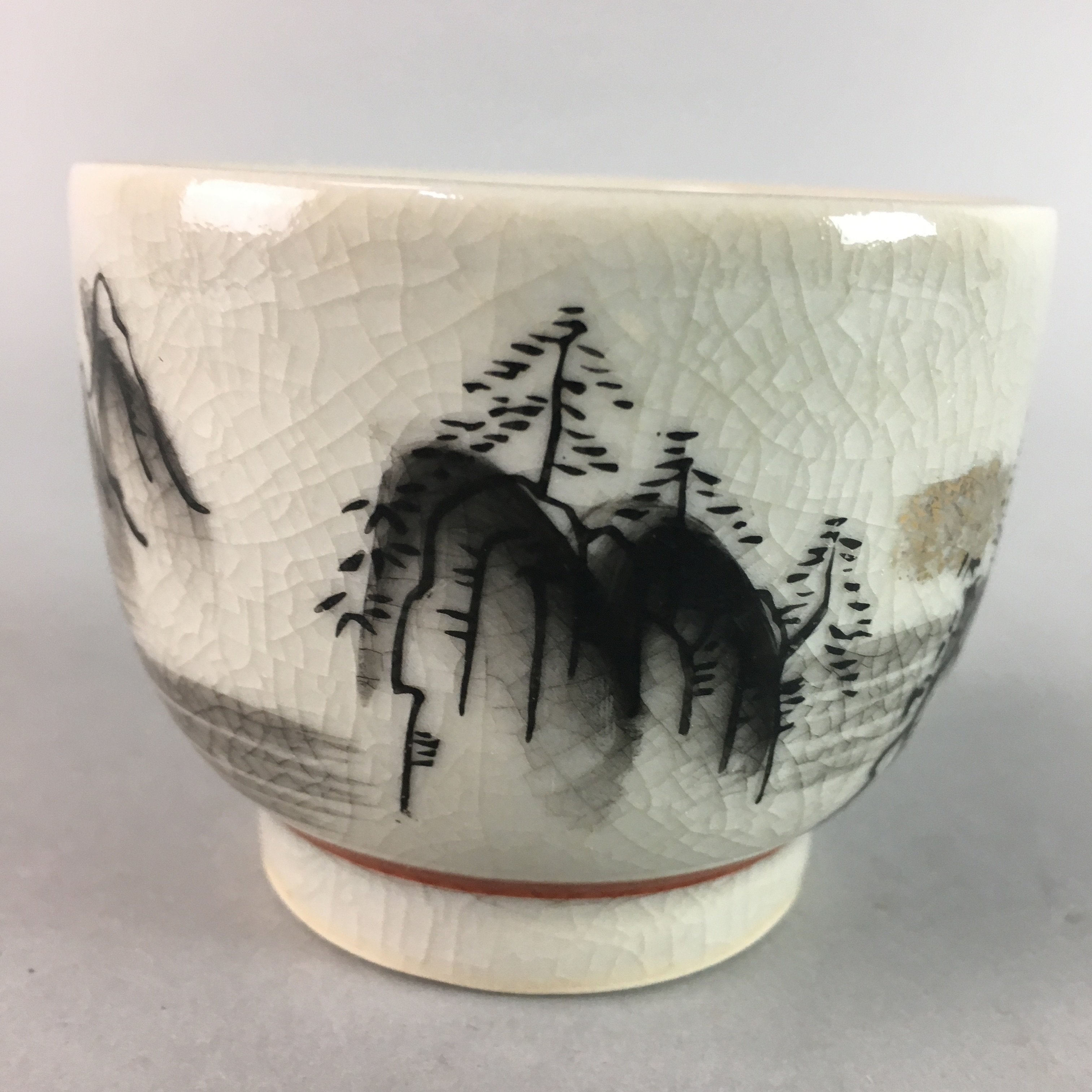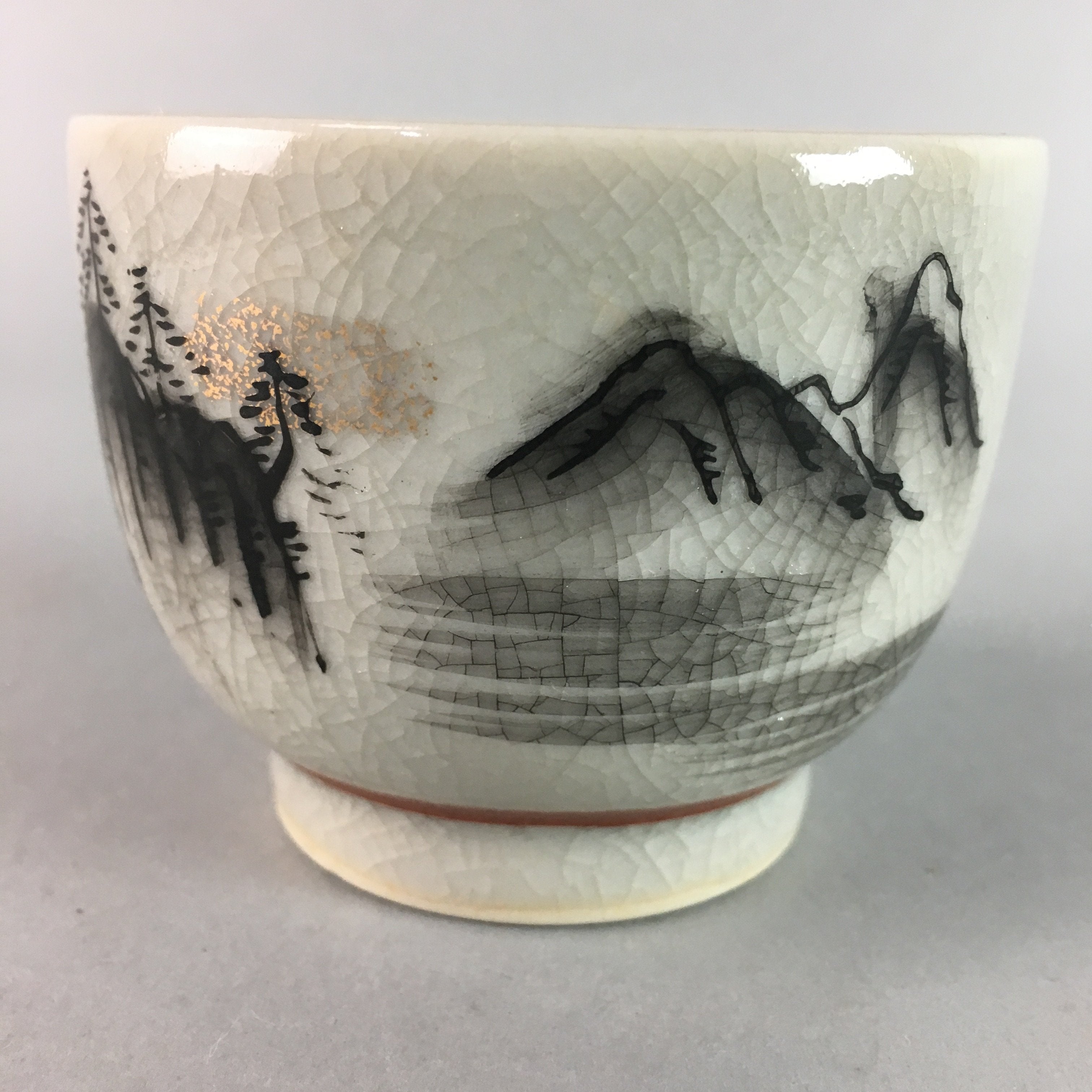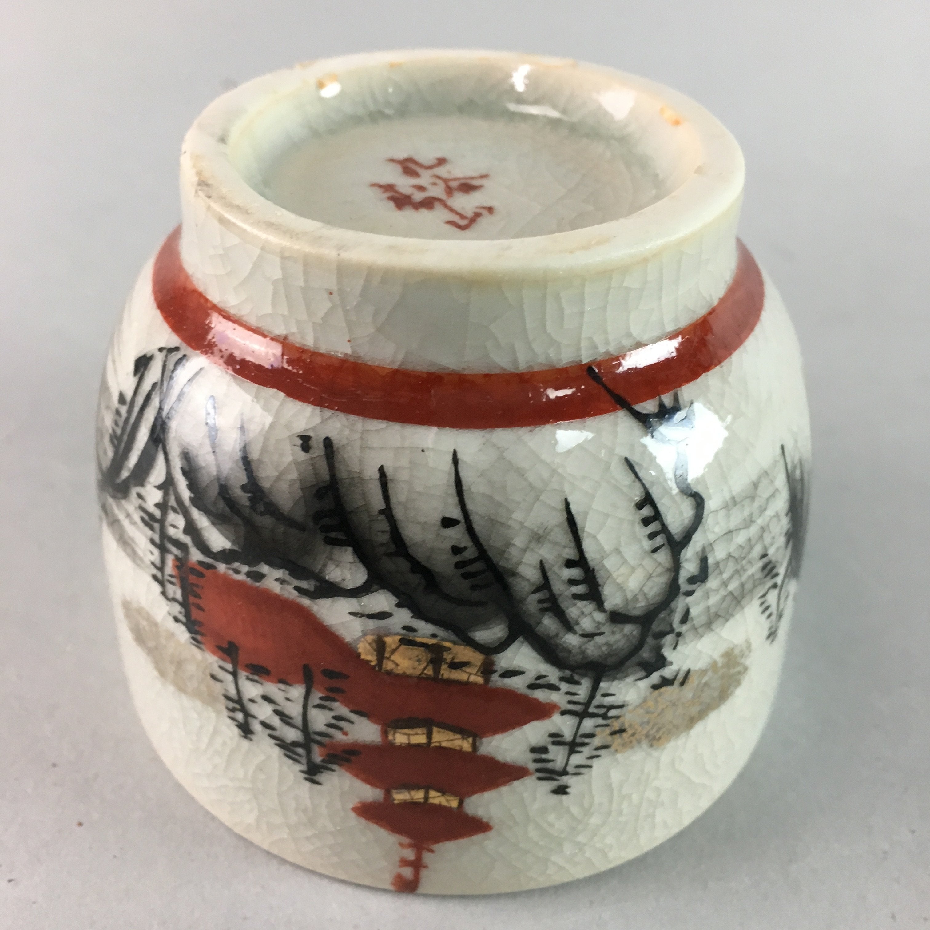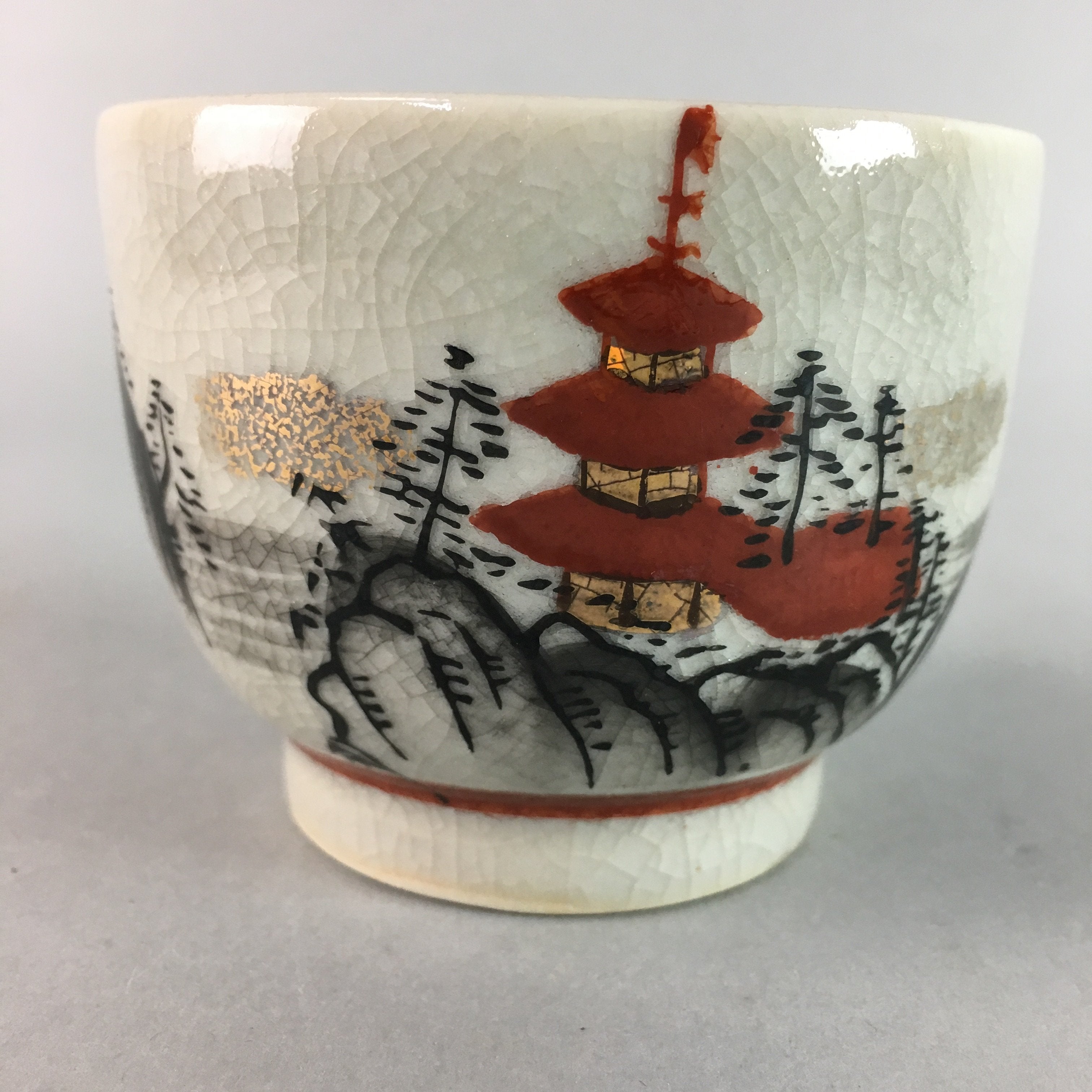 Japanese Kutani Porcelain Teacup Vtg Yunomi Pagoda Mountain Sencha PT631