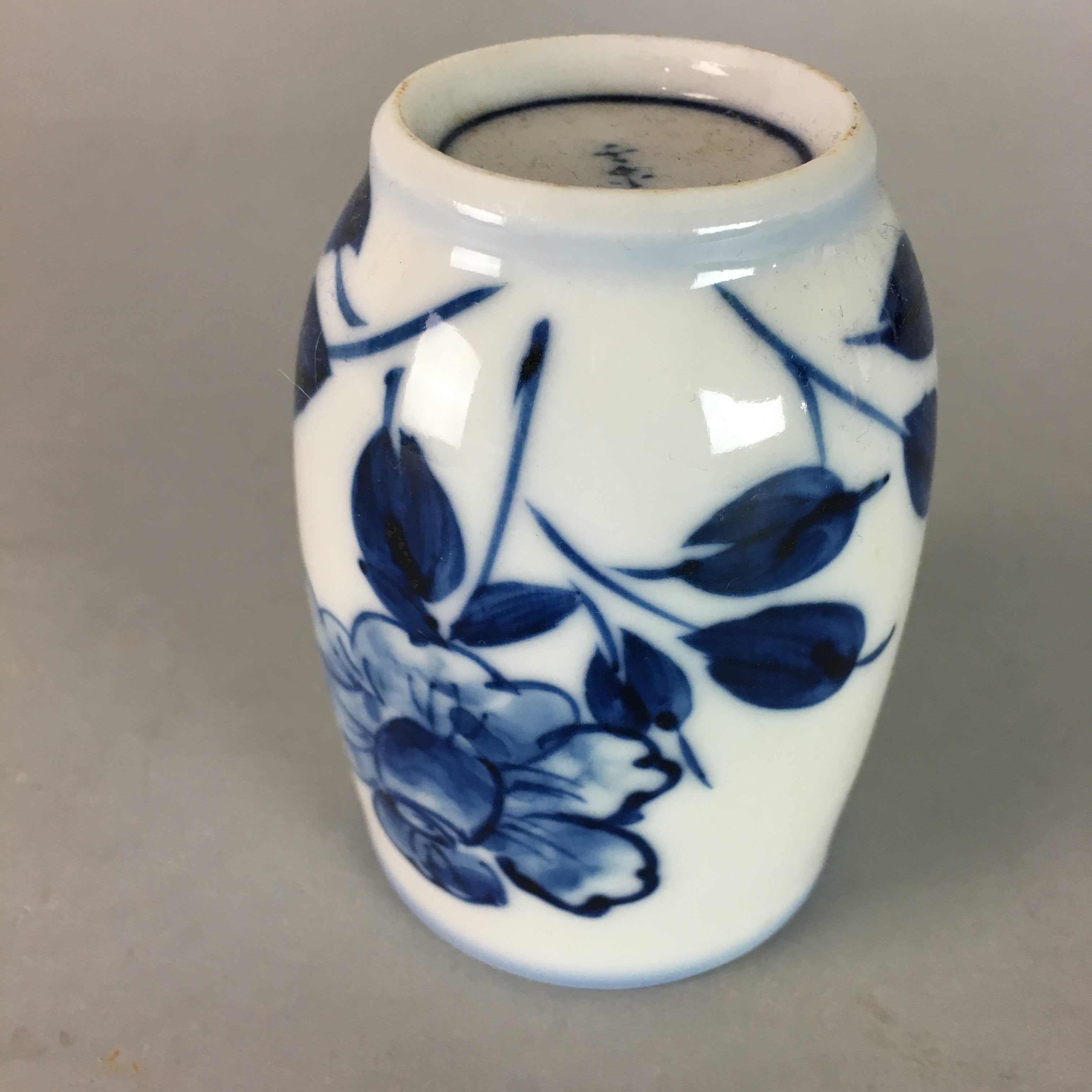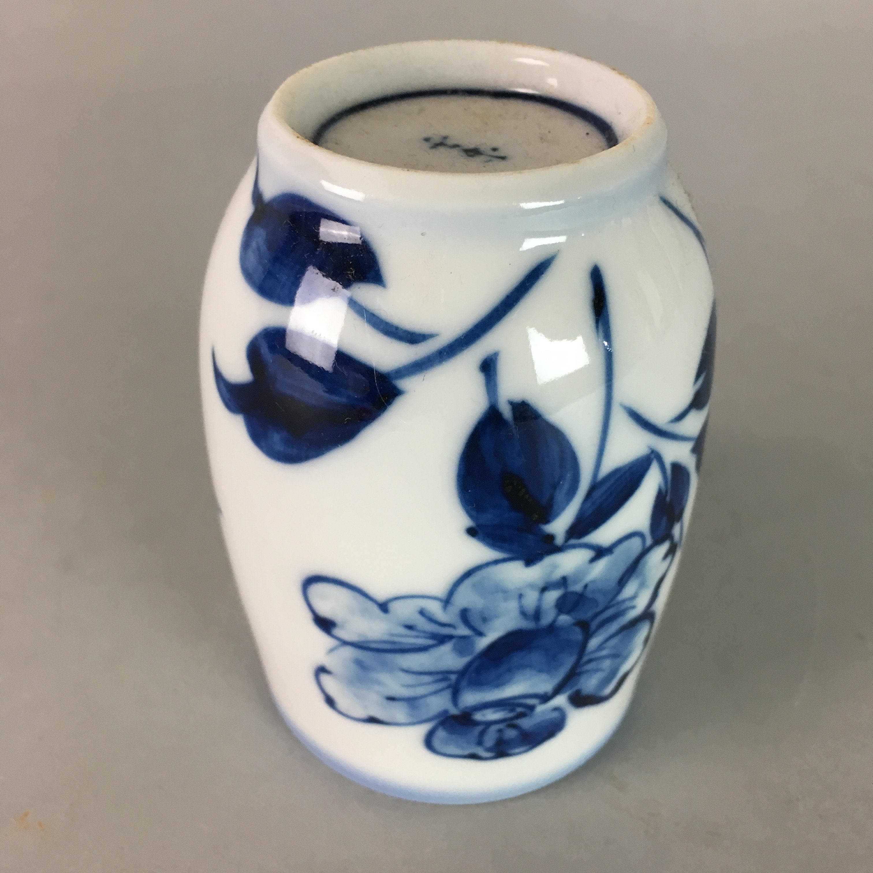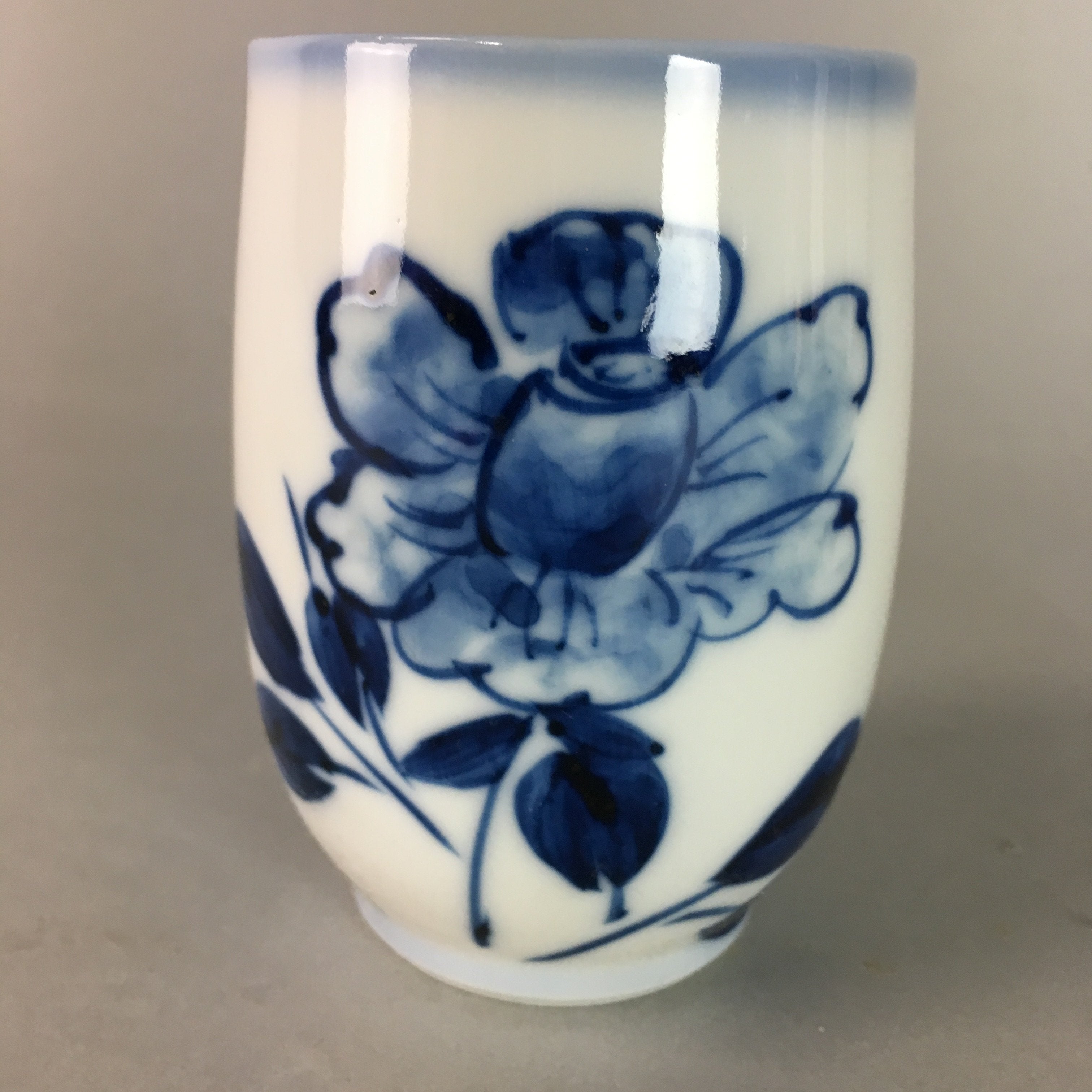 Japanese Sometsuke Porcelain Teacup Vtg Yunomi Blue White Floral Sencha TC54