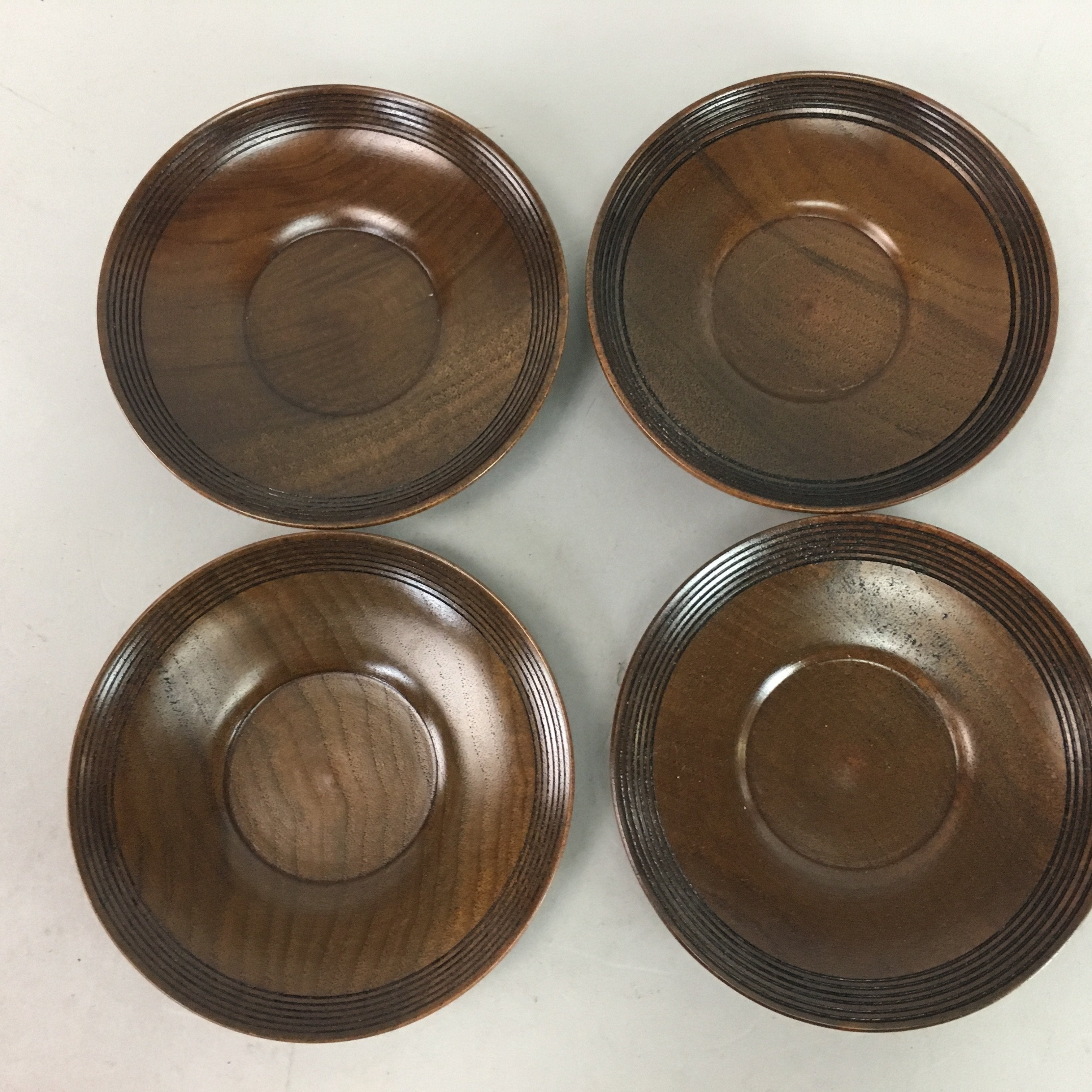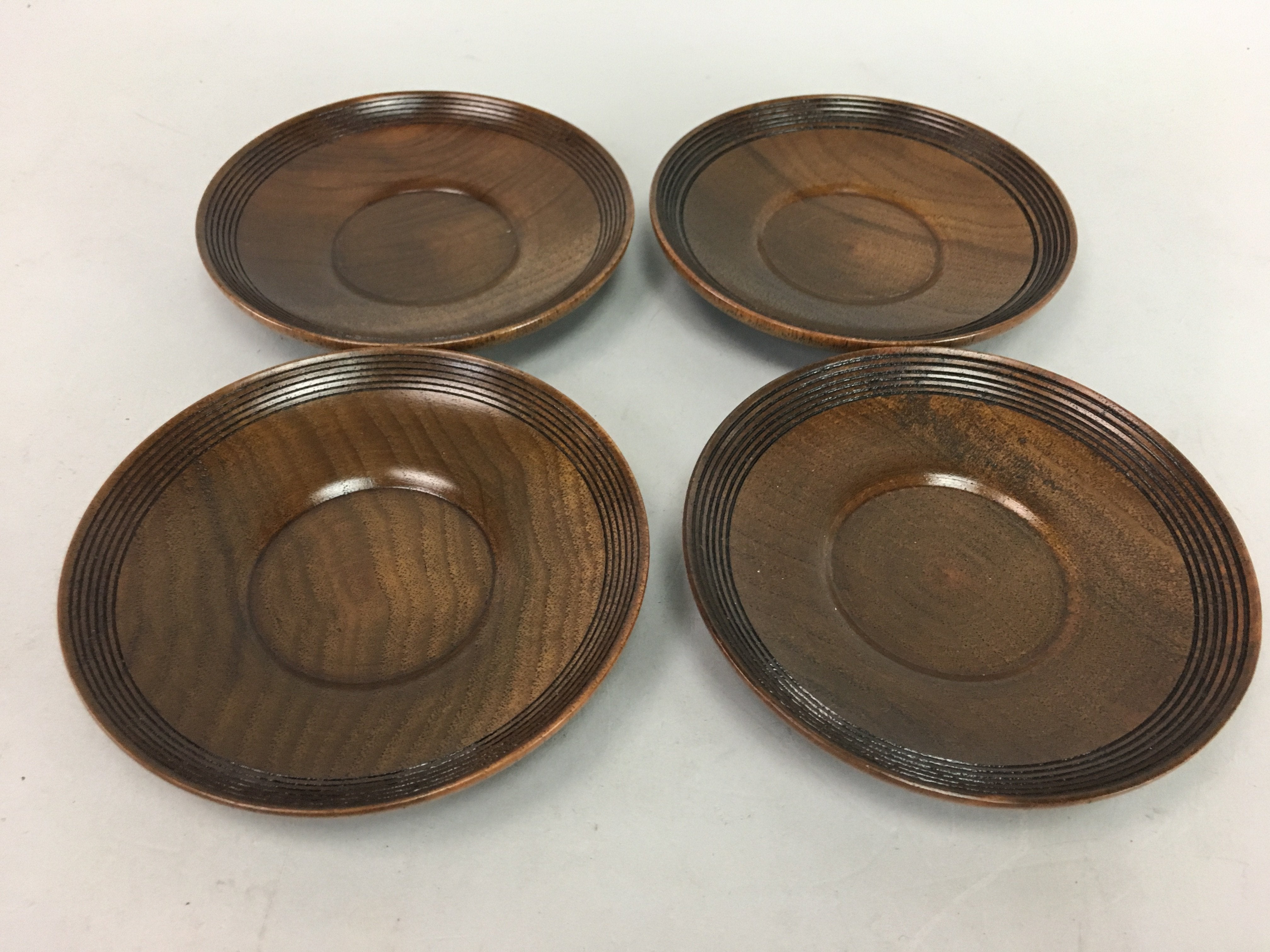 Vtg Japanese Wooden Lacquer Saucer Coaster Chataku Set 4 pieces