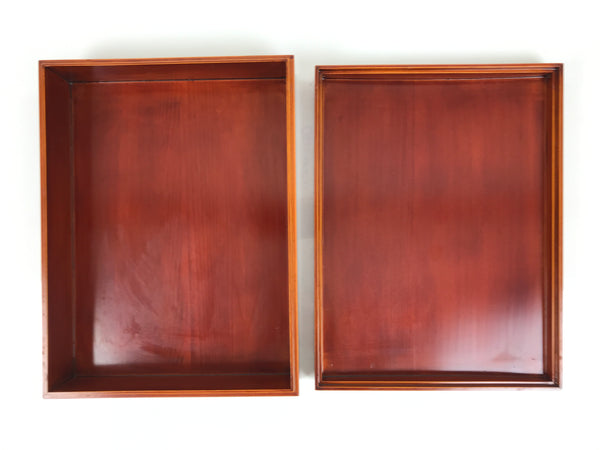 This is a Japanese lacquered wooden letter box (fumibako). It is traditionally used to store letters, small books, important documents, paper, and other stationary items.