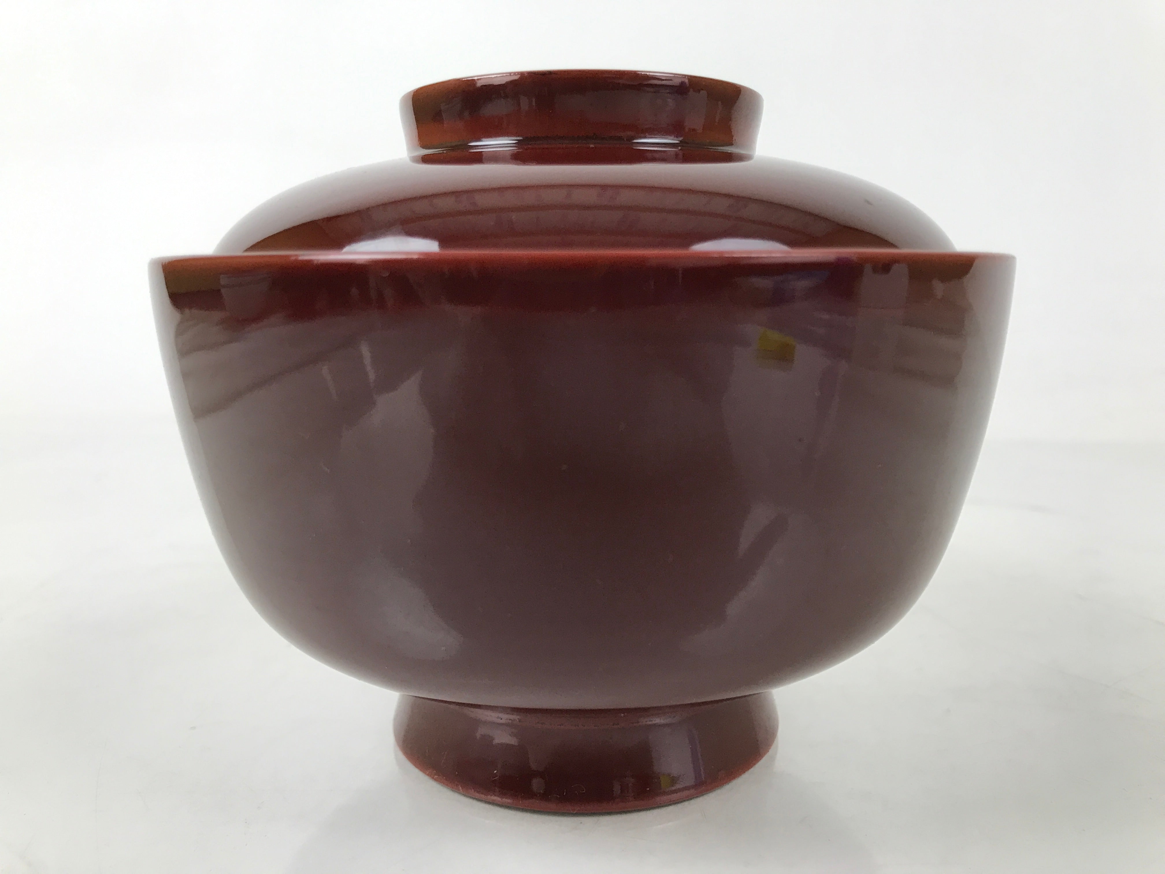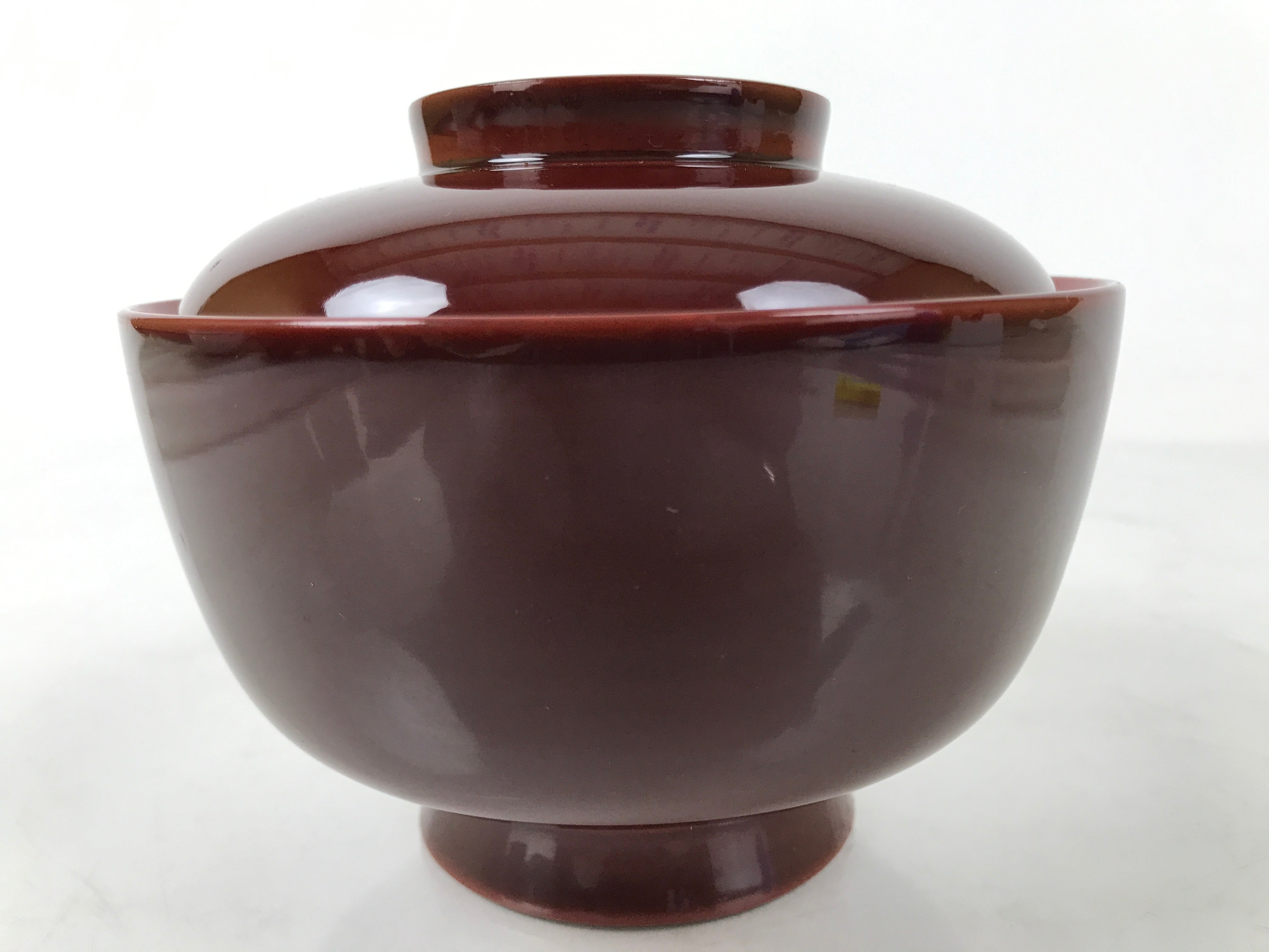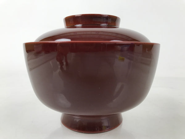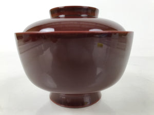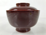Japanese Lacquer Wood Lidded Rice Bowl Vtg Echizen-Nuri Round Brown Red LWB112