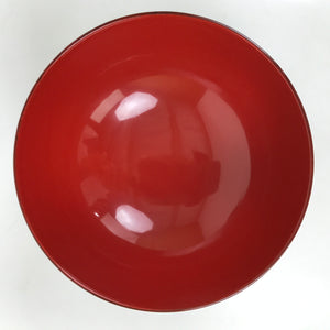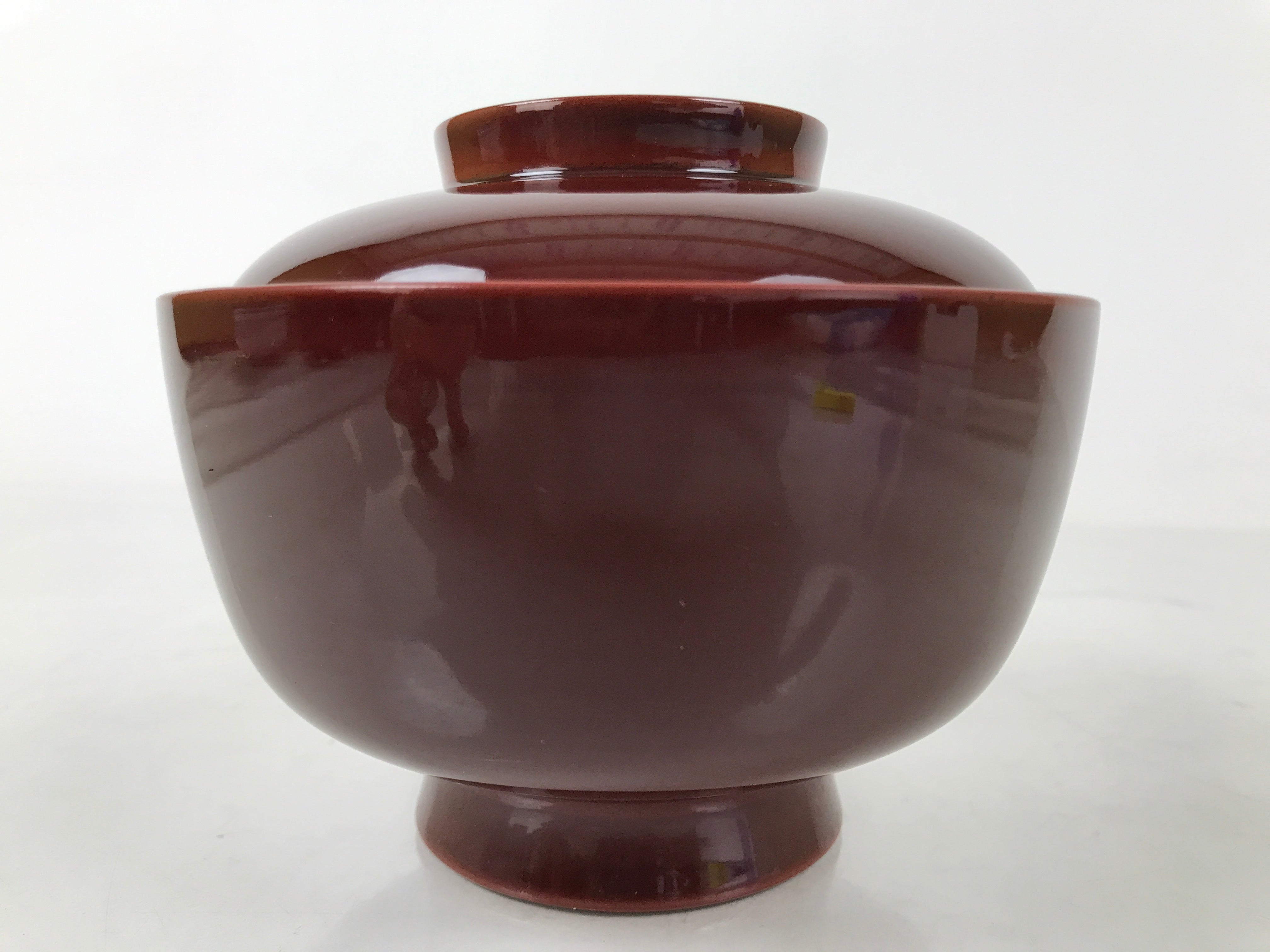 This is a Japanese vintage lacquered Echizen-Nuri wooden rice bowl with a lid. This round bowl is a Chawan or Meshiwan. The color is a reddish-brown outside and a vermilion inside. It is thin on the top and gets thicker at the bottom. It can also be used for side dishes. It comes with the original washi paper box.