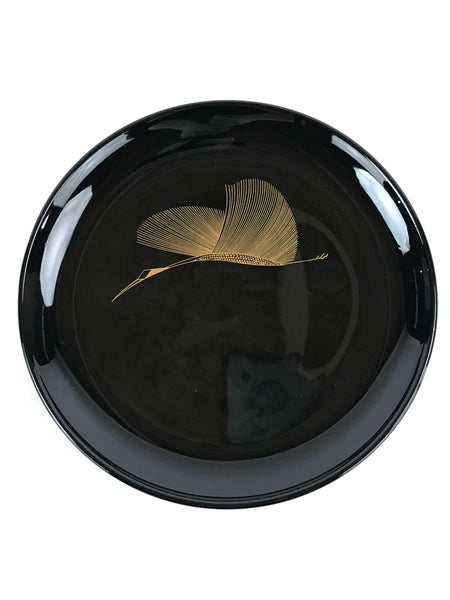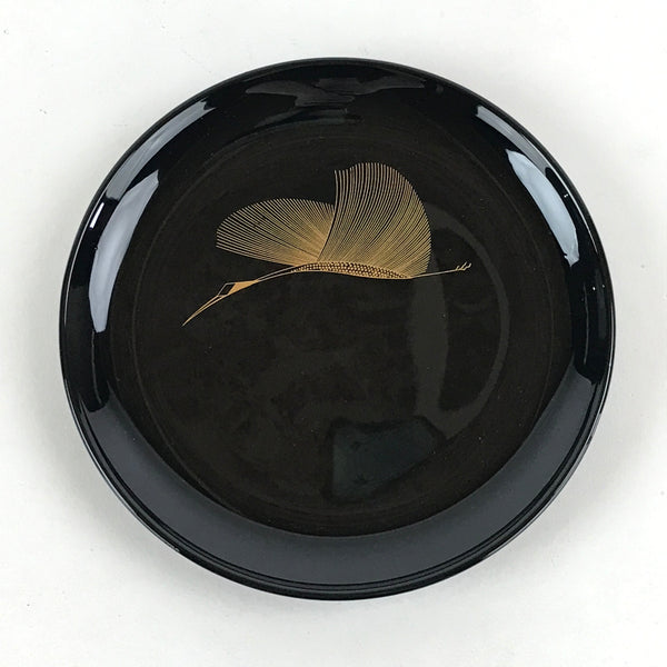 Japanese Lacquered Wooden Meimeizara Plate Vtg Sara Makie Tsuru Crane Black L8