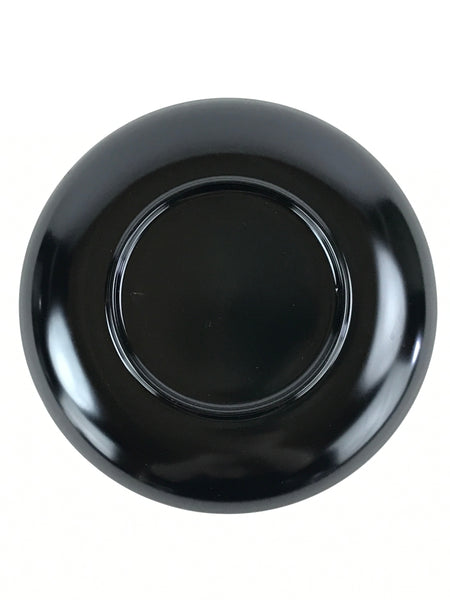 Decorated with a beautiful gold makie design of a flying crane (tsuru), this glossy black plate is used for serving small snacks and desserts. It is also common to use these types of plates (called meimeizara) during tea ceremonies for wagashi sweets. This little lightweight round sara plate is perfect for decoration as well as for entertaining.