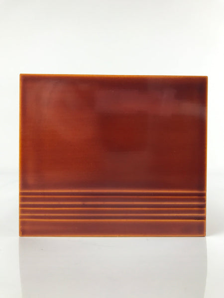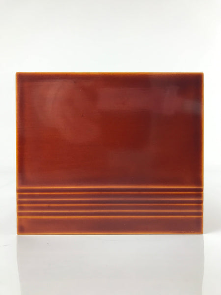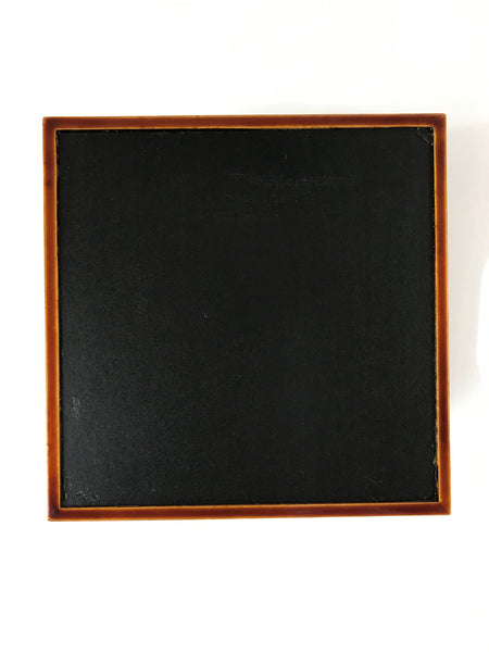 This square box with a removable lid is painted a caramel brown in true shunkei-nuri style. It has a simple line design on the lower half that stretches all the way around. It can be used to store loose-leaf tissues or can be used as a small countertop waste bin. The inside is a matte black color. It comes with the original box.