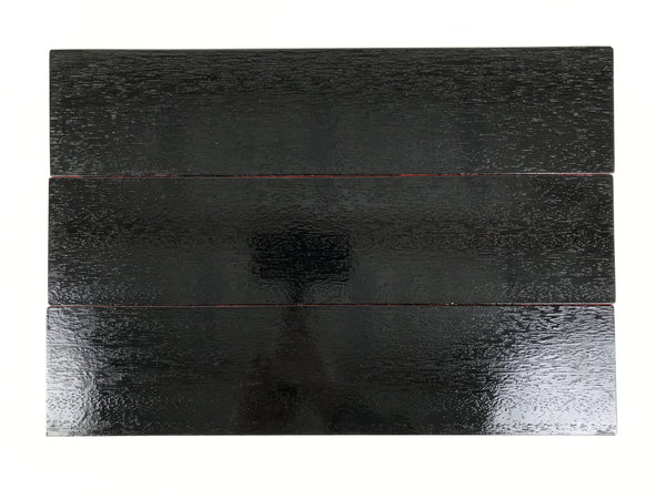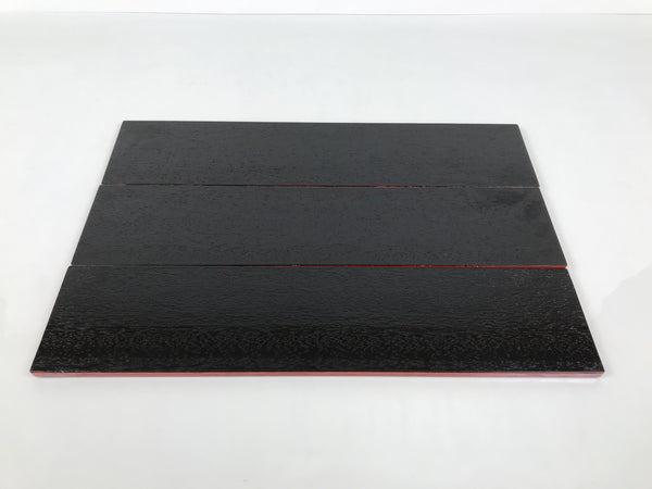 Used for the display of flower vases, ikebana arrangements, bonsai, and more, this multi-piece, arrangeable rectangular display stand is handcrafted from a piece of solid wood. It is coated in a glossy black lacquer on one side while all other sides are a reddish orange color. It has no extra embellishments or design, so it is an excellent choice for simple and traditional arrangements.