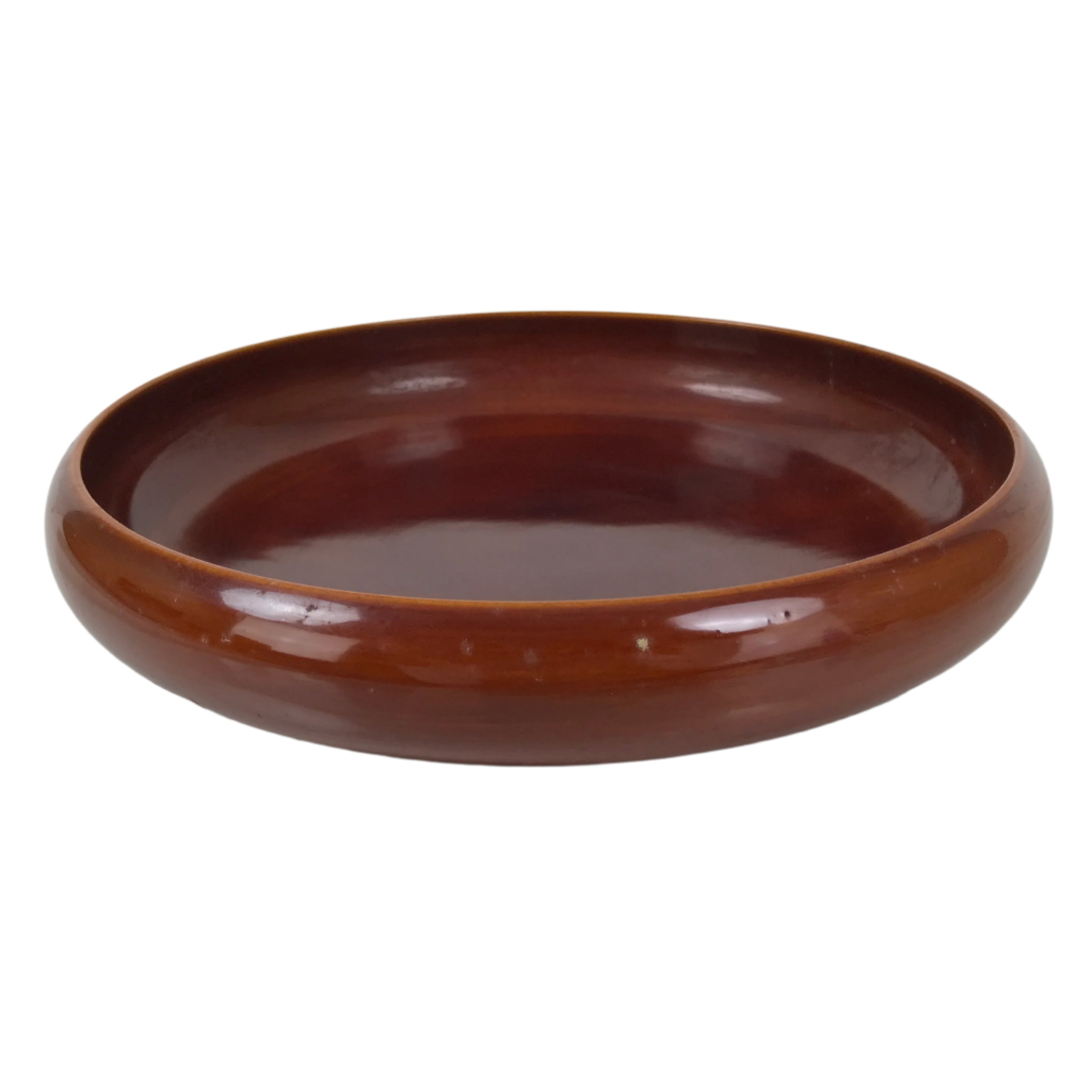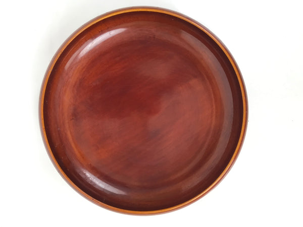 This is a Japanese vintage snack bowl, or kashiki, in the Shunkei-Nuri style. It is a caramel brown color, true to the shunkei-Nuri style of lacquerware. It is typically used for serving snacks, such as senbei crackers or sweets, to guests in one's home, business, etc. It is also commonly used in tea ceremonies to serve and display traditional namagashi sweets