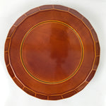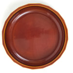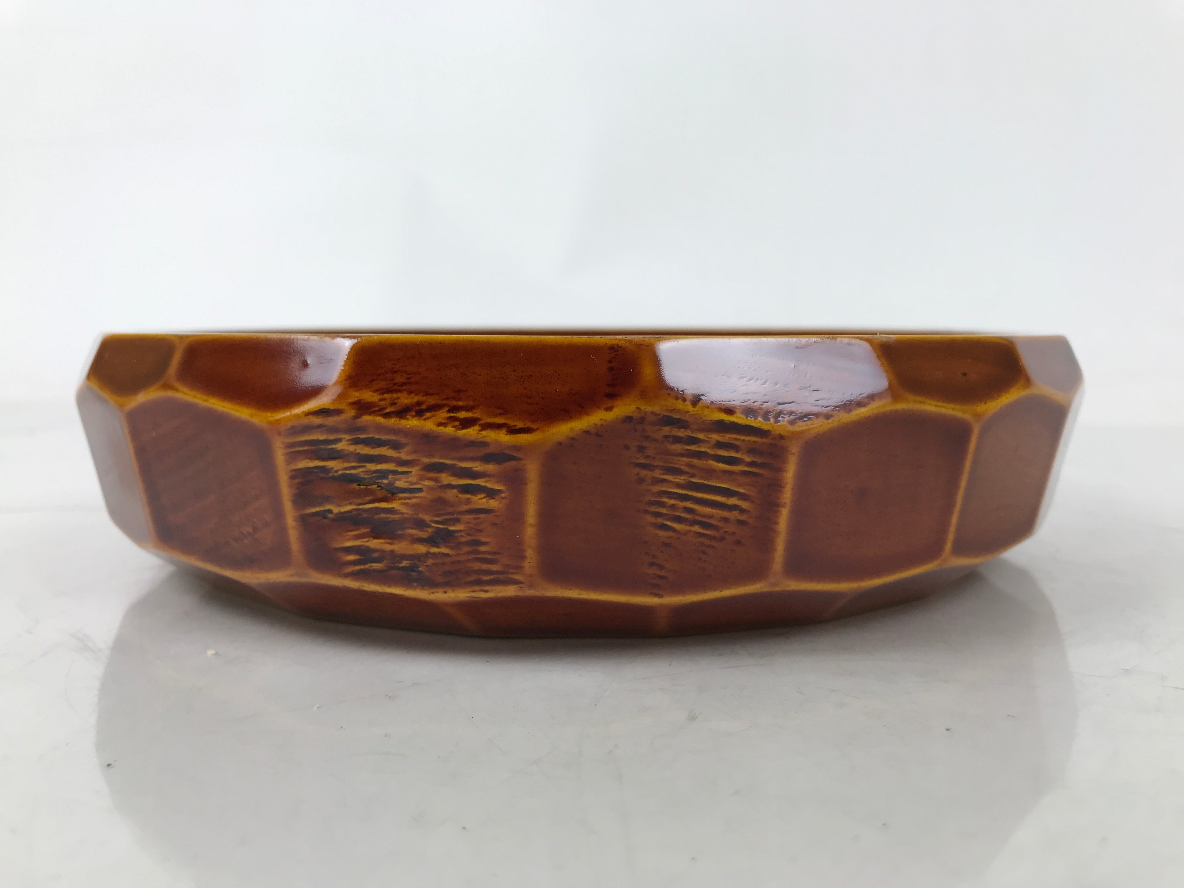 This is a Japanese vintage snack bowl, or kashiki, in the Shunkei-Nuri style. It is a caramel brown color, true to the shunkei-Nuri style of lacquerware. The outside has a carved-like design. It is typically used for serving snacks, such as senbei crackers or sweets, to guests in one's home, business, etc. It is also commonly used in tea ceremonies to serve and display traditional namagashi sweets.