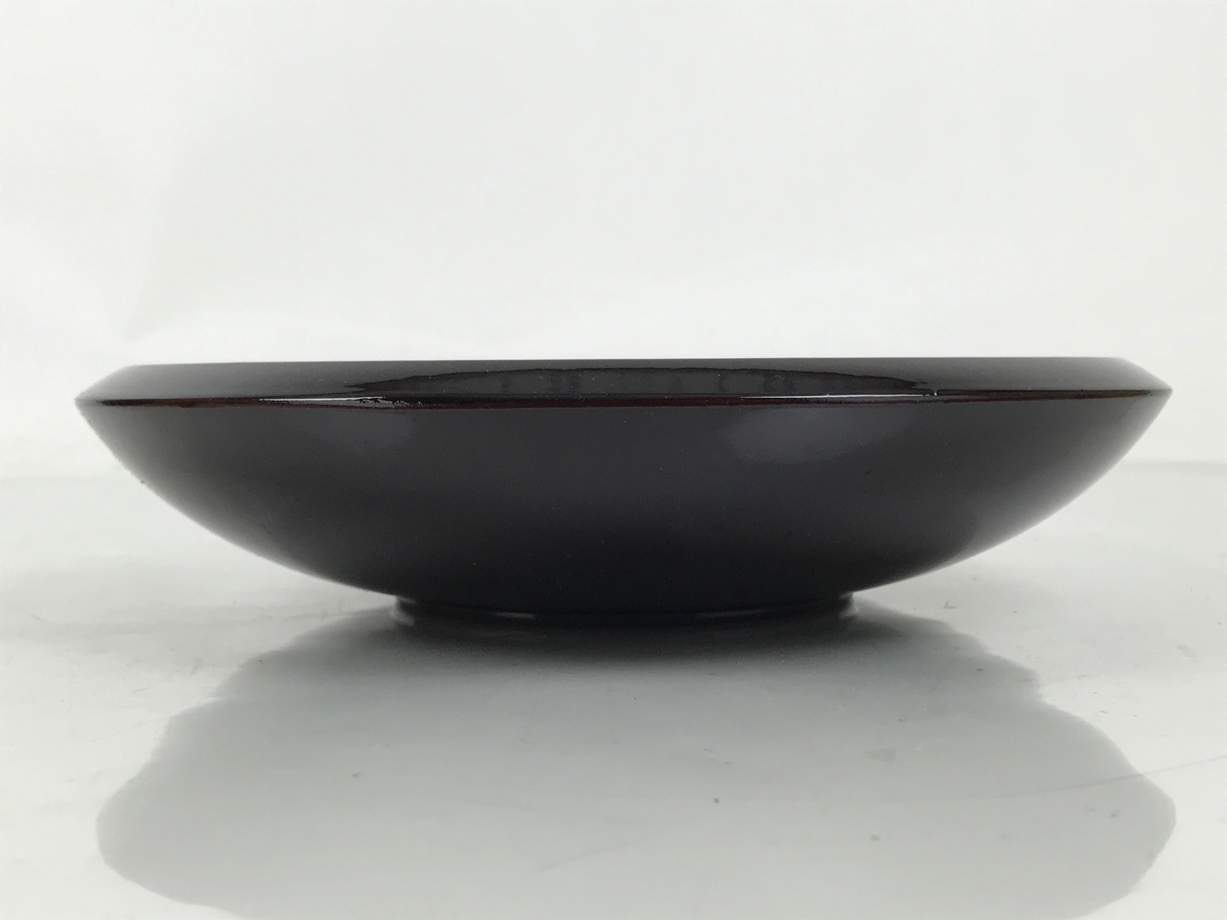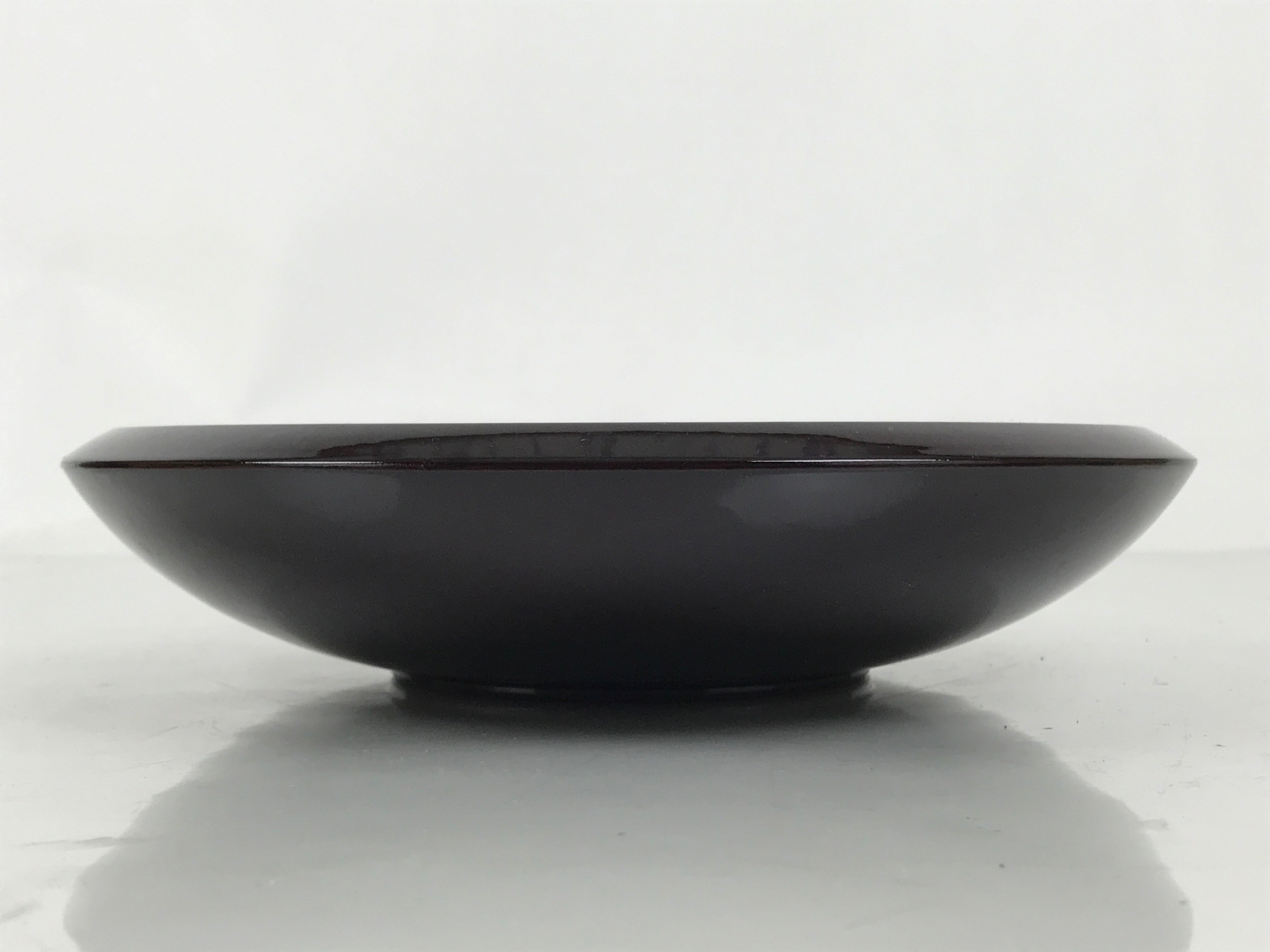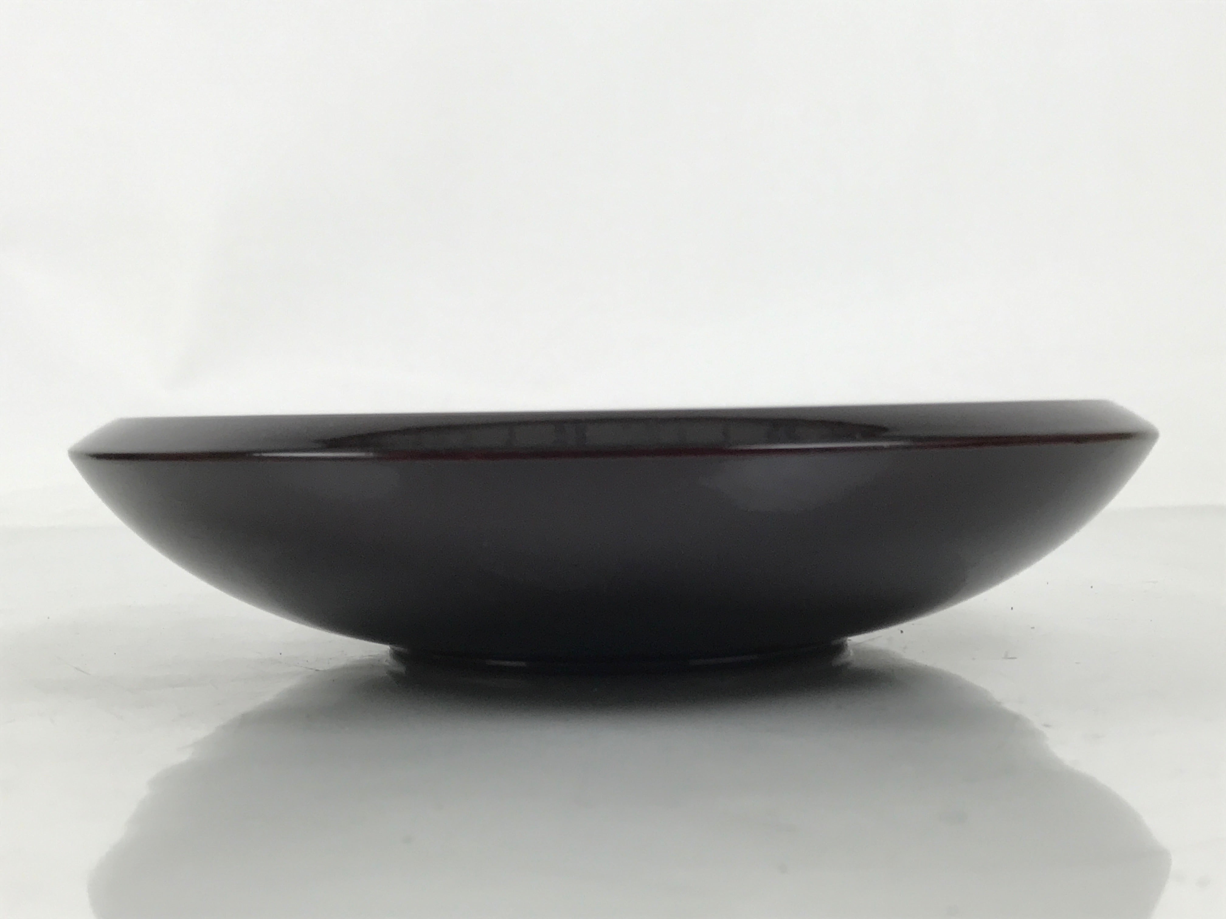 This is a Japanese vintage snack bowl, or kashiki, in the Aidu-Nuri style. It is a dark reddish brown color with a floral makie. The surface is glossy and smooth. It is typically used for serving snacks, such as senbei crackers or sweets, to guests in one's home, business, etc. It is also commonly used in tea ceremonies to serve and display traditional namagashi sweets