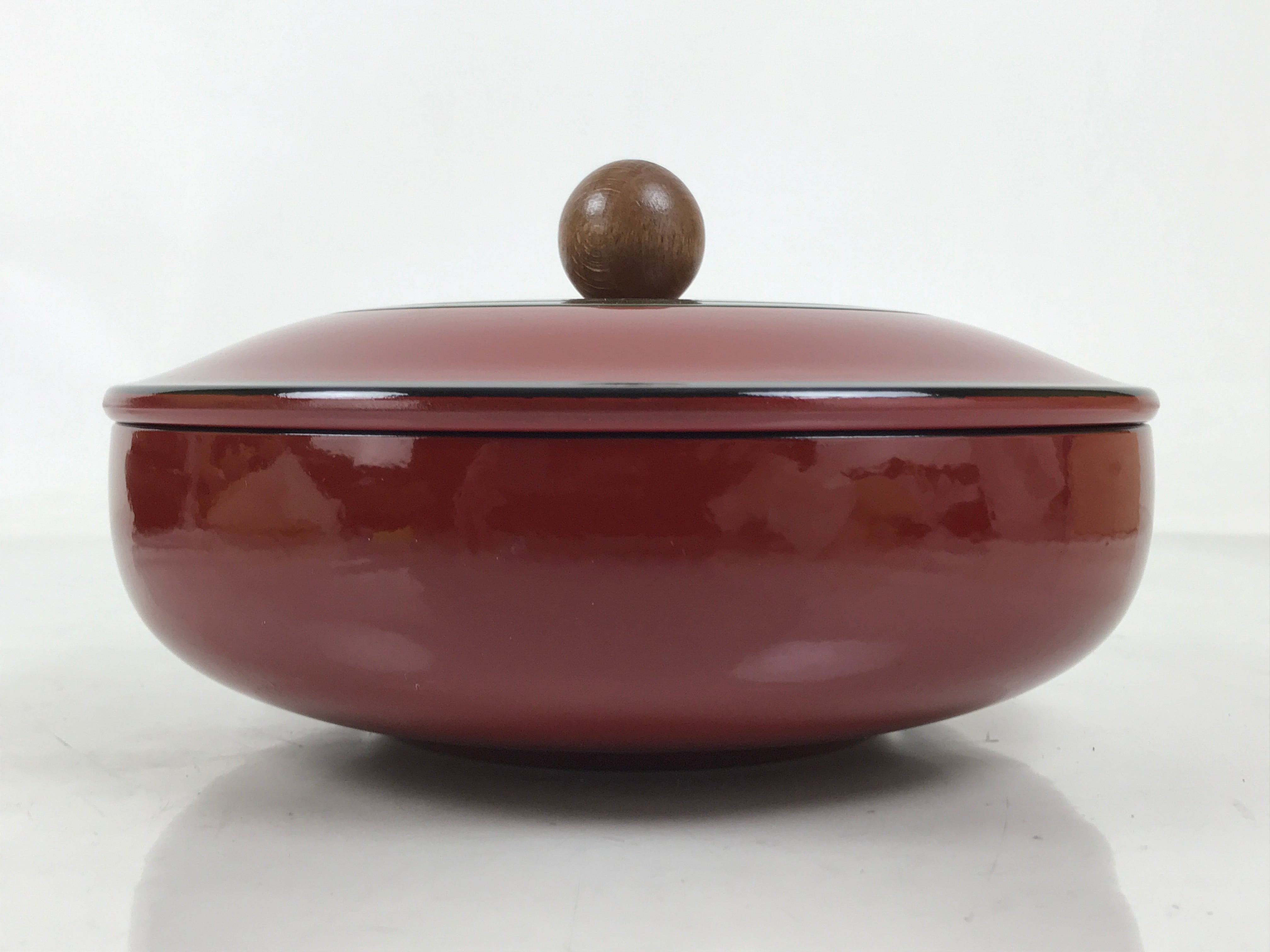 Japanese Lacquer Wooden Lidded Bowl Kashiki Vtg Red Tea Ceremony w/Box LWB132