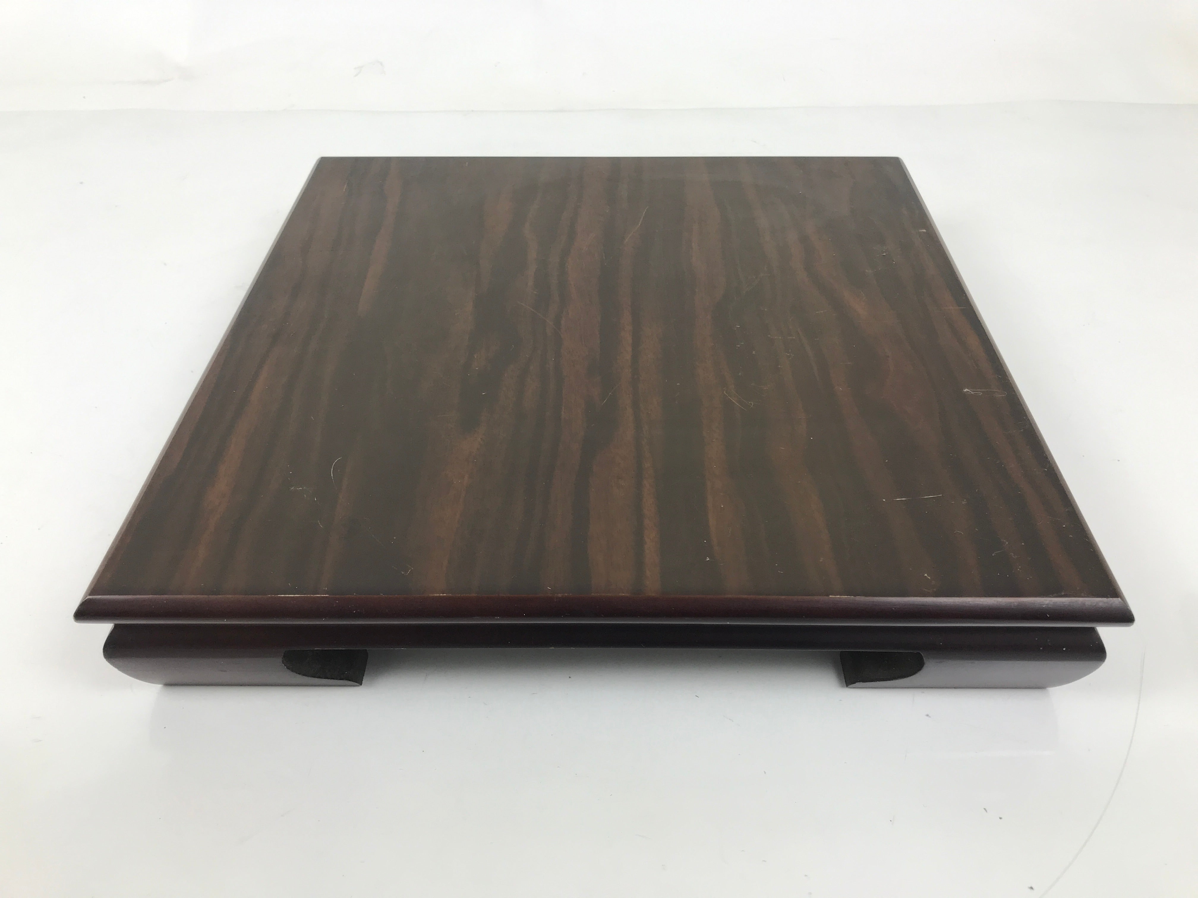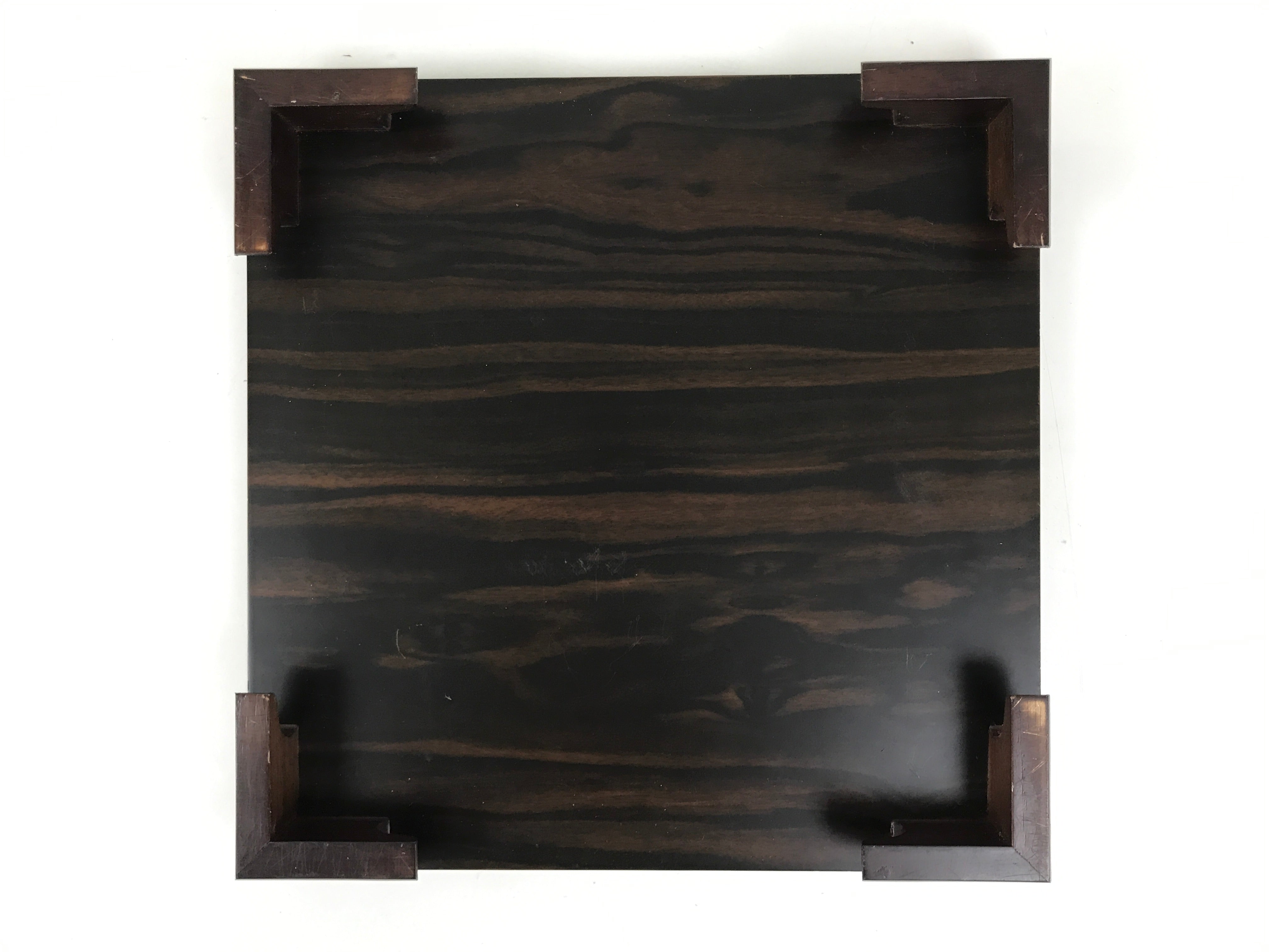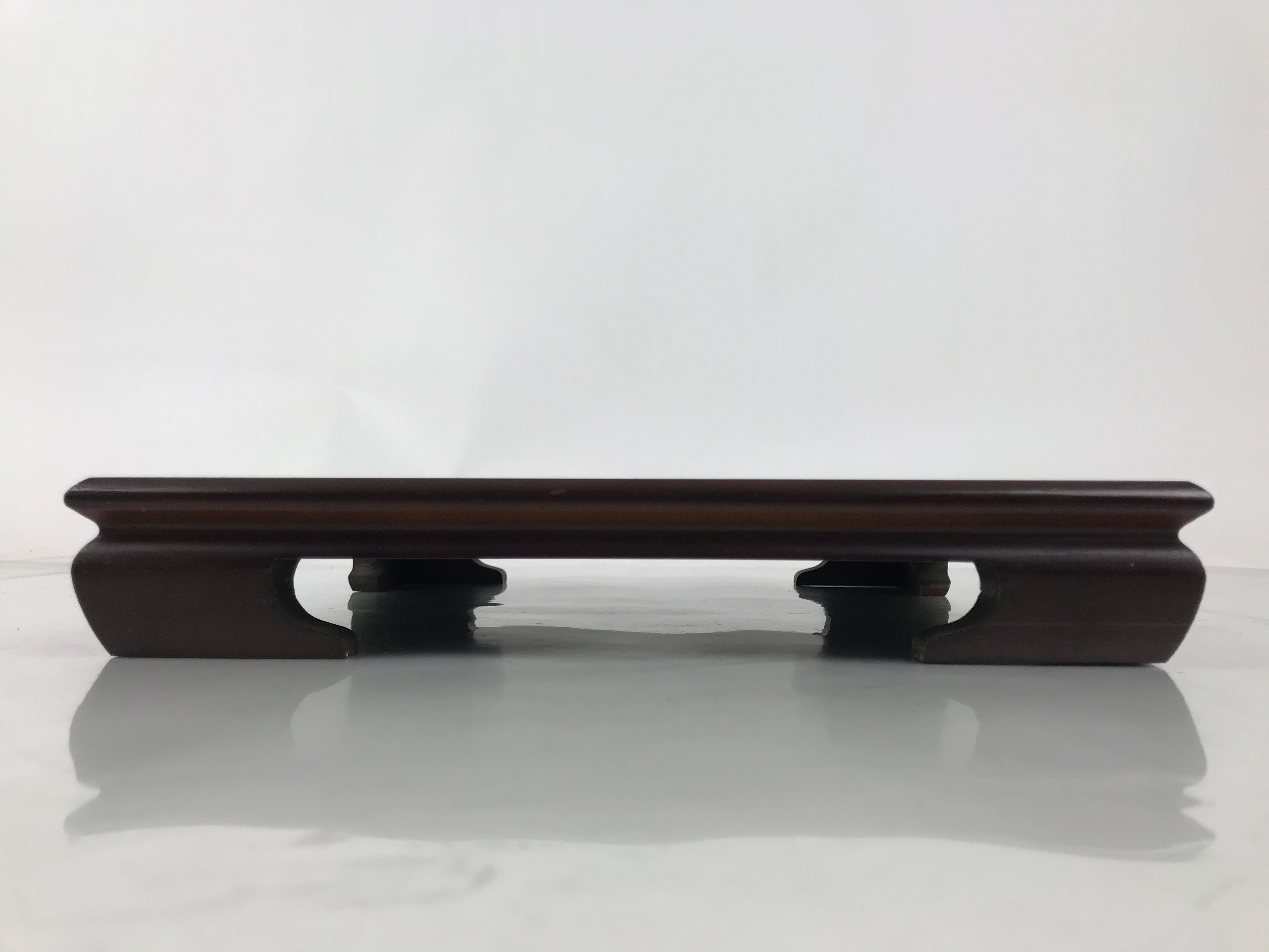 Used for the display of flower vases, ikebana arrangements, bonsai, and more, this large, square-shaped kadai stands on four sturdy and curvy legs. The color is a dark brown that showcases the stand's natural wood grain.