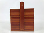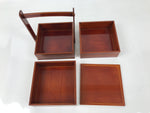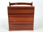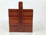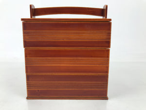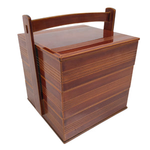 Japanese Lacquered Wooden Lunch Box Bento Shunkei Two Tiers Brown Handle L490