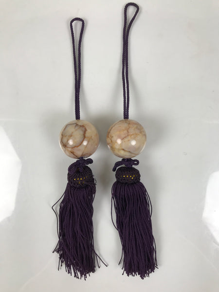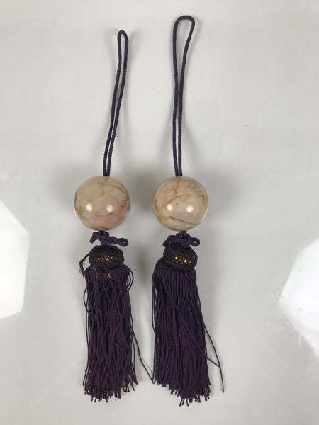 Japanese Marble Stone Hanging Scroll Weights Fuchin Kakejiku Purple Tassel FC370