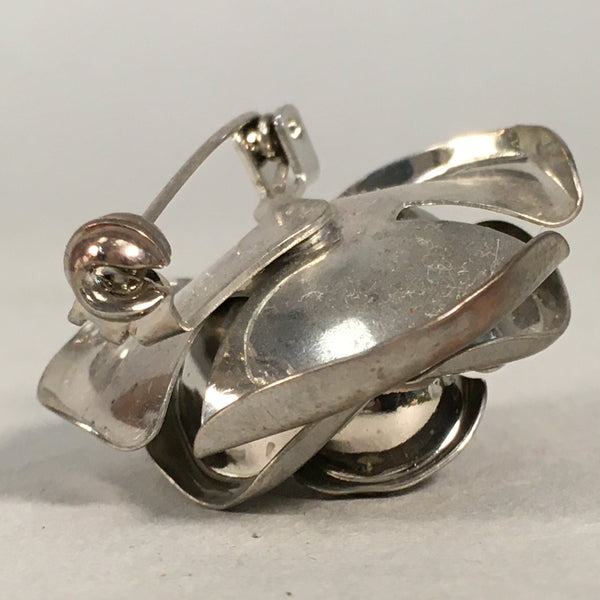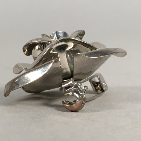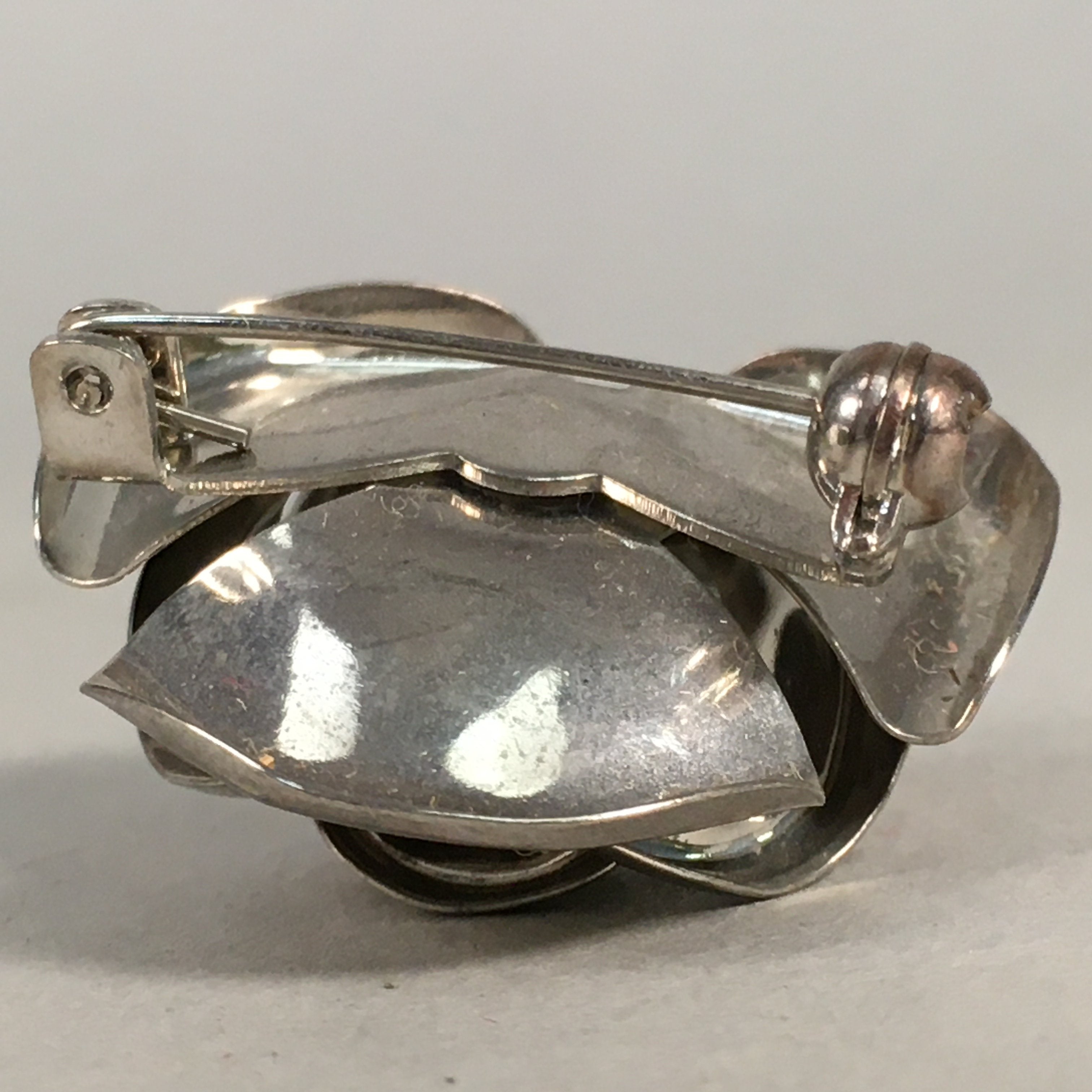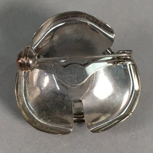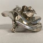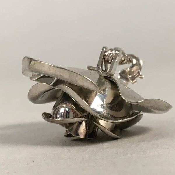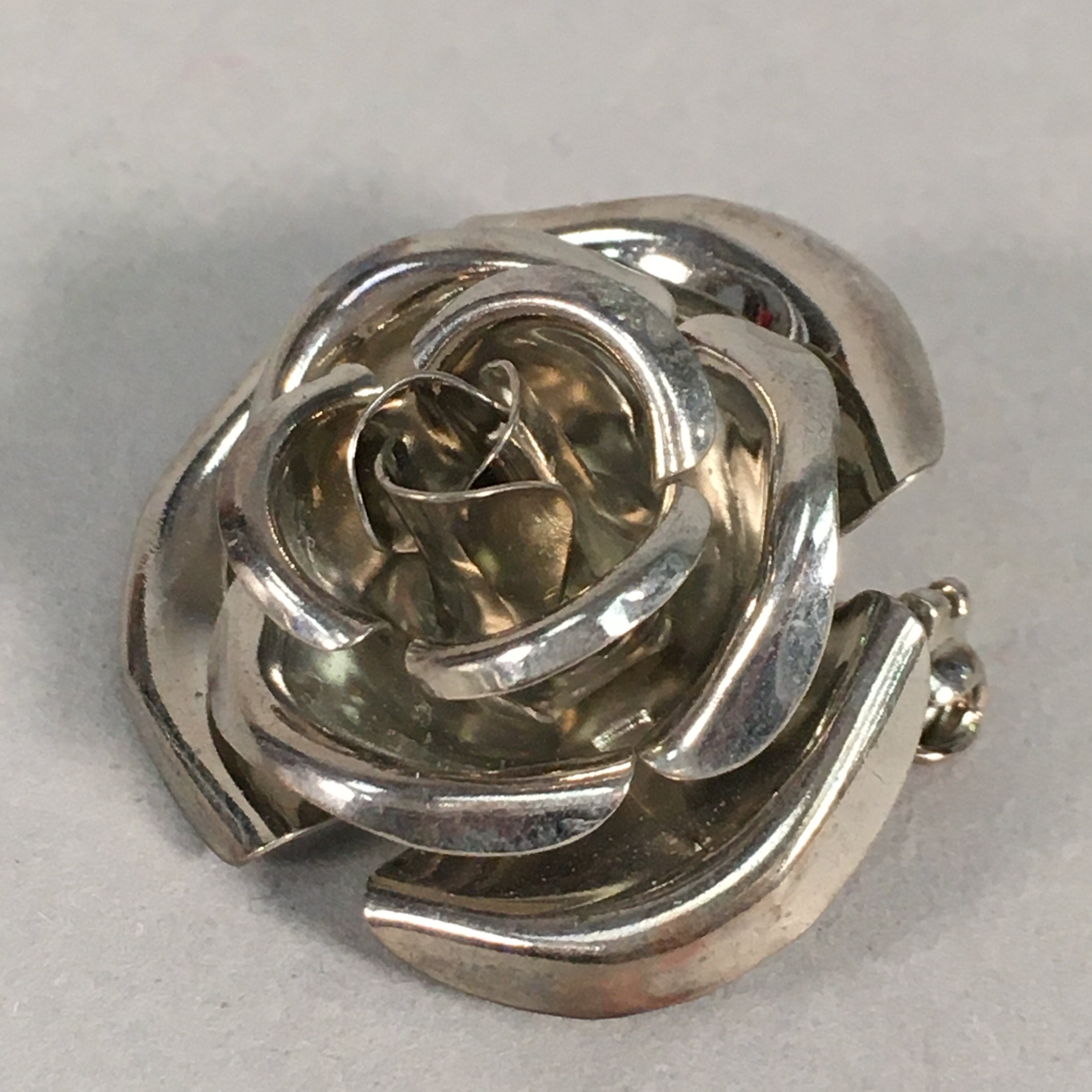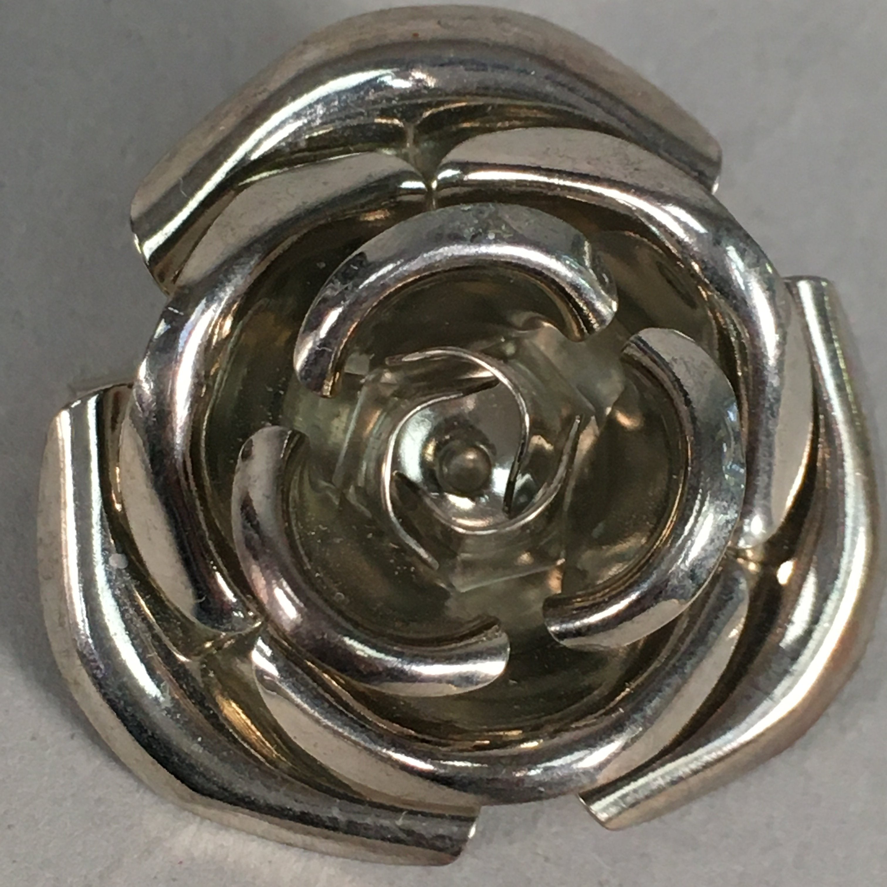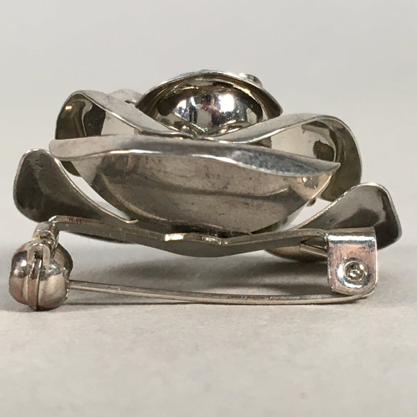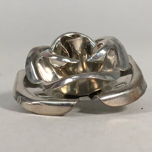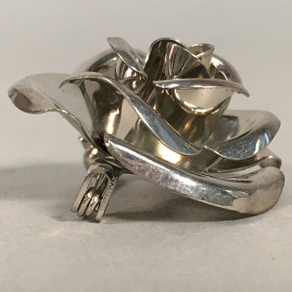 Japanese Metal Brooch Vtg Badge Pin Flower Rose 3-Dimensional 3D Silver JK82