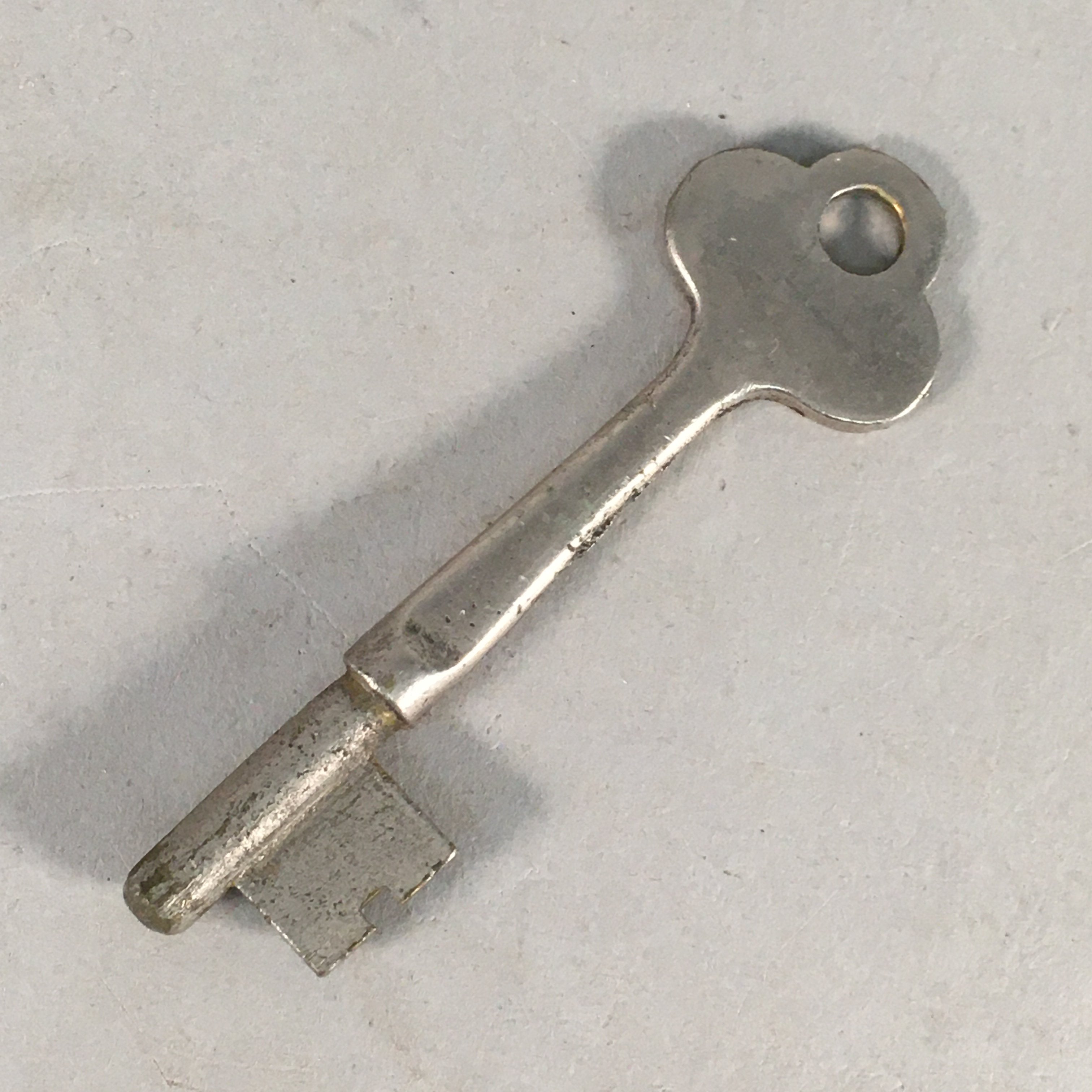 Japanese Metal Key Vtg C1930 Silver 3 leaves JK20