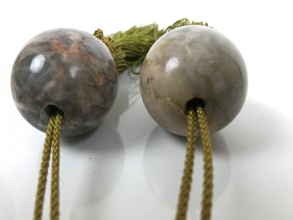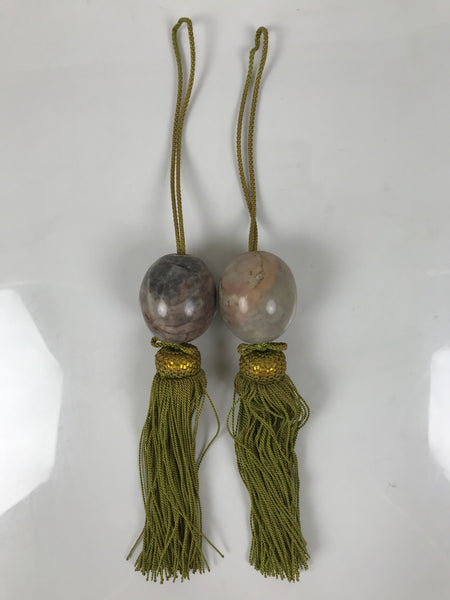 Japanese Moonstone Stone Hanging Scroll Weights Vtg Fuchin Kakejiku Tassel FC371
