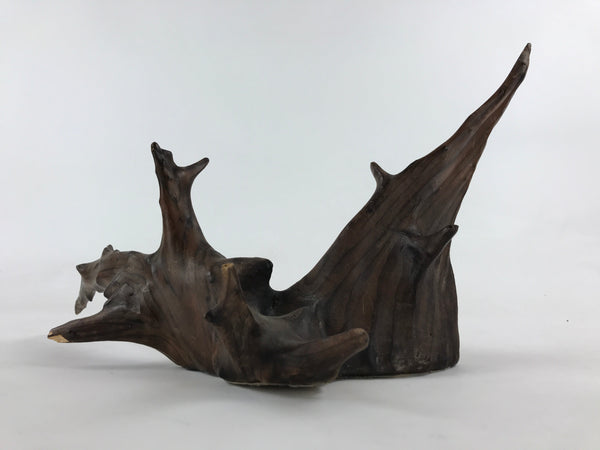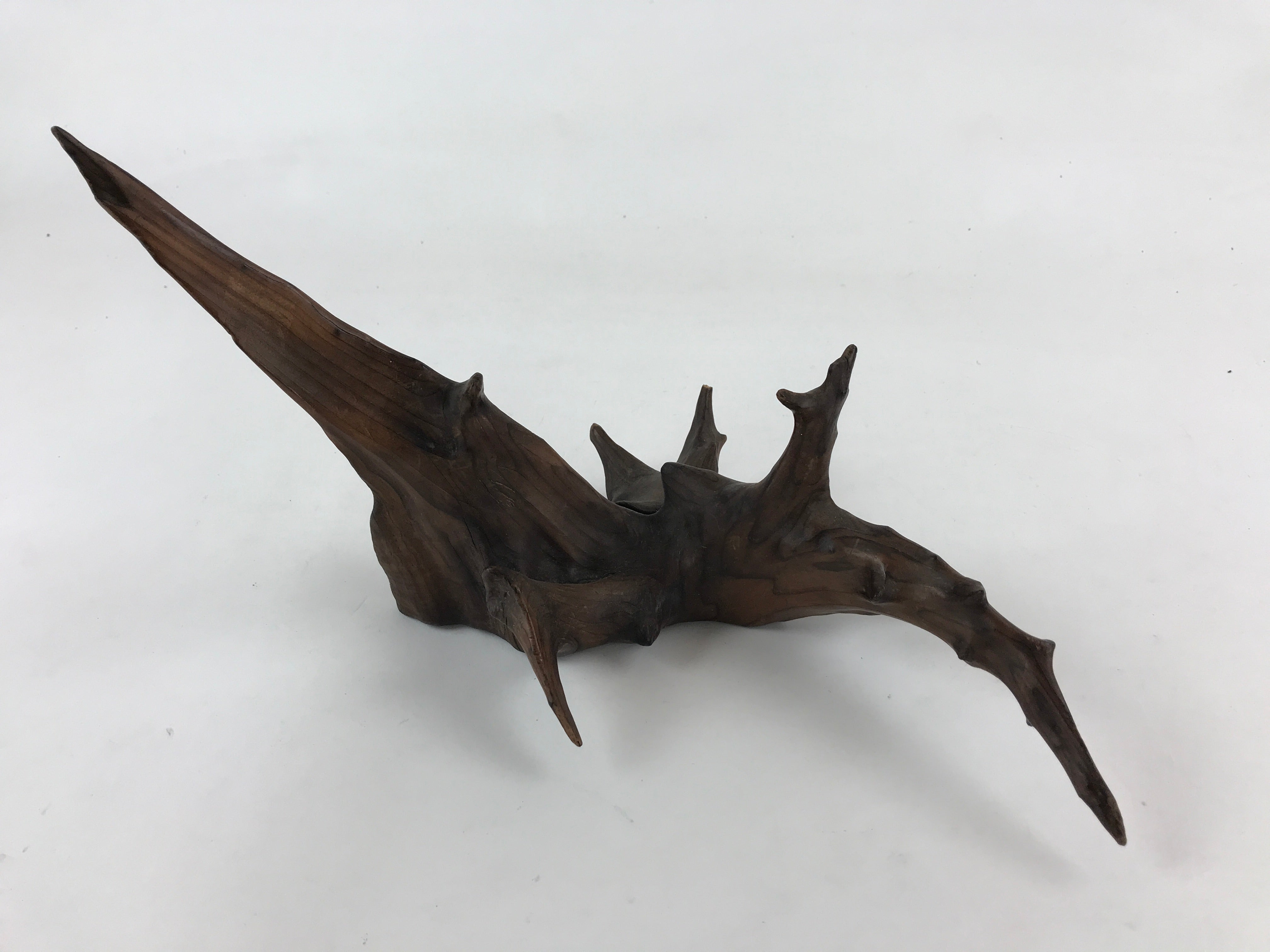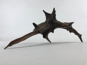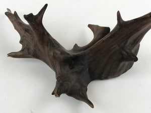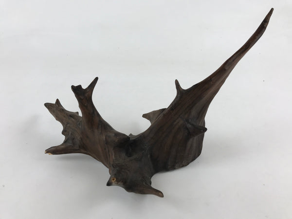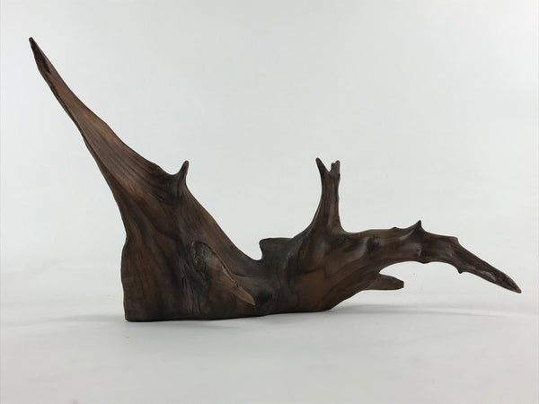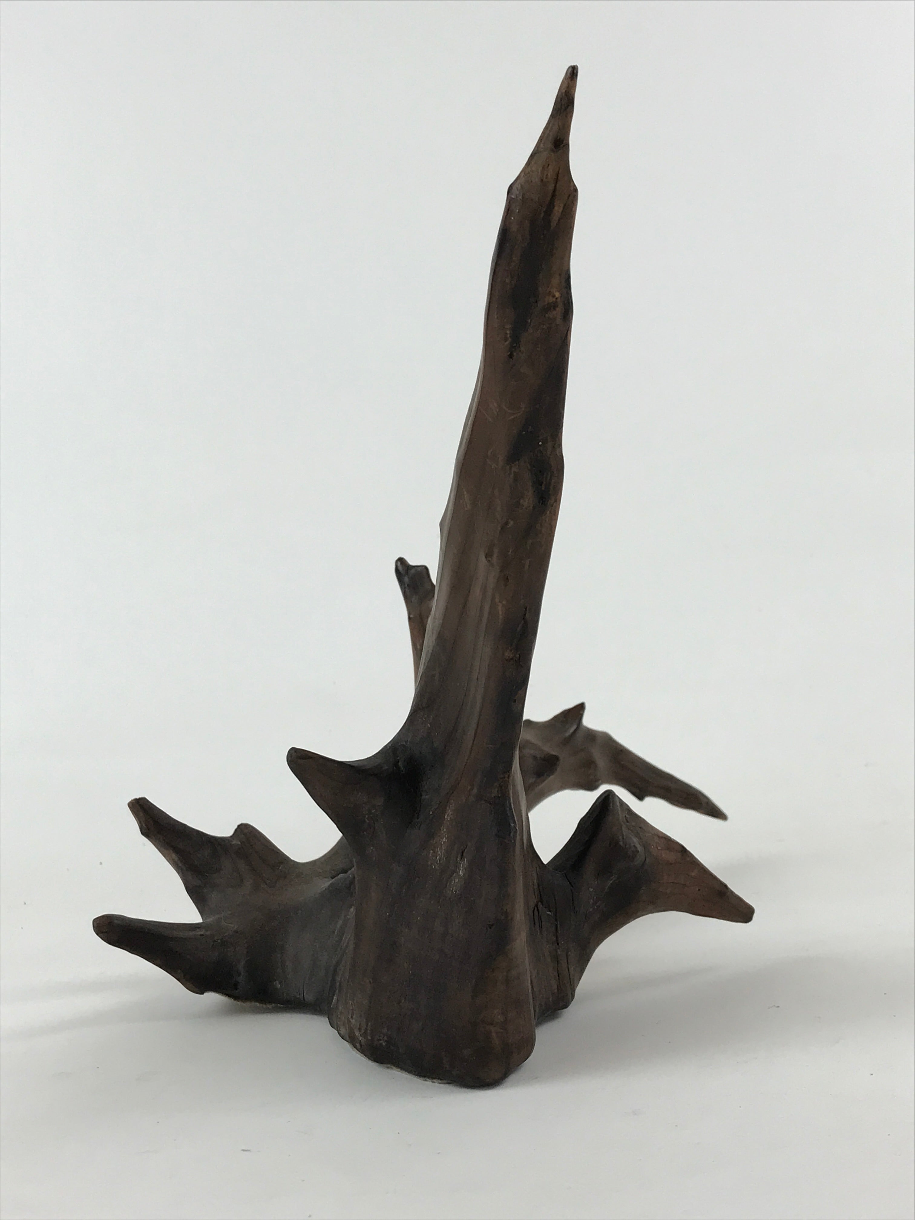 Fashioned from a spiked knot of tree branches, this natural wooden decorative item is stained a dark brown with a smooth semi-gloss finish. Each side has unique textures and movement, making it visually interesting from any angle. It also contains a thin piece of fabric on the bottom to protect tabletops and other surfaces from scratching. This wooden sculpture can be used on its own for general home or office decor, but also with ikebana arrangements or flower vases.