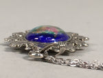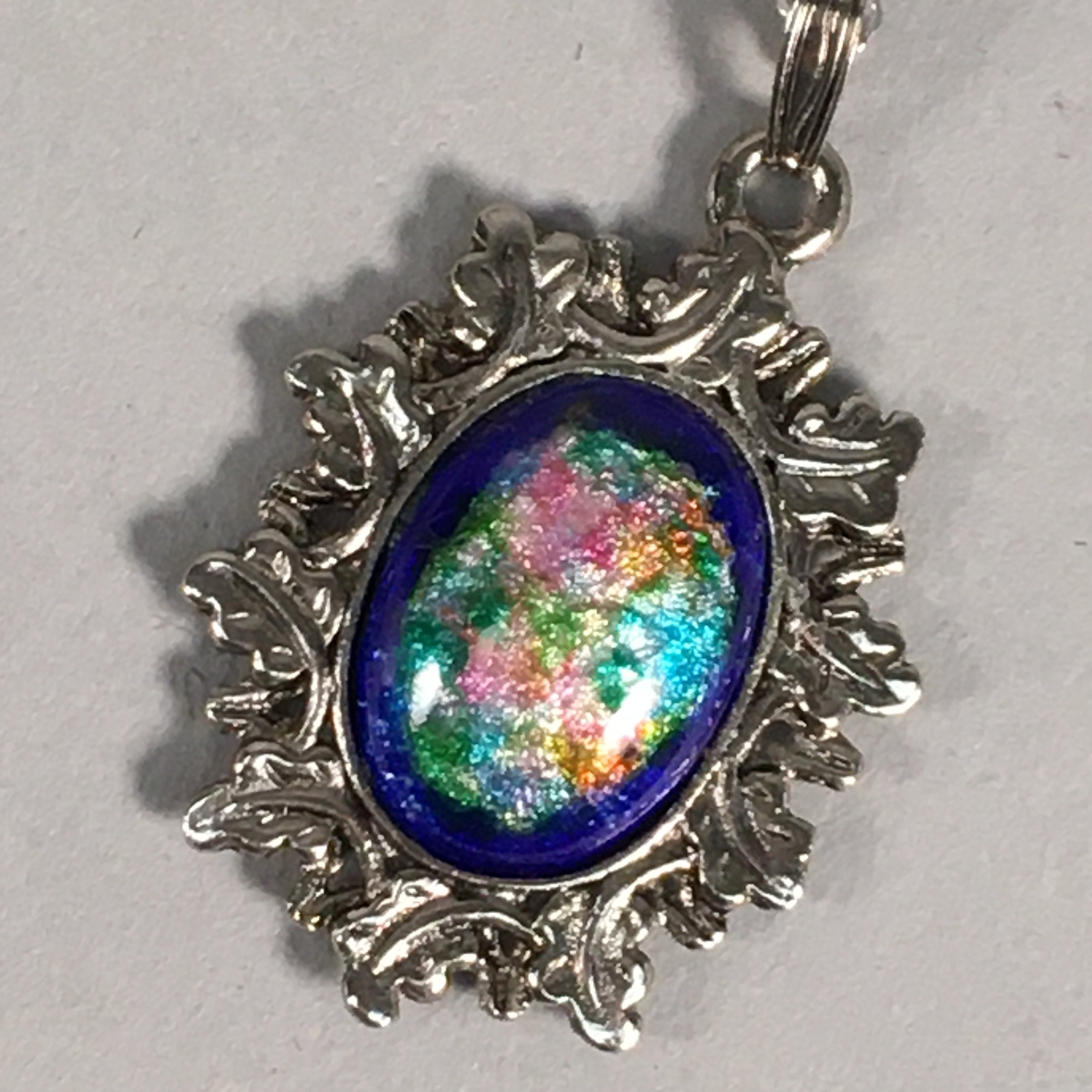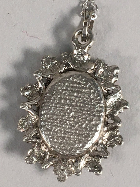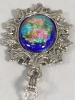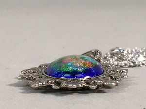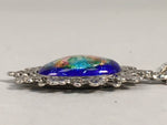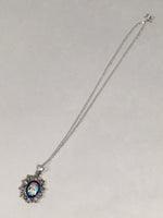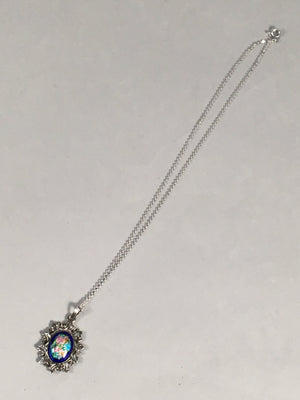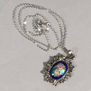 Japanese Necklace Cloisonne Oval Pendant Vtg Metal Glass Blue Silver JK54