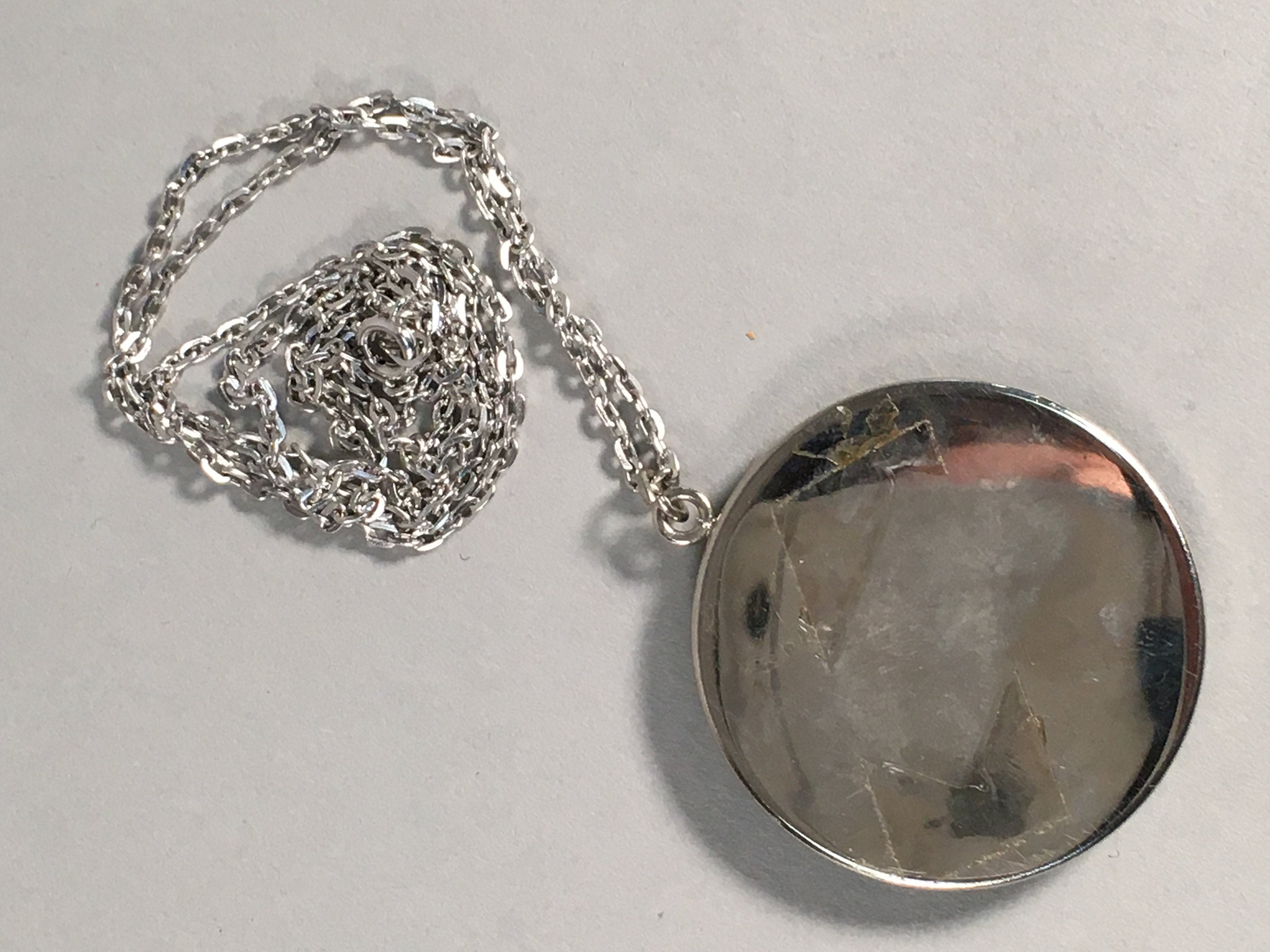• Approx. : chain including clasp: 64 cm long, pendant: 4.7 cm long x 4.1 cm wide x 0.2 cm thick