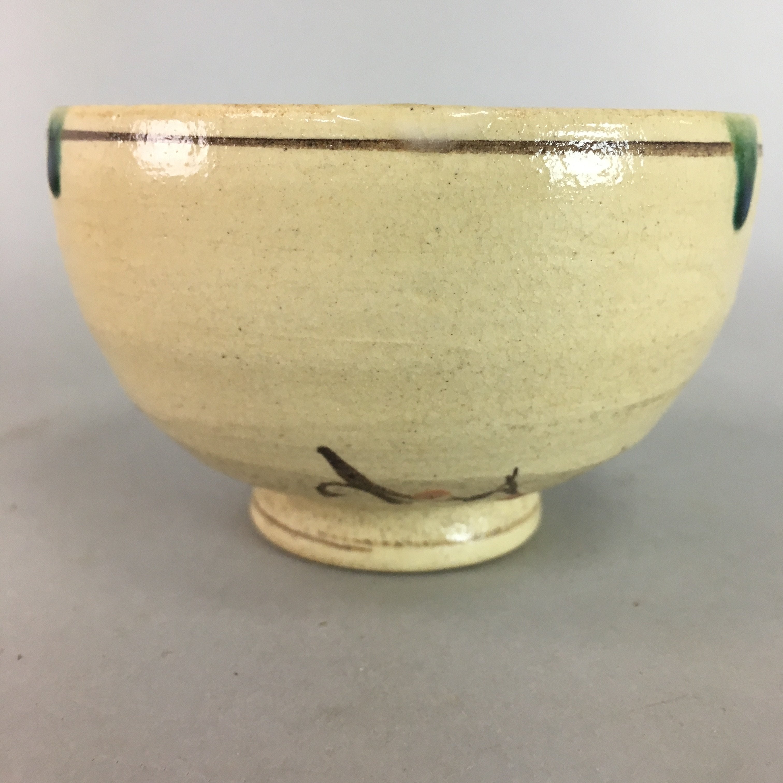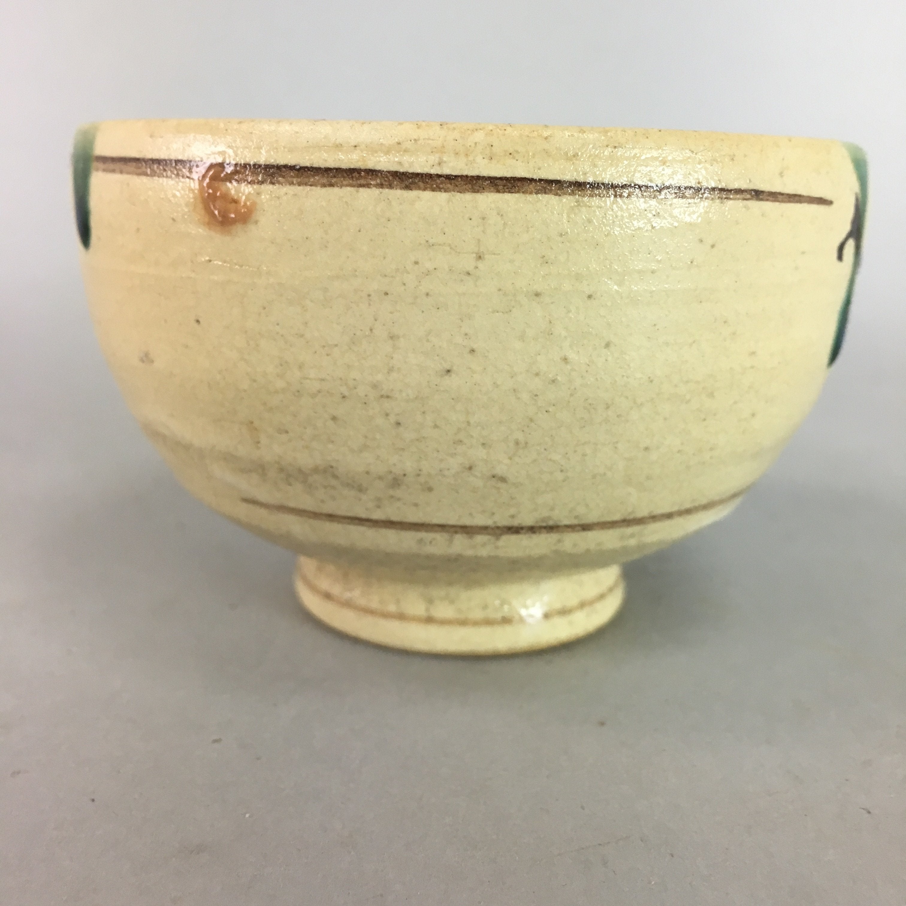 Japanese Oribe ware Ceramic Teacup Vtg Pottery Yunomi Pine Needle Sencha TC20