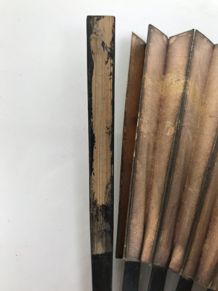 Japanese Paper Folding Fan Sensu Vtg Lacquered Bamboo Gold Silver Formal 4D907