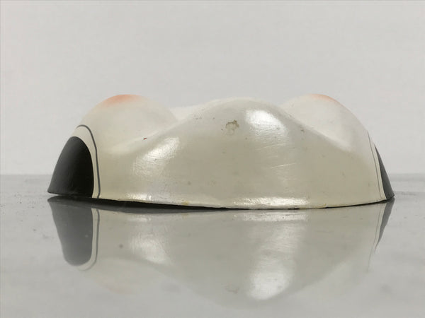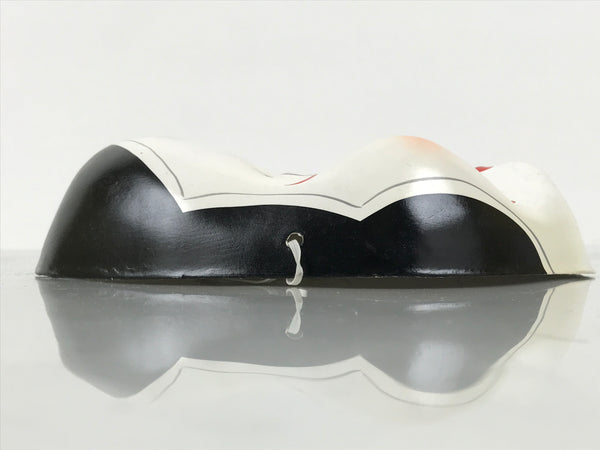 This is a vintage Japanese paper mache noh mask (noh-men). This character is the face of a woman named Okame or Otafuku. Okame is a smiling woman with a round face, a low and round nose, drooping hair, and round and protruding cheeks (high cheeks). She is said to bring happiness and good fortune to any man she marries. The mask is fully painted in white, black, and red. It can be used for all kinds of home and office decor.