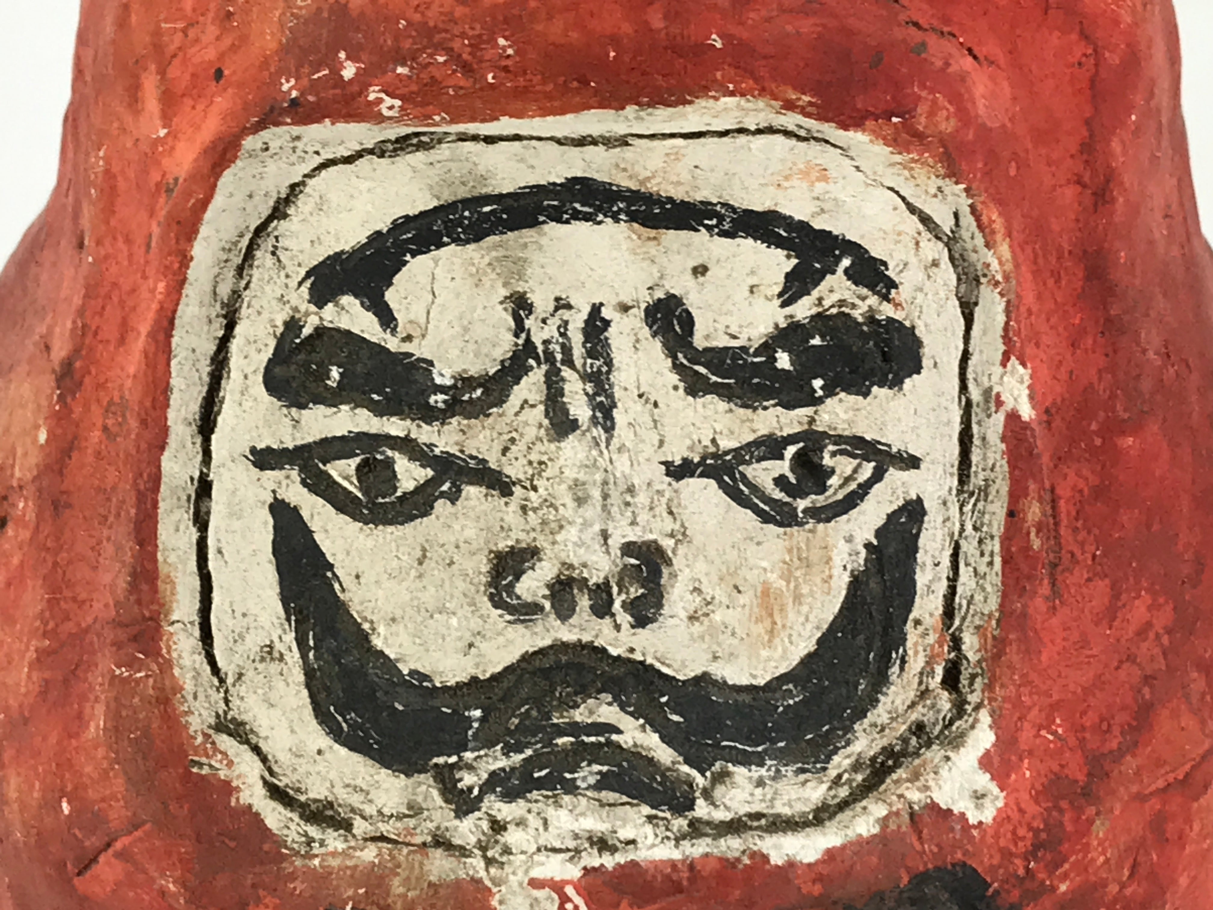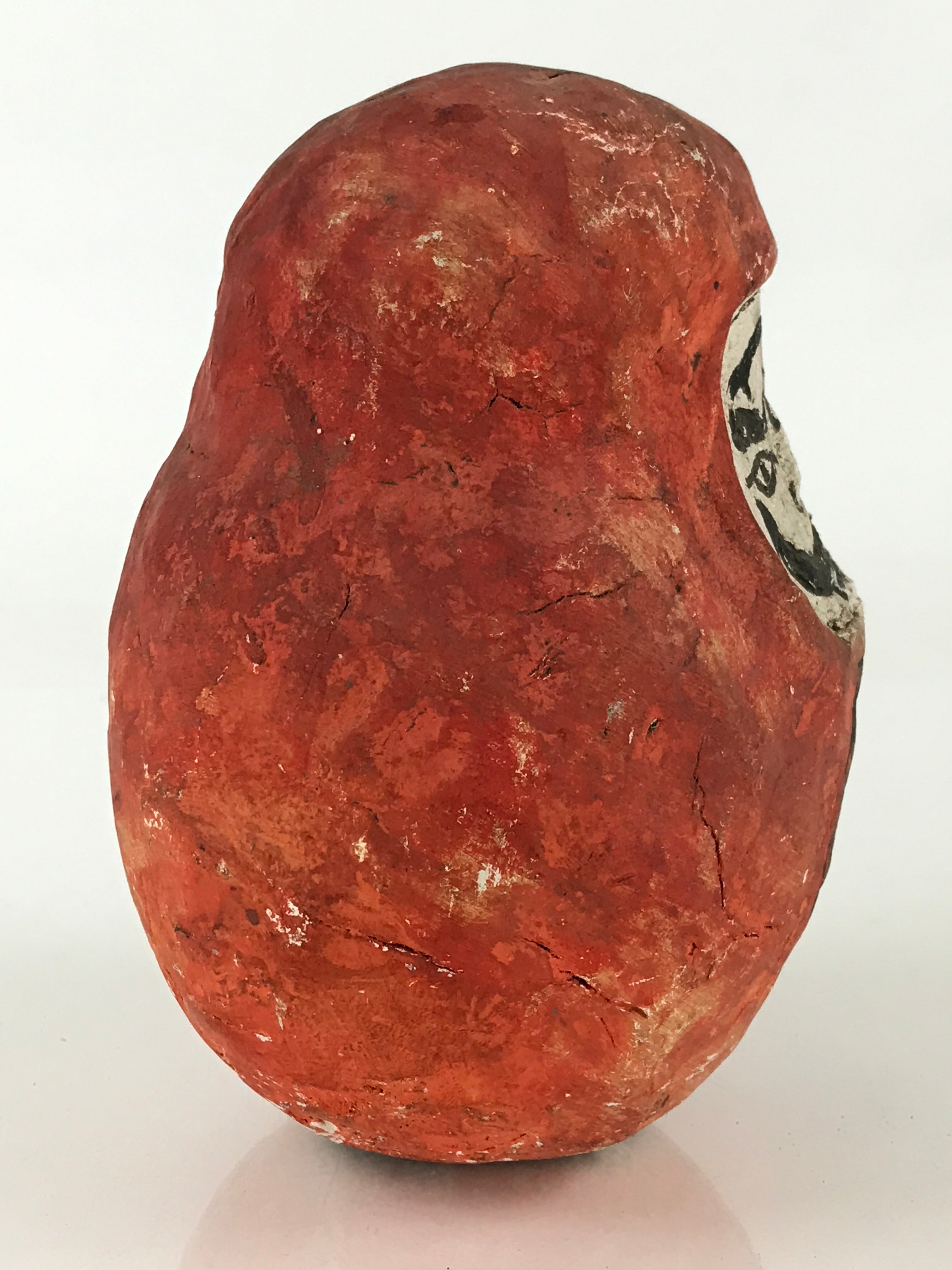 This is a Japanese Daruma figurine made of papier-mâché. It is a traditional Japanese lucky charm and toy that imitates the figure of Daruma Daishi sitting in meditation.