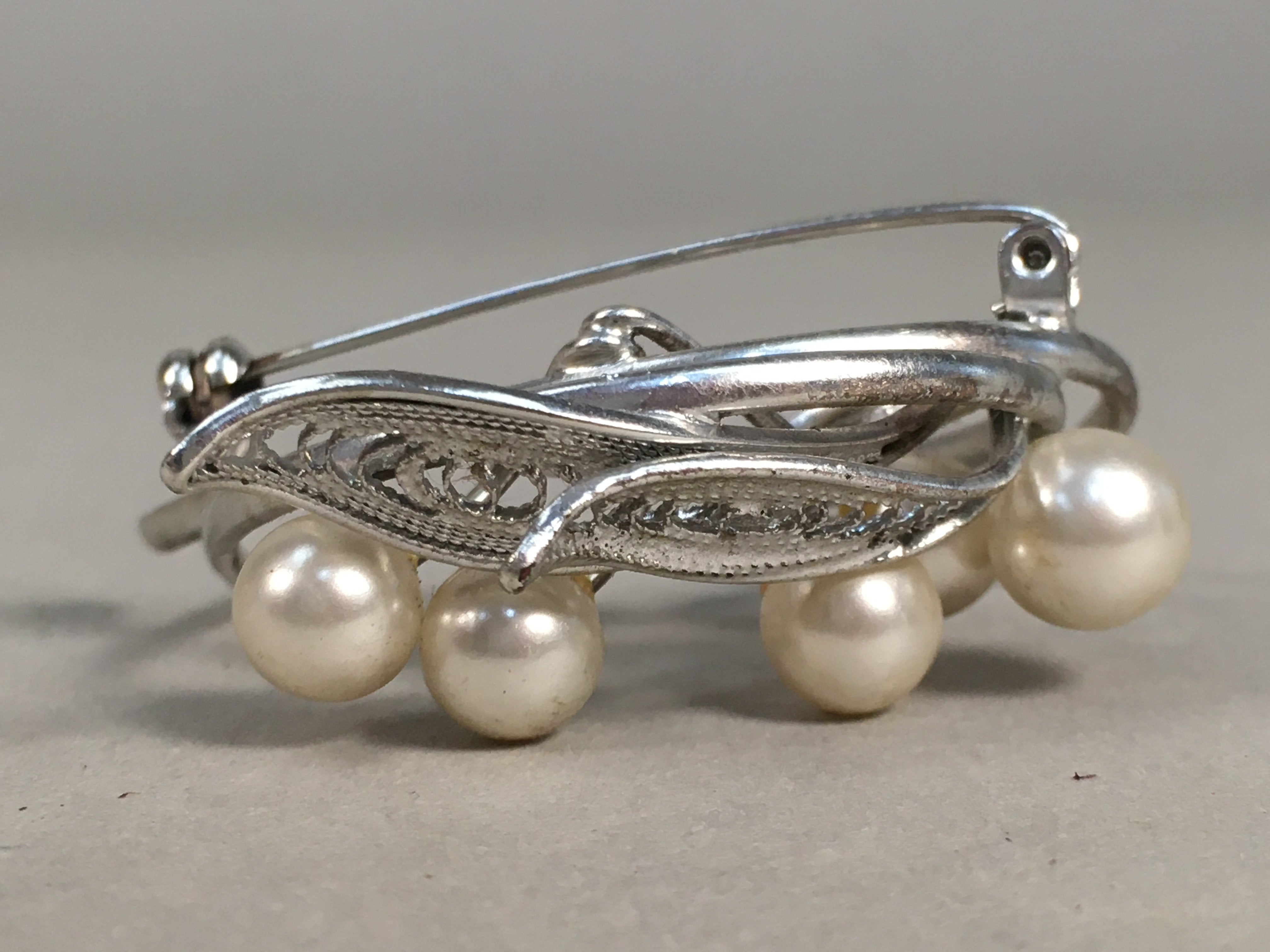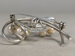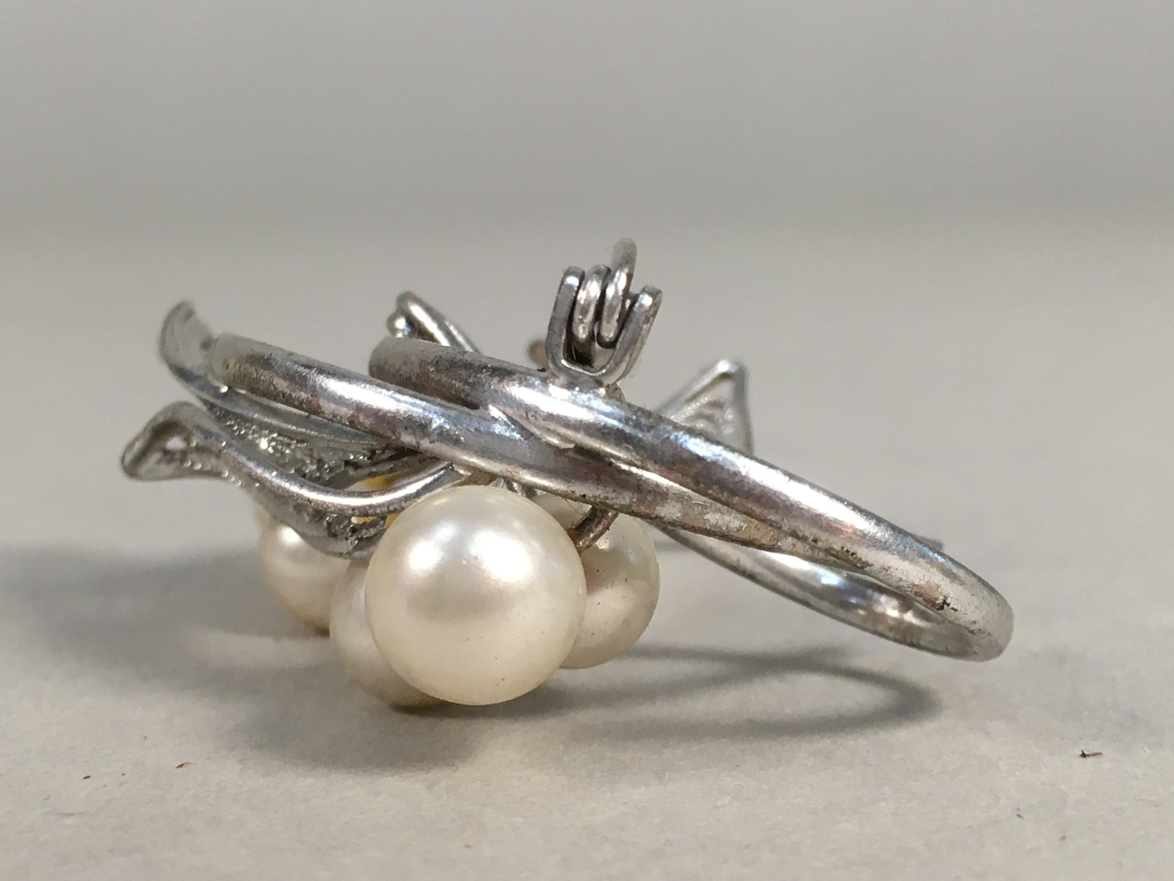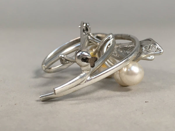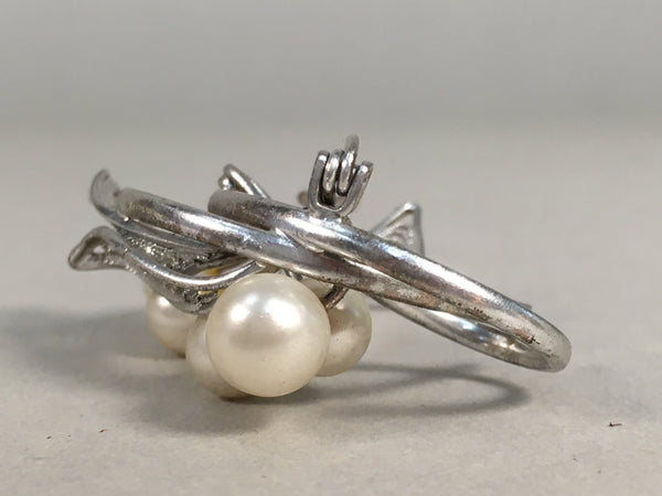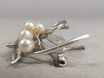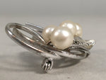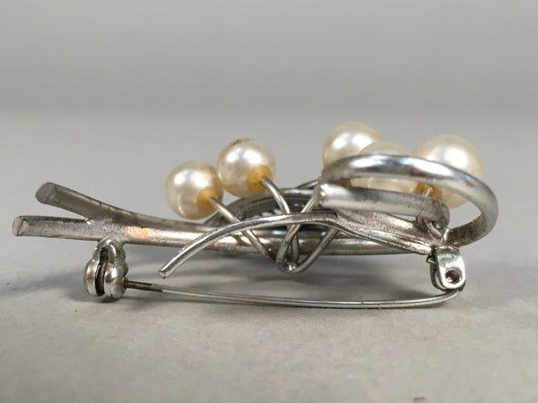 Japanese Pearl Brooch Silver Metal Vtg Pin Badge Artificial White JK101