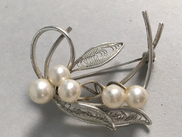 Vtg Japanese Pearl Floral Brooch
