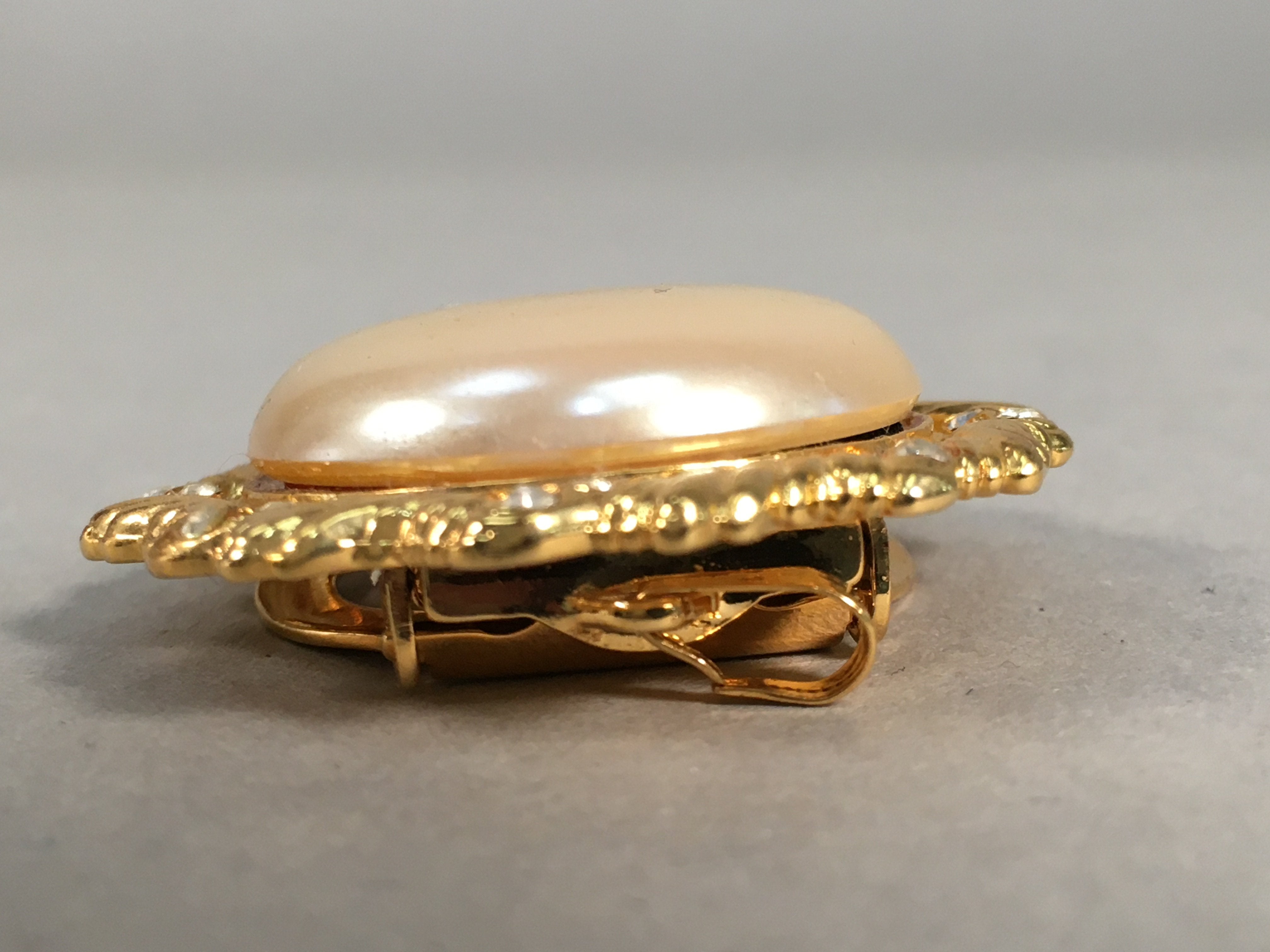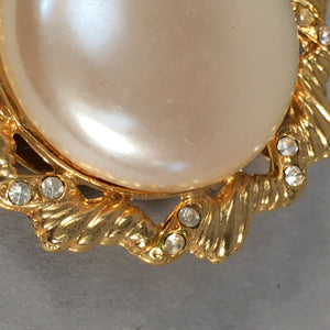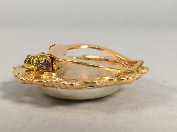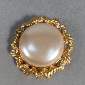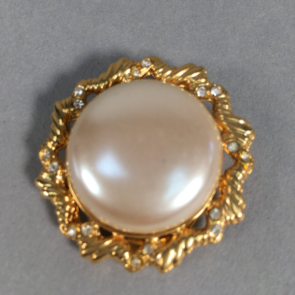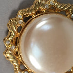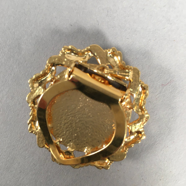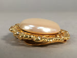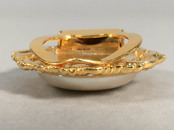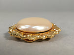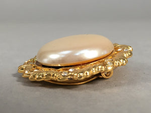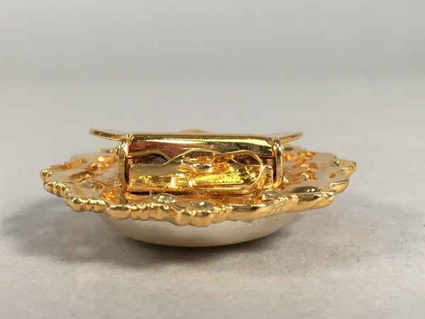 Japanese Pearl Brooch Vtg Badge Pin Artificial Gold Round Flat JK65
